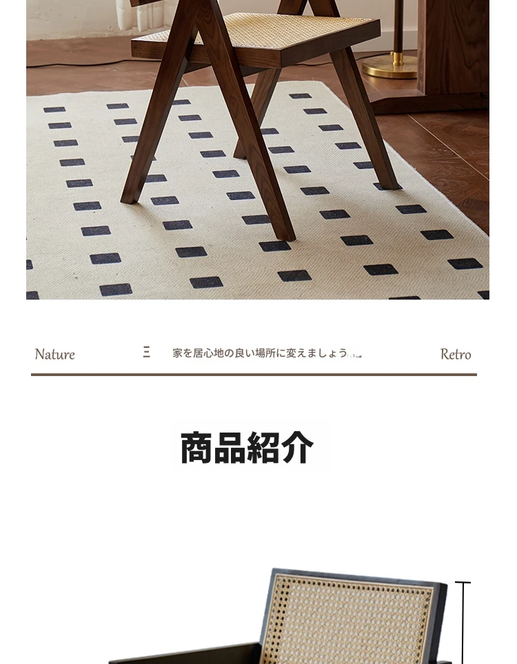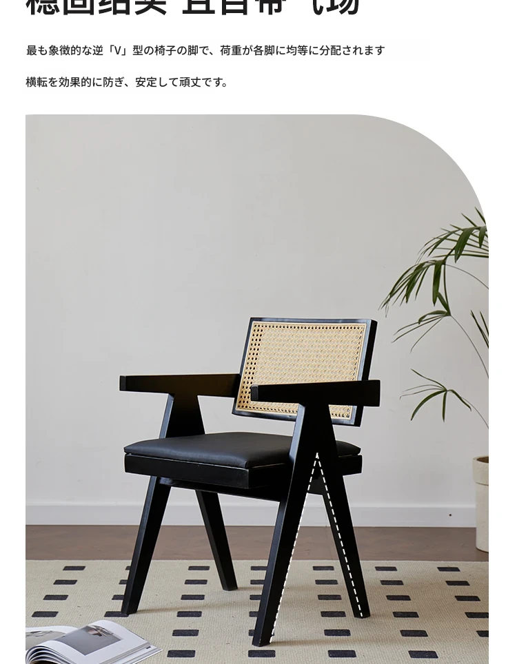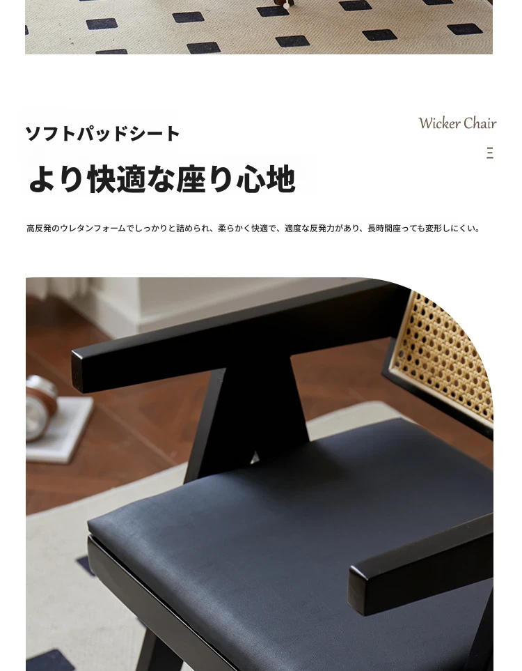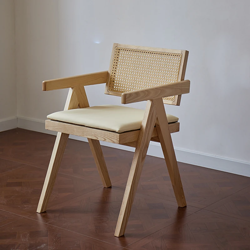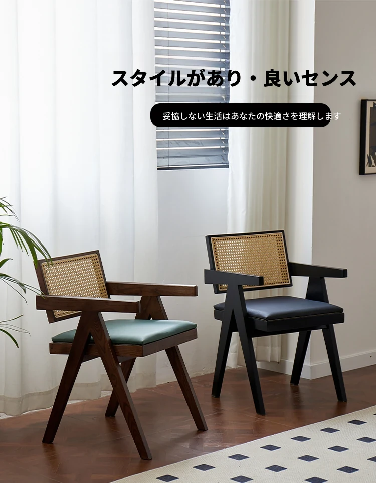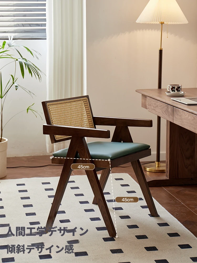 チャンディーガルチェア|無垢材使用の和モダンデザイン|民宿やレストランに最適|ホワイトアッシュ&ラタン編みの美しいコンビネーション|心地よい座り心地を実現したナチュラルウッドスツール