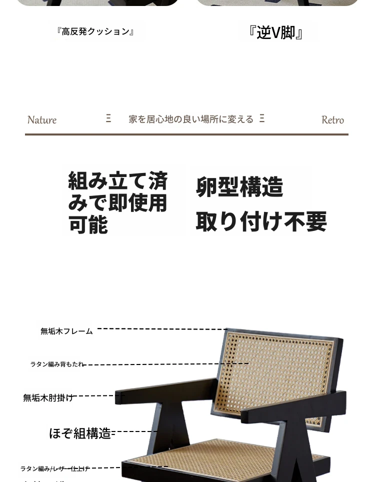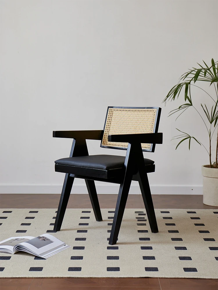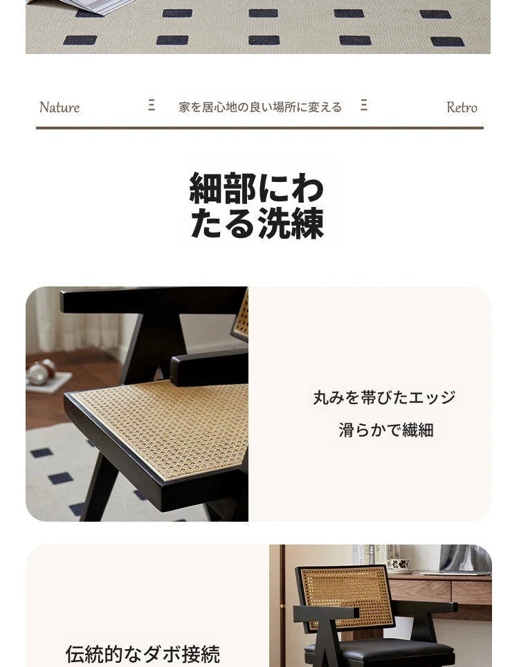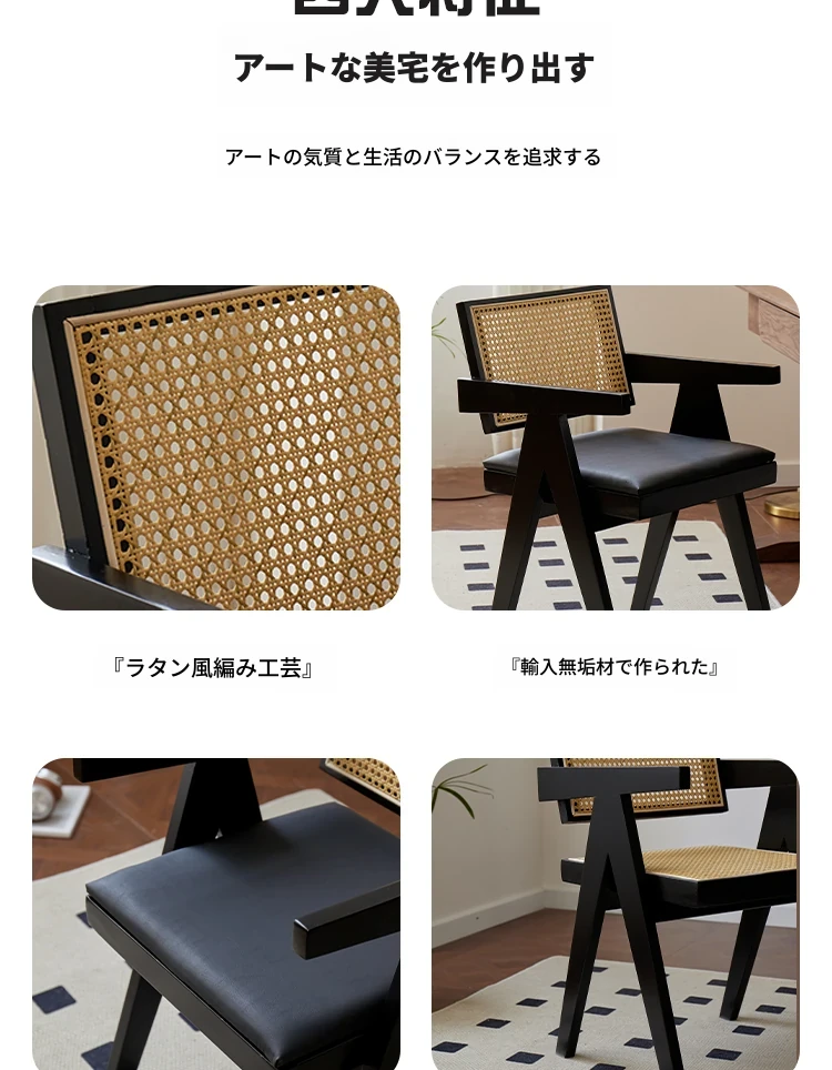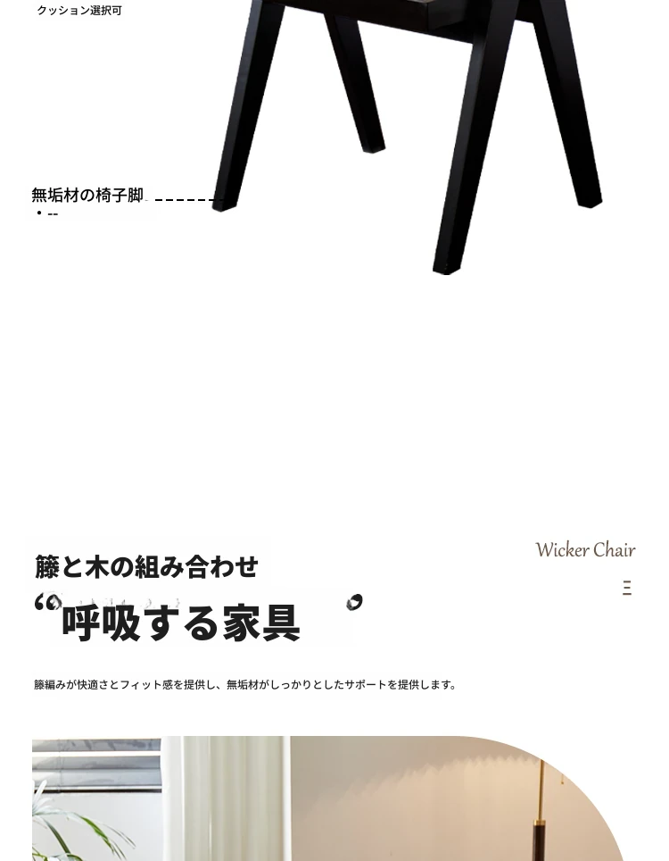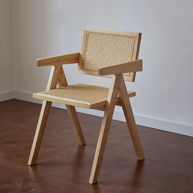 チャンディーガルチェア|無垢材使用の和モダンデザイン|民宿やレストランに最適|ホワイトアッシュ&ラタン編みの美しいコンビネーション|心地よい座り心地を実現したナチュラルウッドスツール