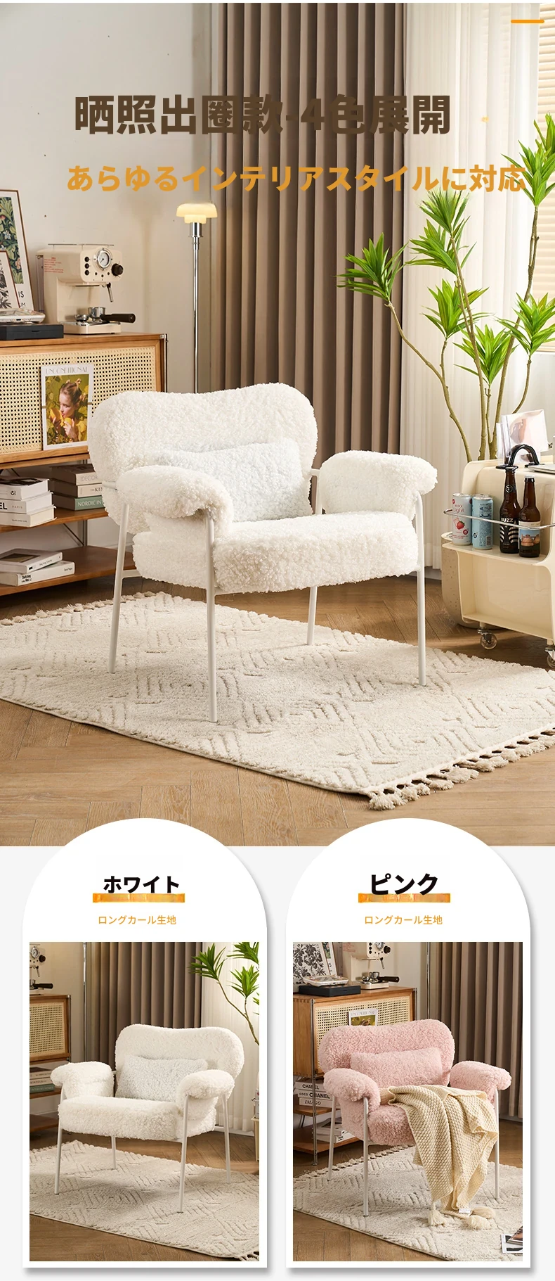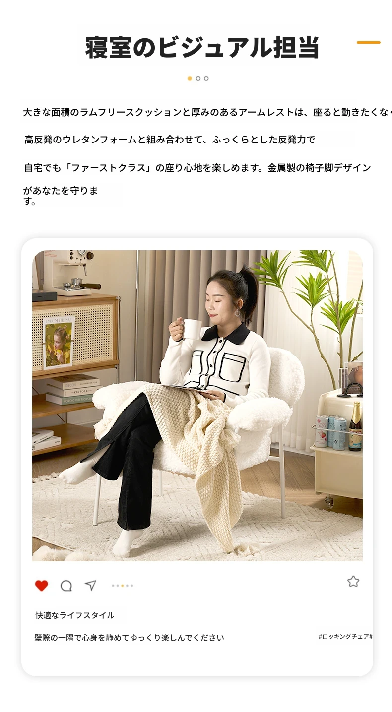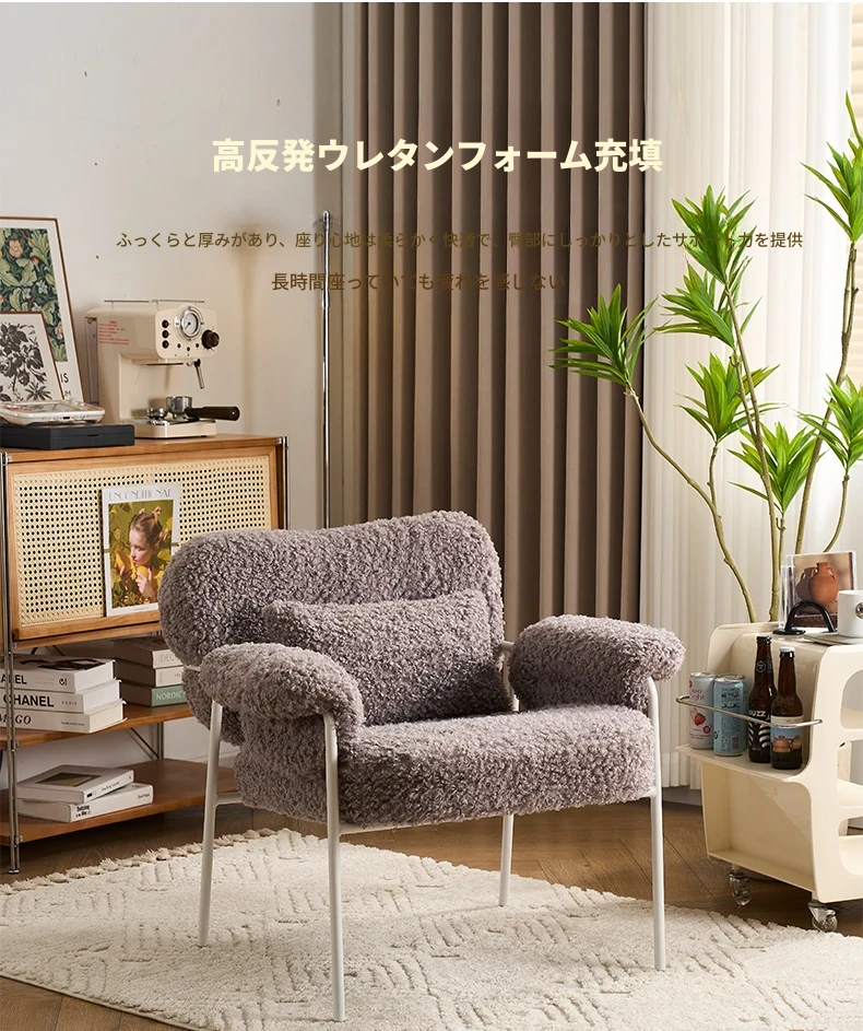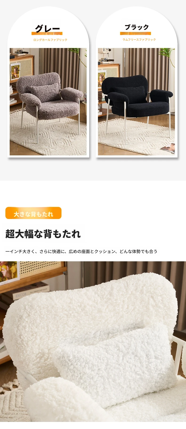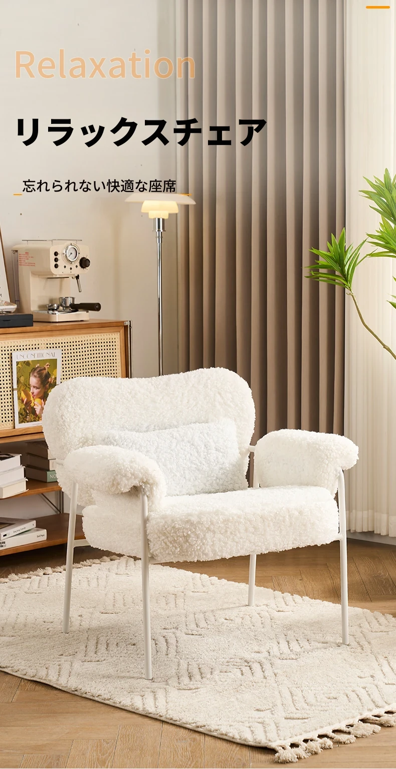 リラックスできる懶人ソファ|家庭用・休憩用・民宿・ホテルに最適なバルコニー椅子|デザイナー創造の一人掛けソファ|ふわふわのラビットファー素材で快適な座り心地!