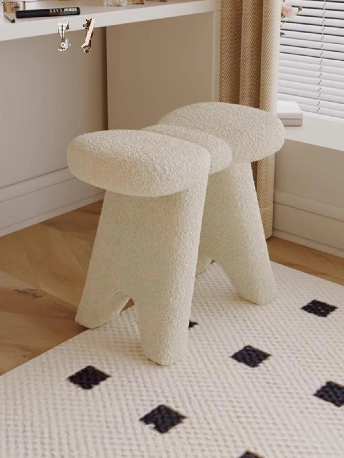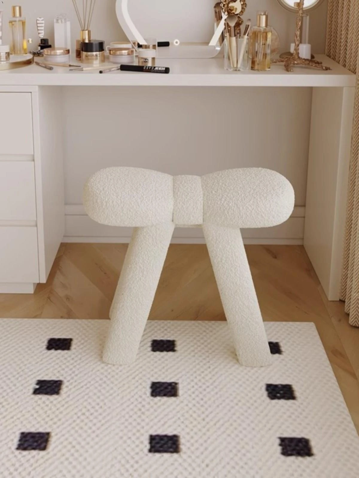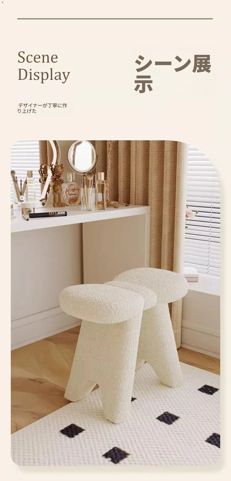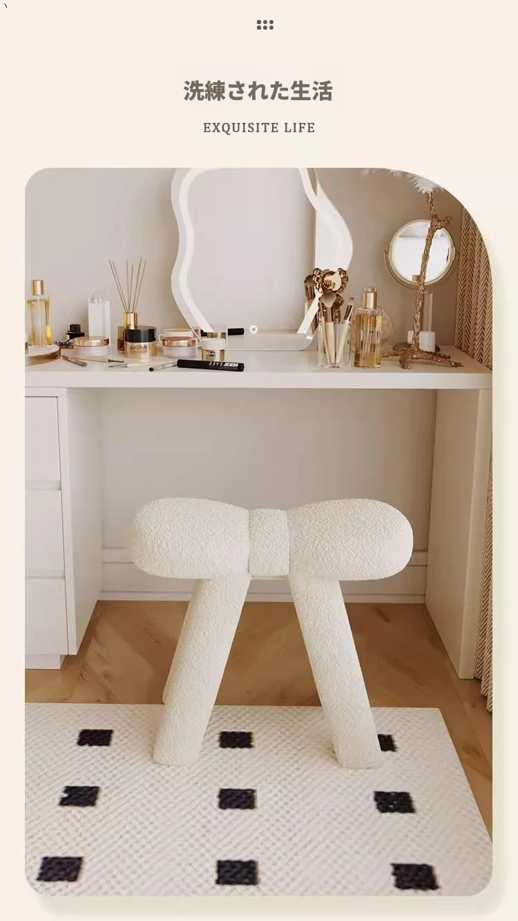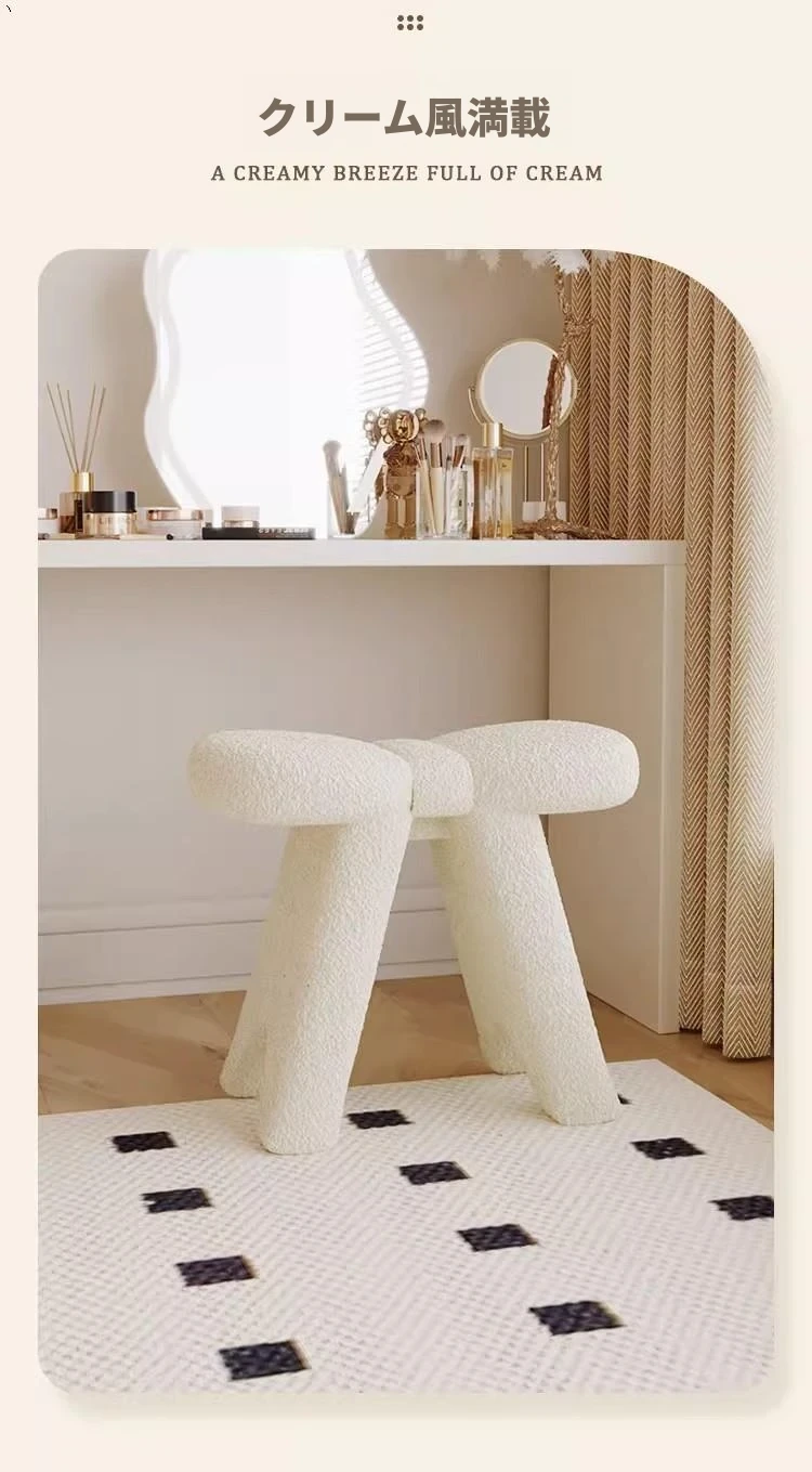 クリームカラーのメイクアップスツール - シンプルでモダンなデザインの化粧台専用椅子。人気のある家用軽奢スタイル、美容やネイルにも最適!あなたのインテリアにぴったりの一品です。