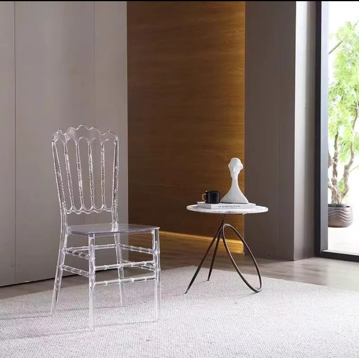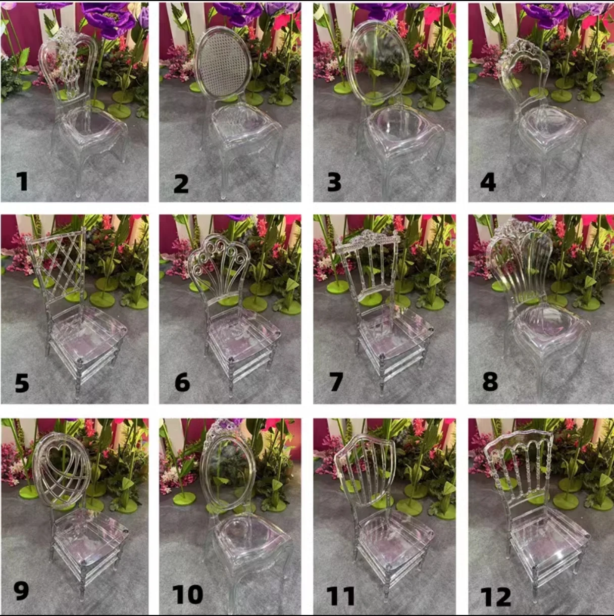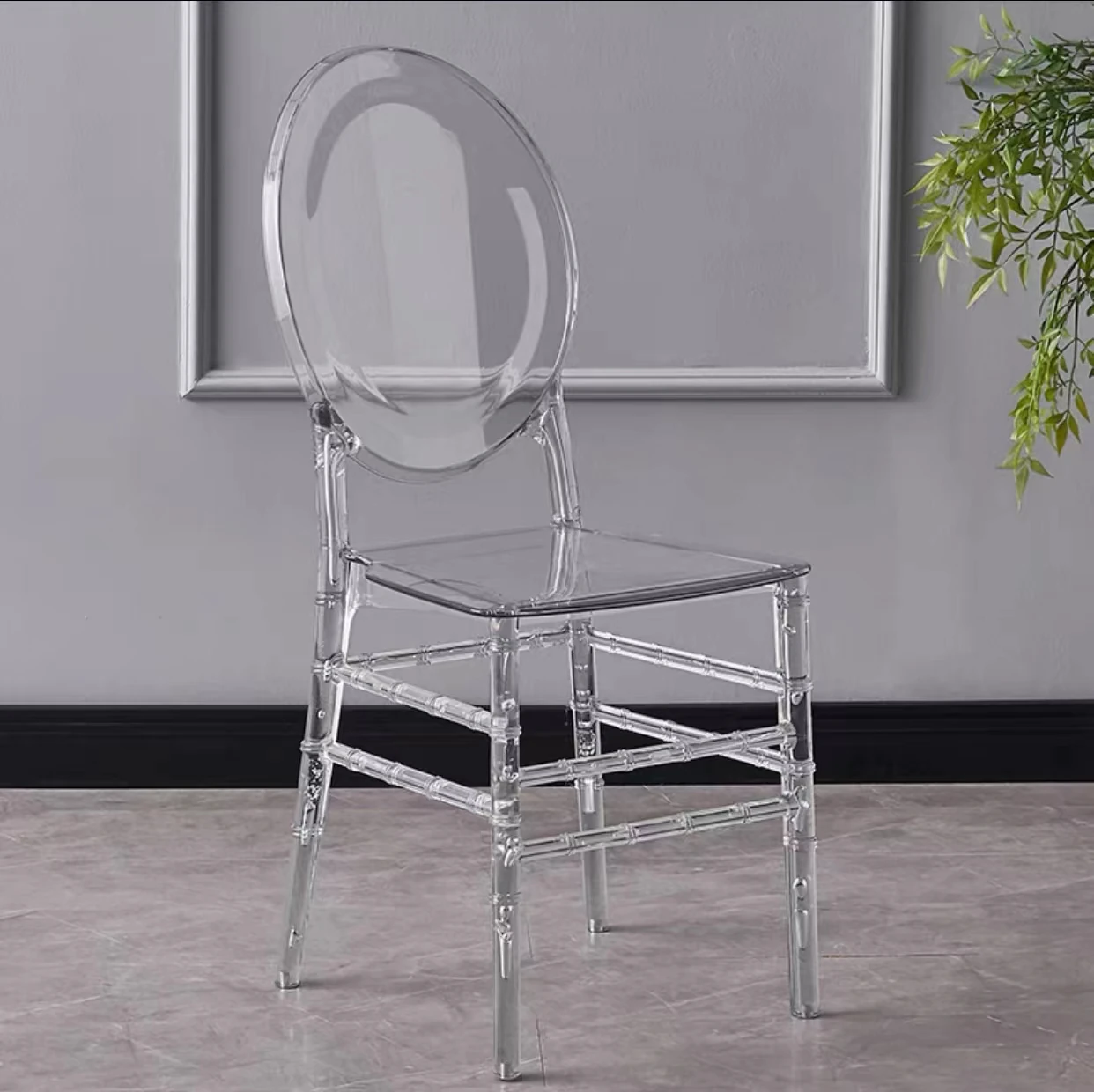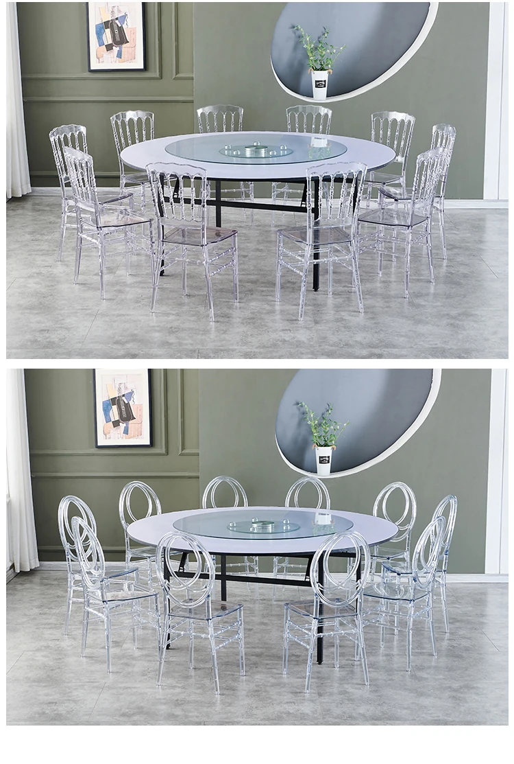 透明でエレガントなクリスタルチェア - 婚礼やイベントに最適!耐久性のあるプラスチック製で、屋外でも使用可能なナポレオンスタイルの竹節デザイン。華やかな雰囲気を演出し、ゲストを魅了する完璧な選択です!