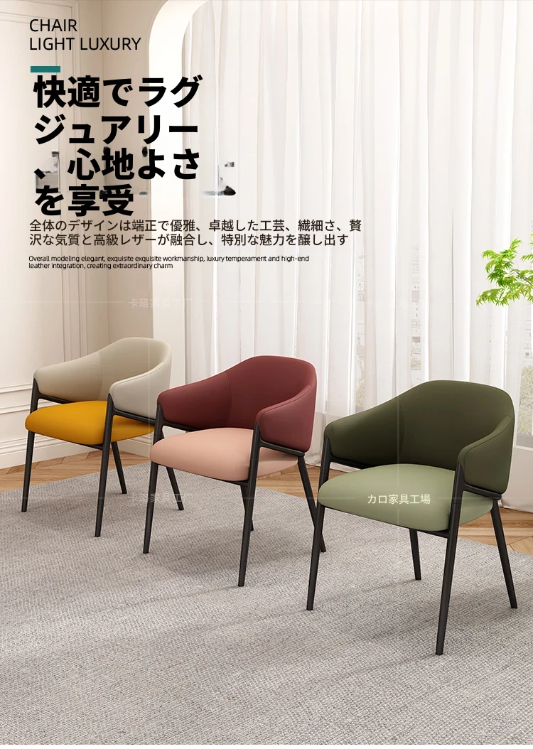 高級感あふれるモダンデザインの軽奢レストランチェア - 背もたれ付き、家庭用にも最適!ホテルの皮革椅子やデスク用の洽談椅子としても完璧です。シンプルながら洗練されたスタイルで、おしゃれな空間を演出します。