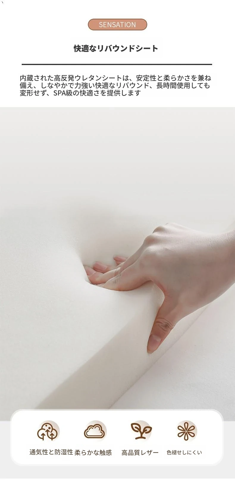 ホワイトの脚+ホワイトのクッション【厚手高弾性スポンジソフトパッケージ】高品質PUレザー