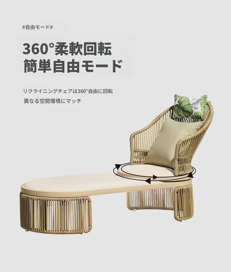 リラックスできる貴妃椅!家庭用のバルコニーやリビングに最適な回転式アウトドアソファ。別荘や庭にぴったりの快適な寝椅子で、くつろぎのひとときをお楽しみください!
