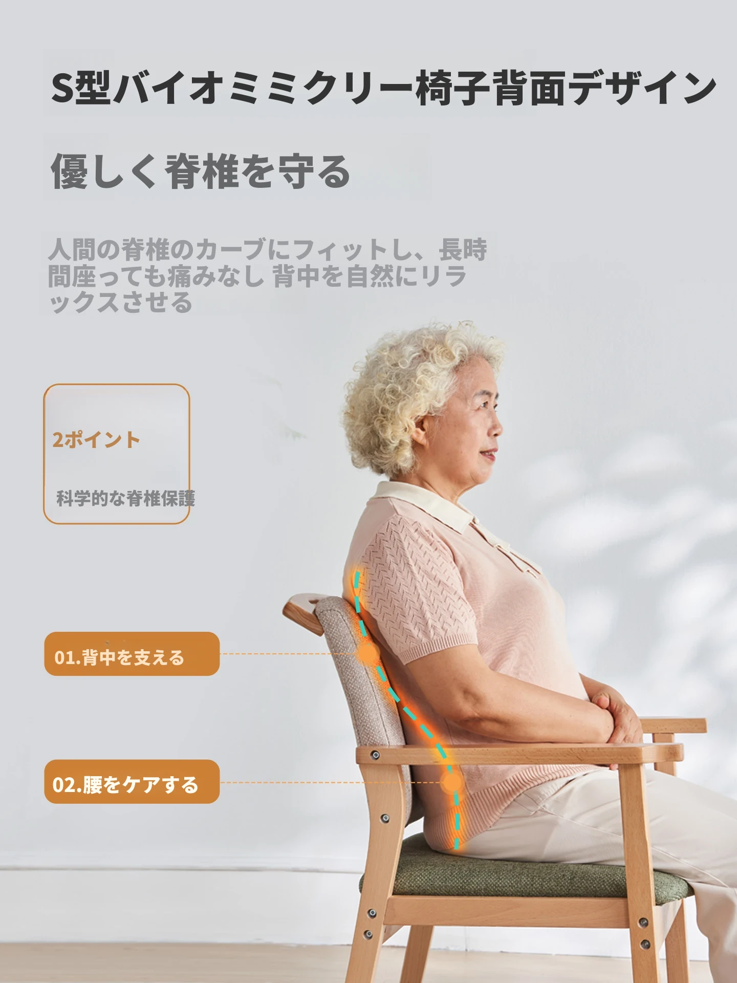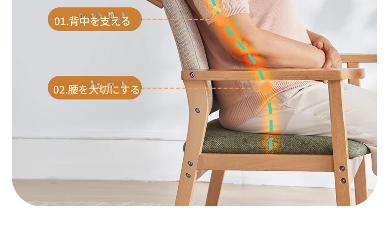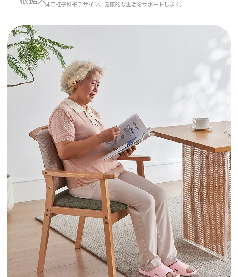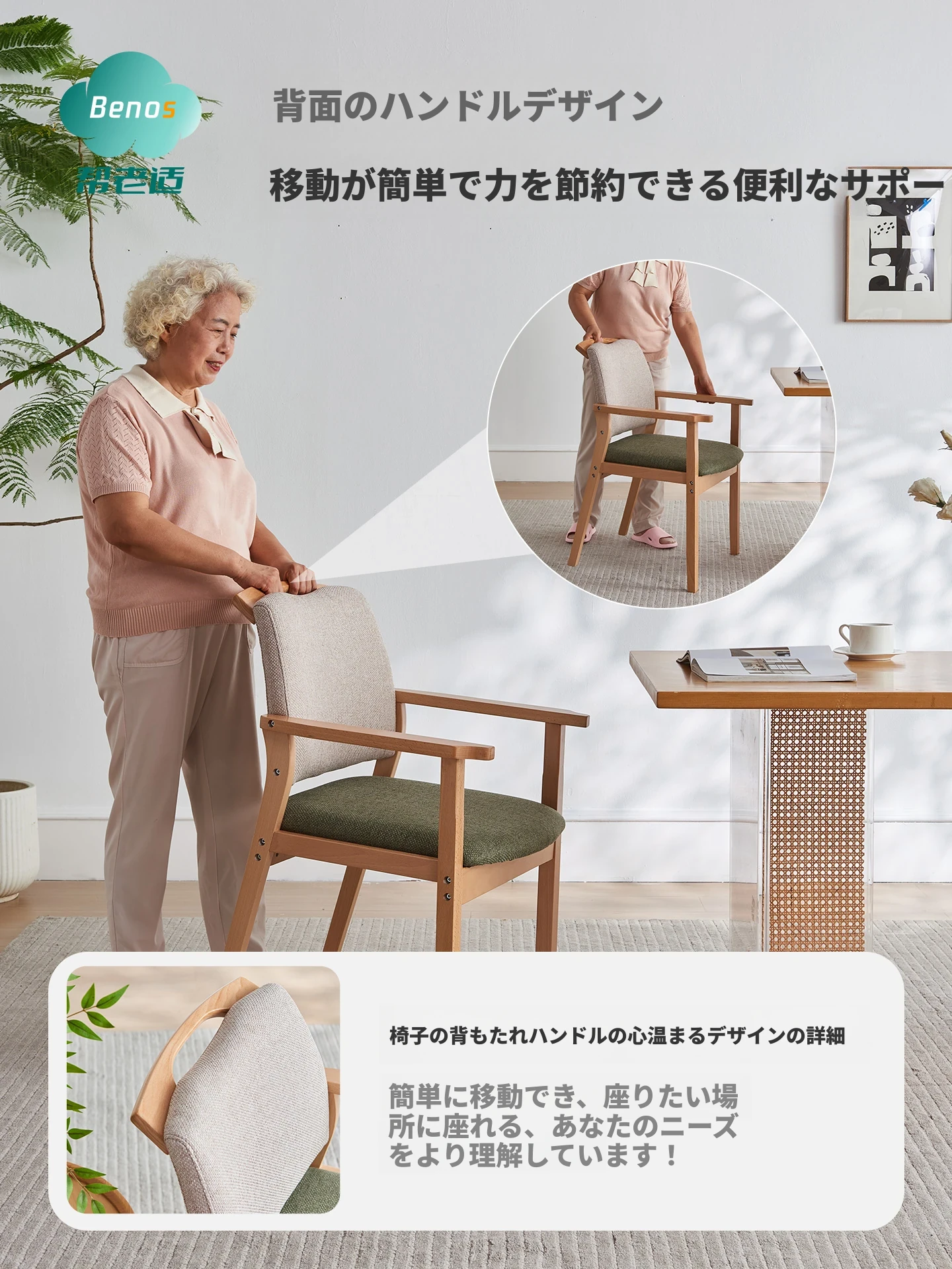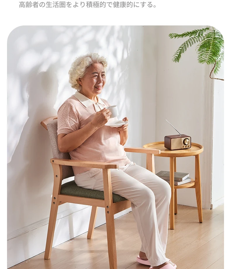 高齢者向け!快適で疲れにくい座り心地の椅子。腰をしっかりサポートする背もたれ付き、肘掛け付きで安心。転倒防止機能付きの木製ダイニングチェアで、家庭でのリラックスタイムをお楽しみください!
