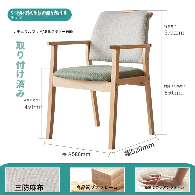 【パッケージ取り付け】単椅子【ナチュラルウッド/ミルクティー苔緑】
