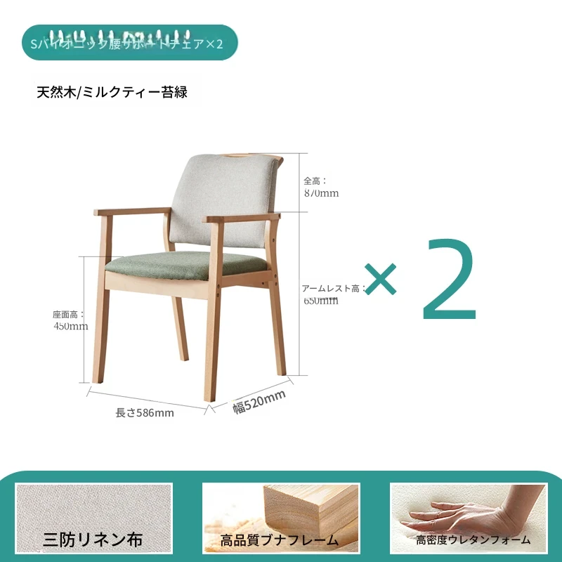 2脚椅子【ナチュラルウッド/ミルクティー苔緑】