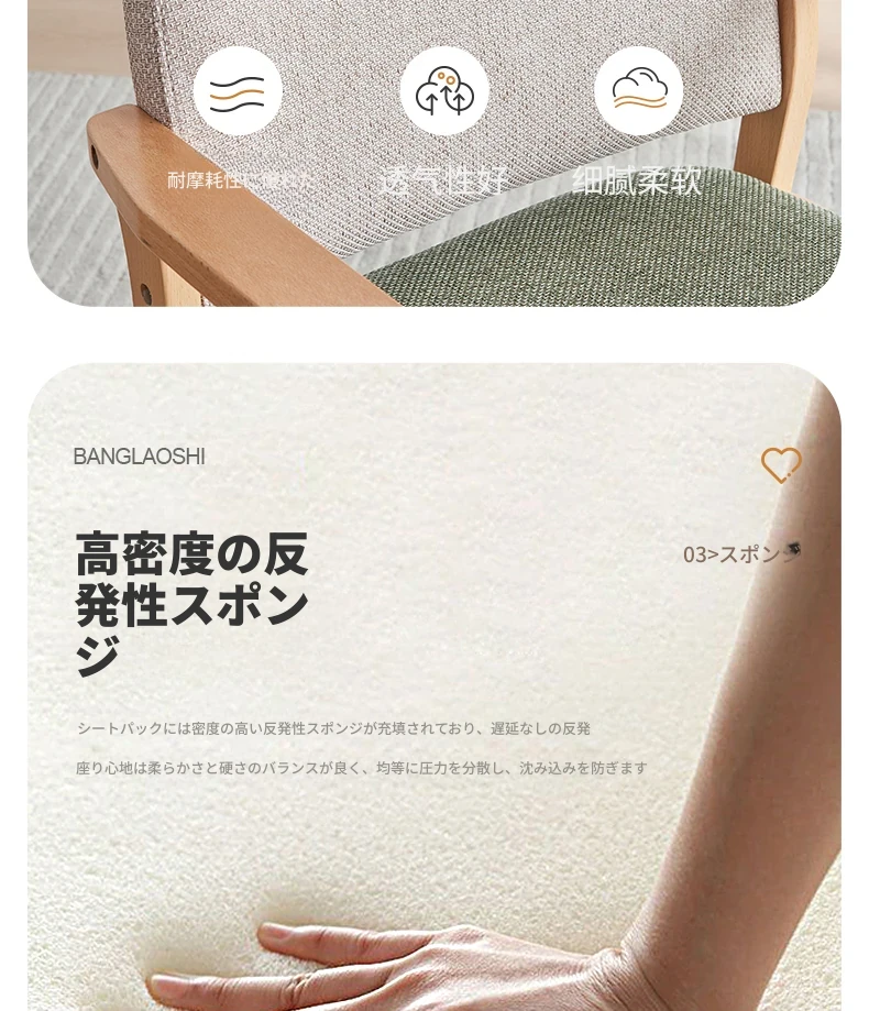 単椅子【ナチュラルウッド/ミルクティー苔緑】
