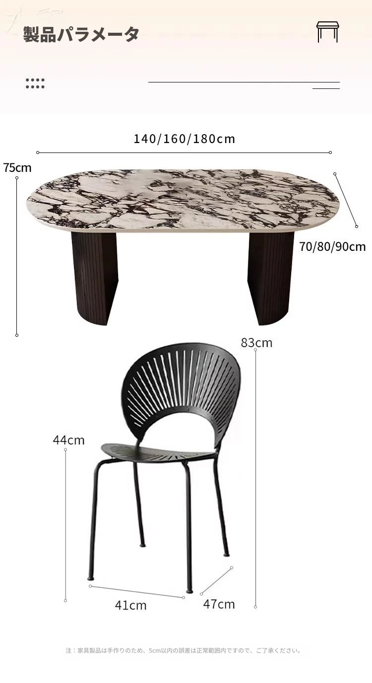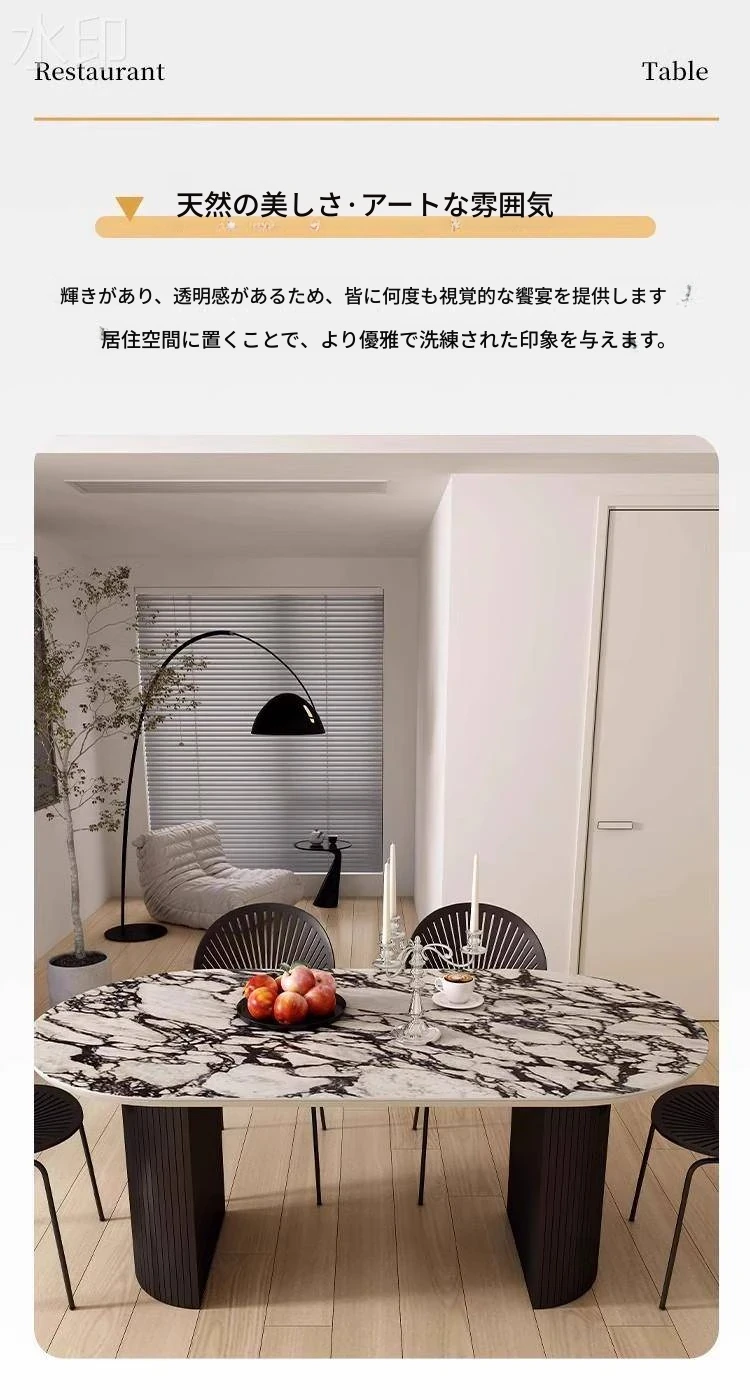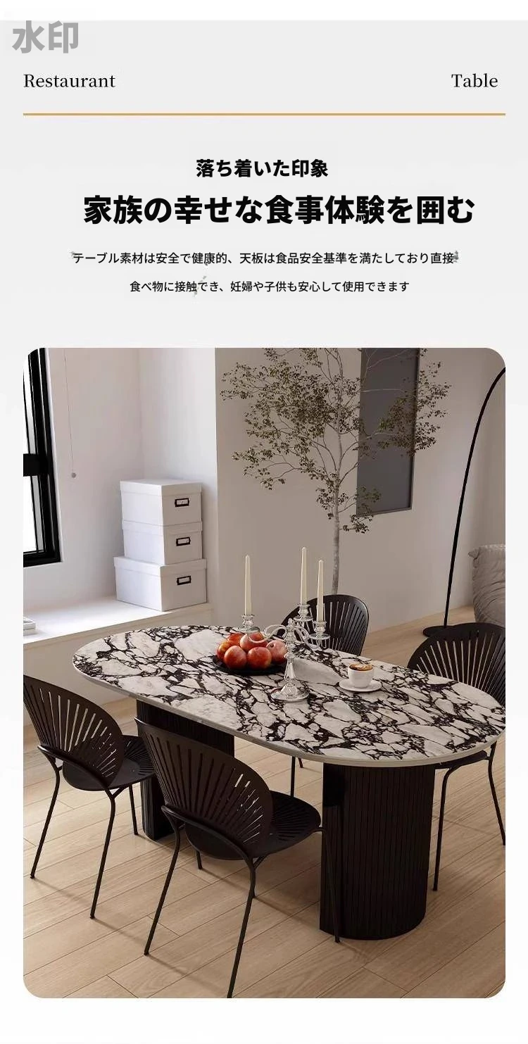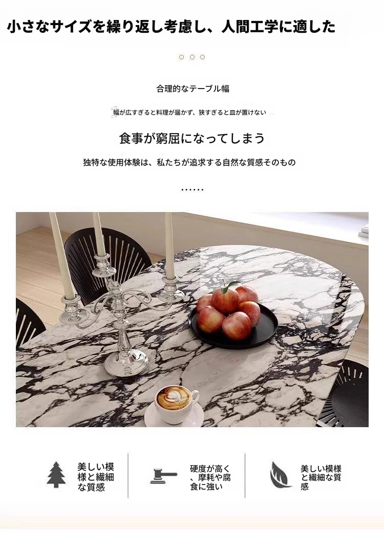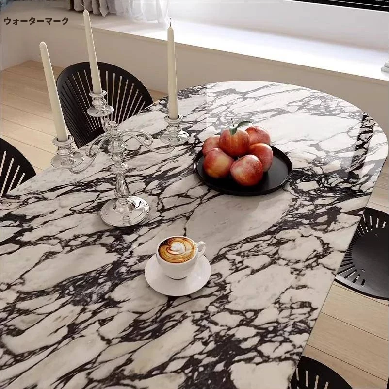フレンチクリーム風マーブルダイニングテーブル|現代的なラグジュアリー感を演出するシンプルなデザイン|大小様々な部屋にぴったりのオーバル型テーブルとチェアのセット