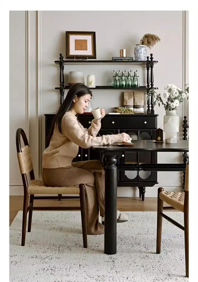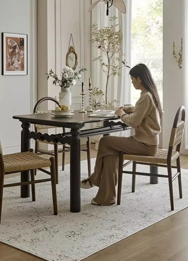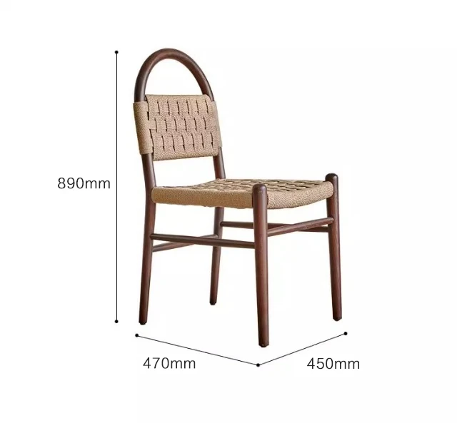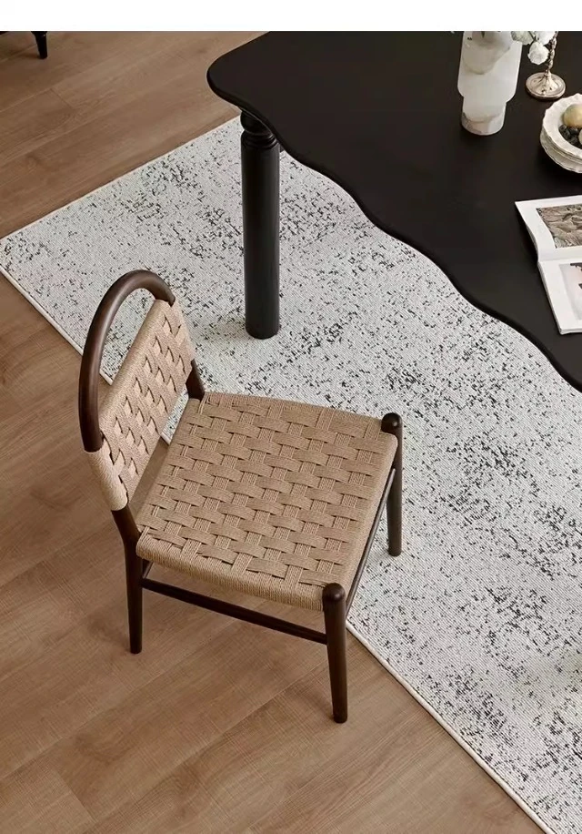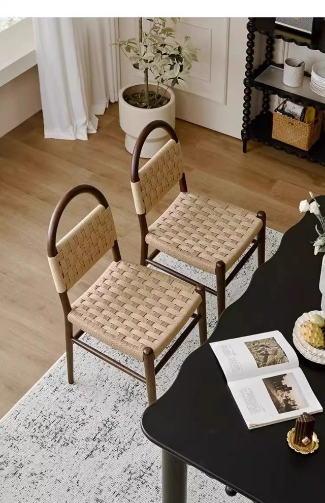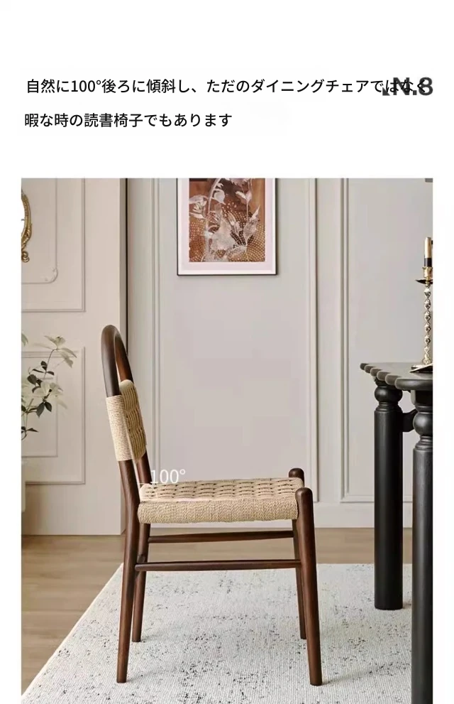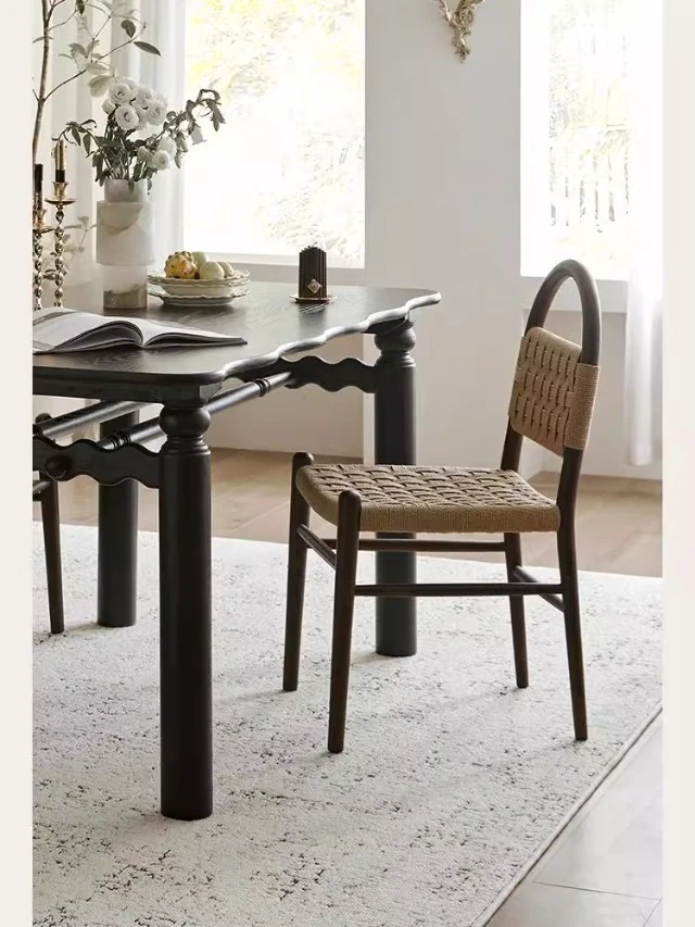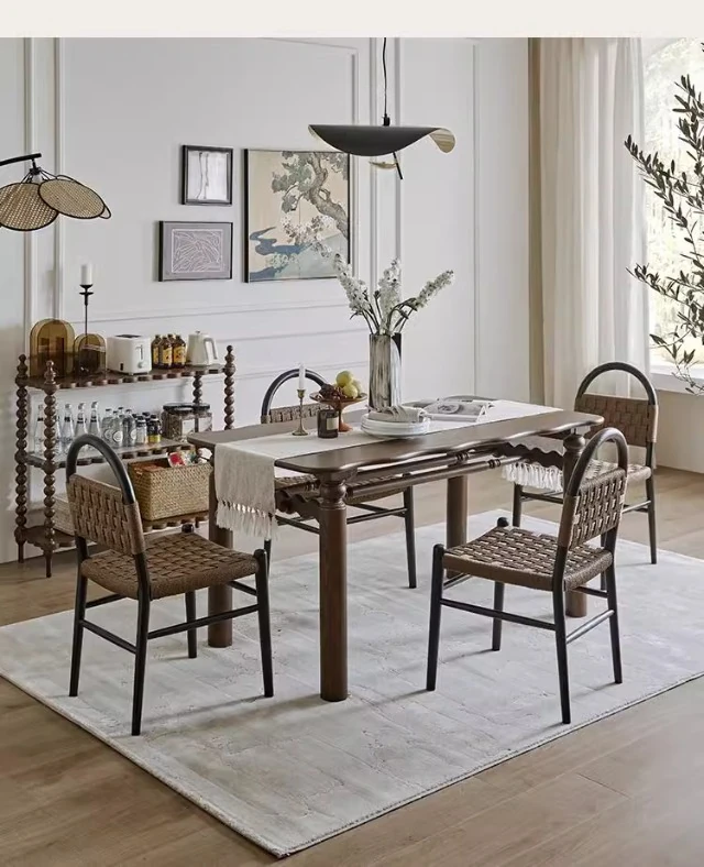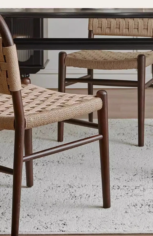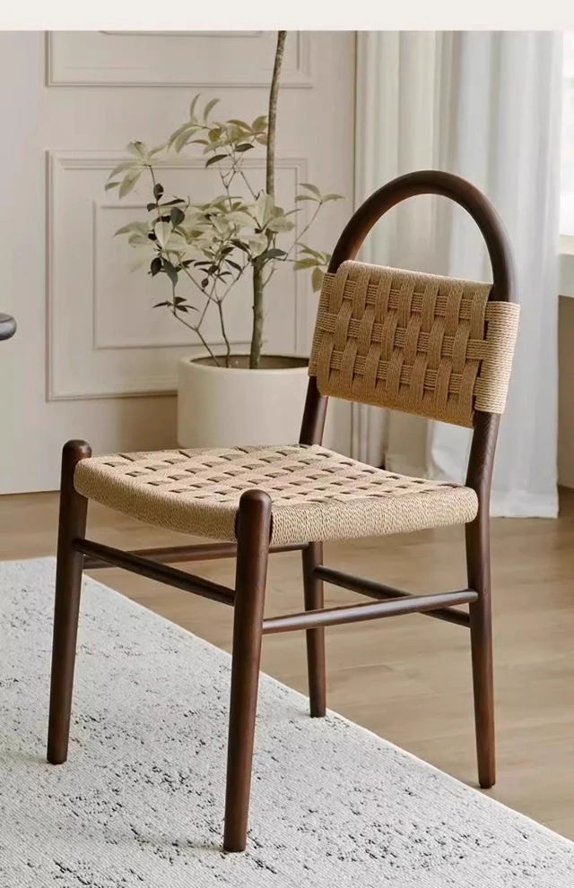 フランス風レトロ無垢材リビングダイニングチェア|アメリカンオークのヴィンテージスタイル|侘寂の美学を取り入れた書斎用ウィービングチェア|おしゃれで心地よい空間を演出!