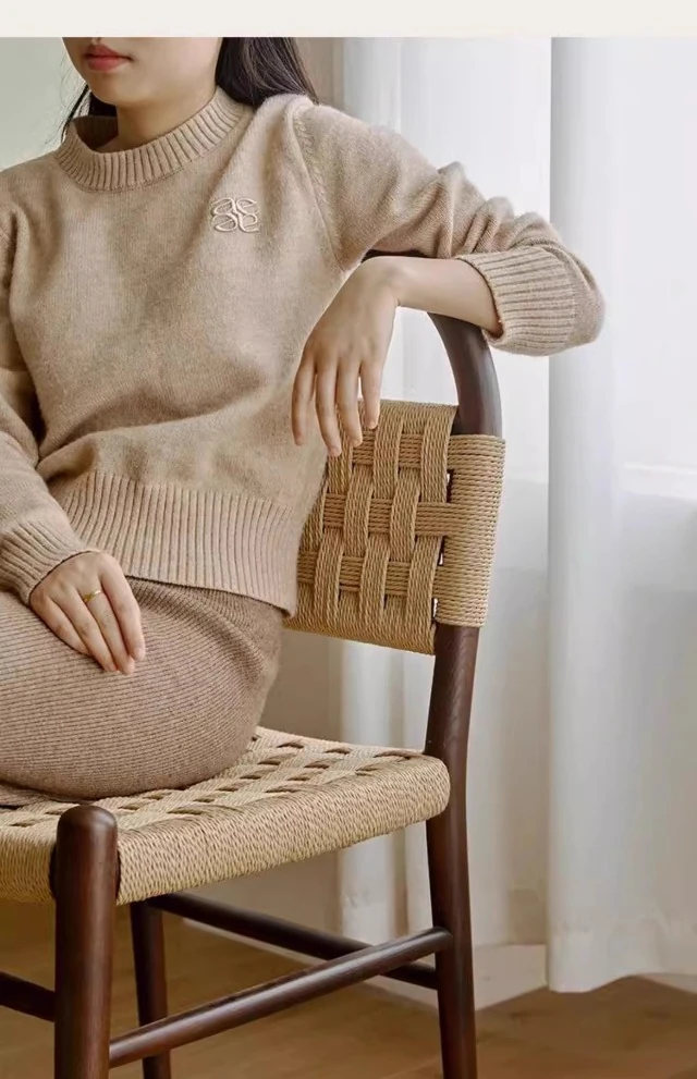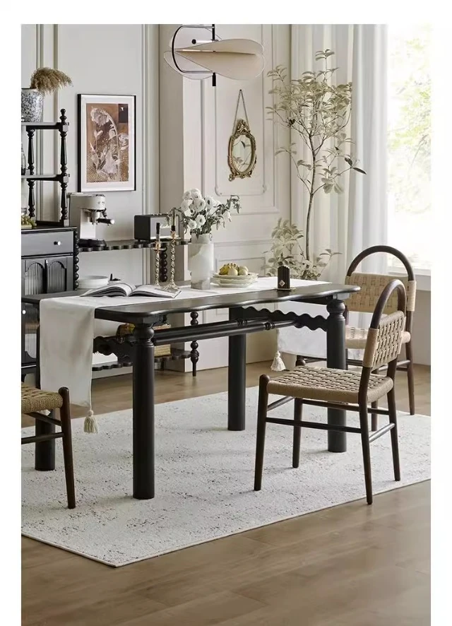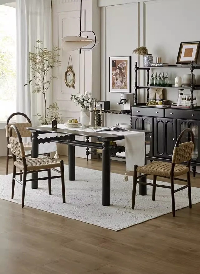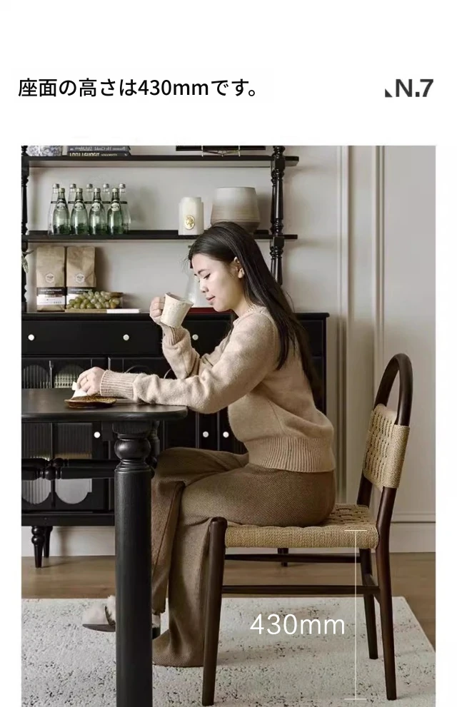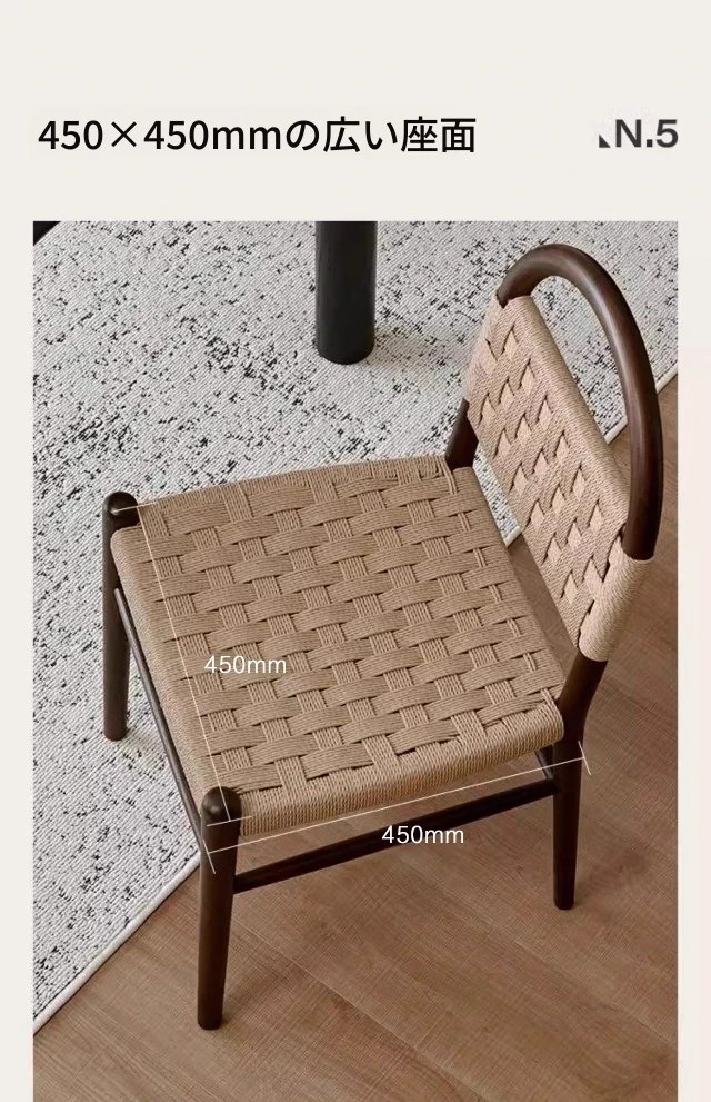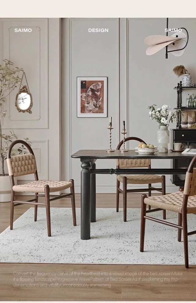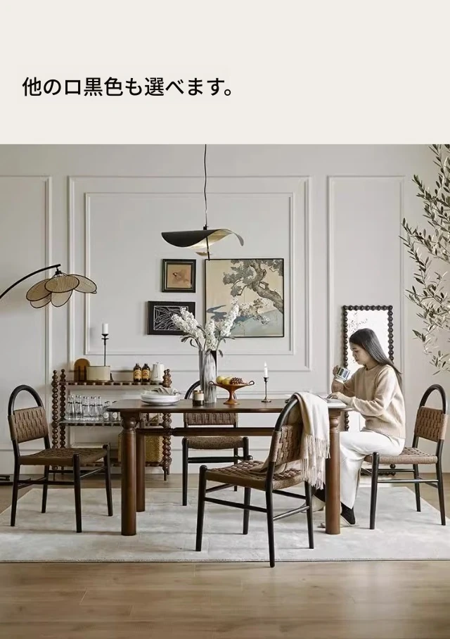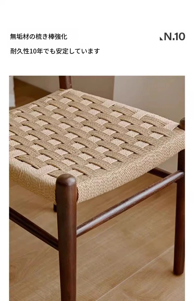 フランス風レトロ無垢材リビングダイニングチェア|アメリカンオークのヴィンテージスタイル|侘寂の美学を取り入れた書斎用ウィービングチェア|おしゃれで心地よい空間を演出!