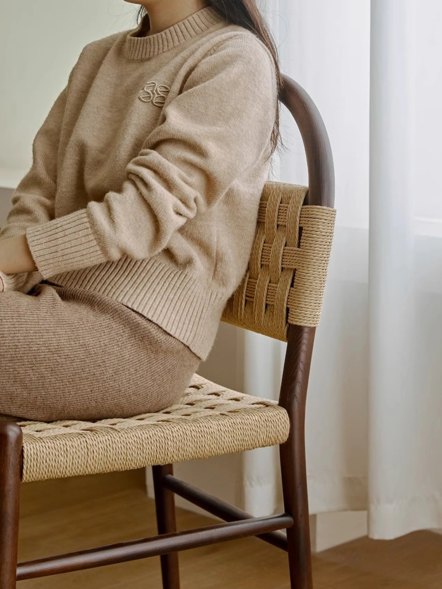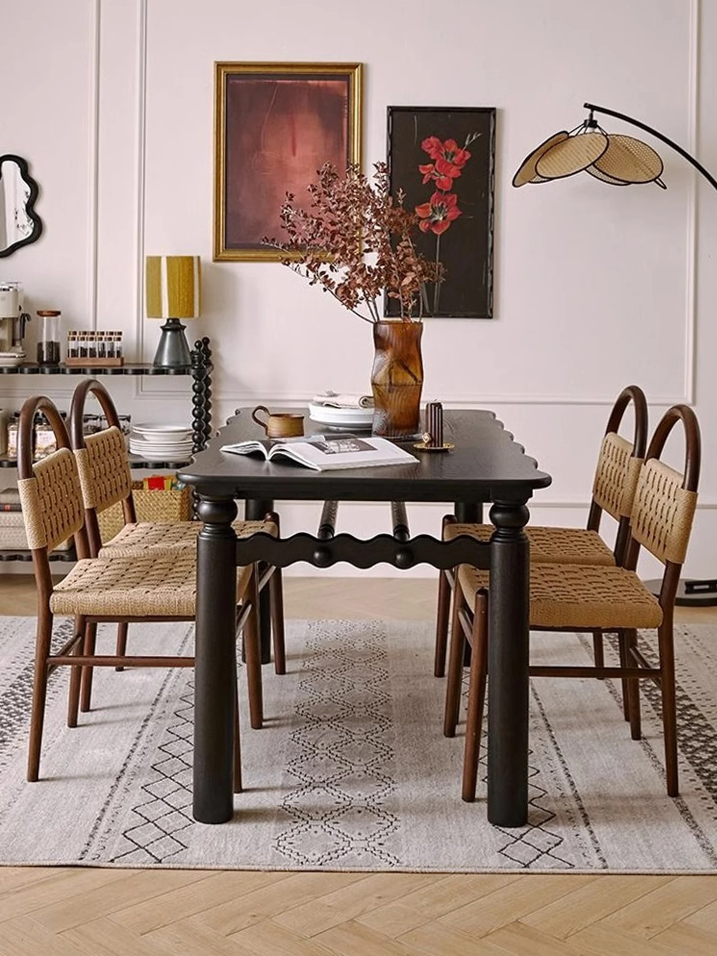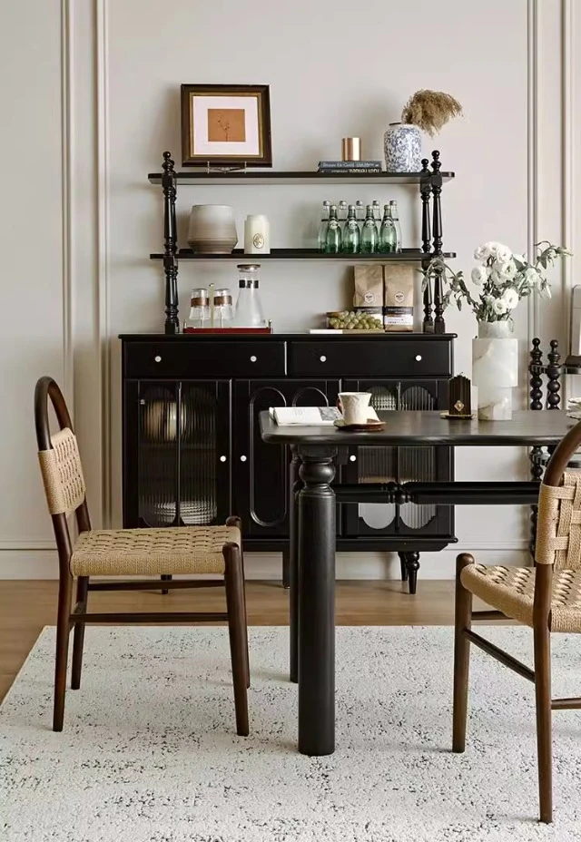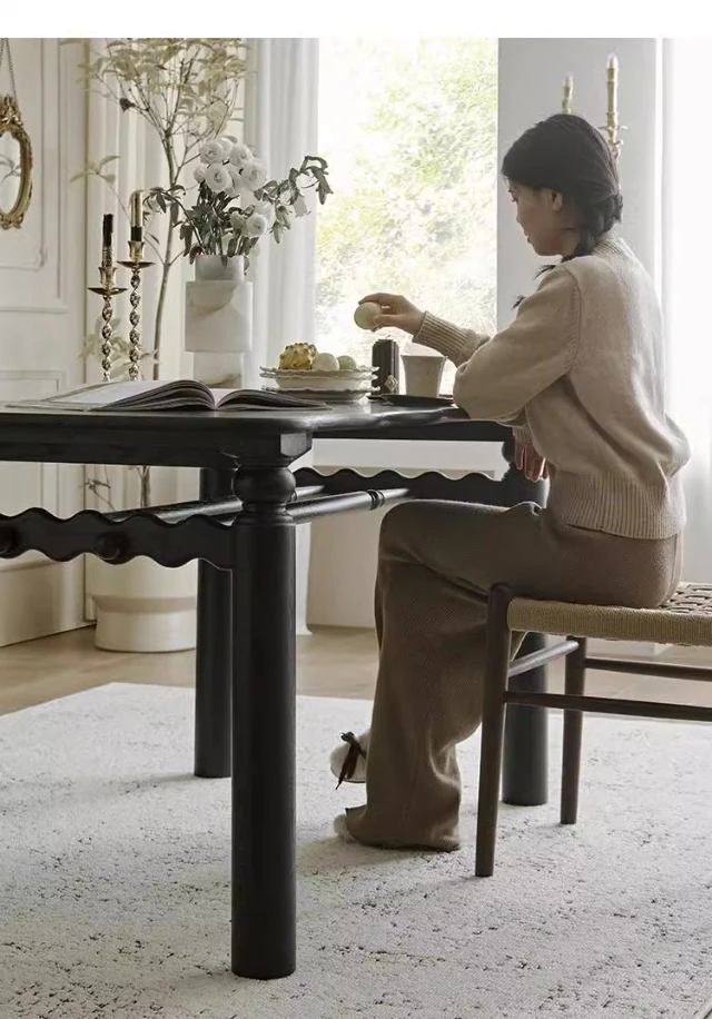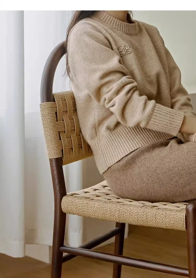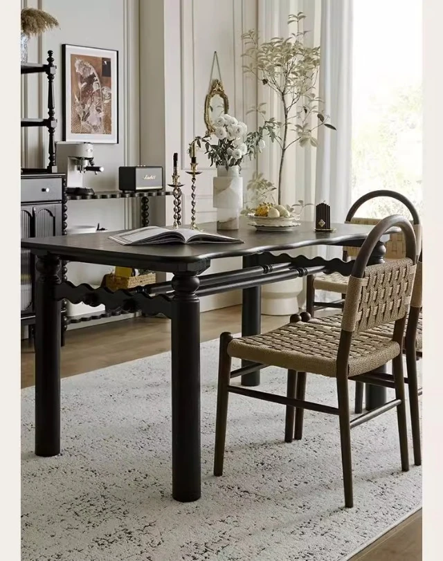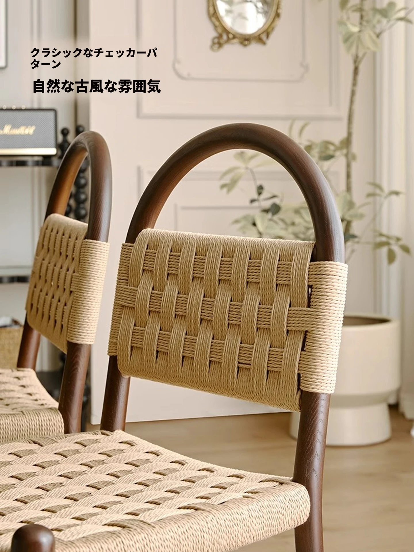 フランス風レトロ無垢材リビングダイニングチェア|アメリカンオークのヴィンテージスタイル|侘寂の美学を取り入れた書斎用ウィービングチェア|おしゃれで心地よい空間を演出!