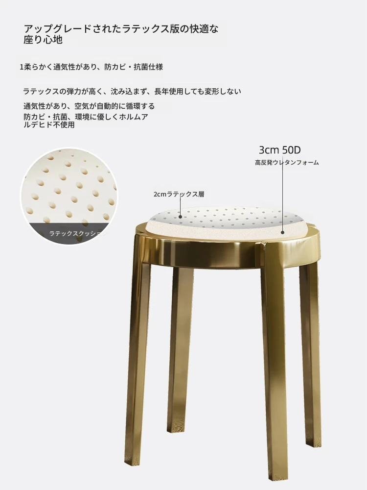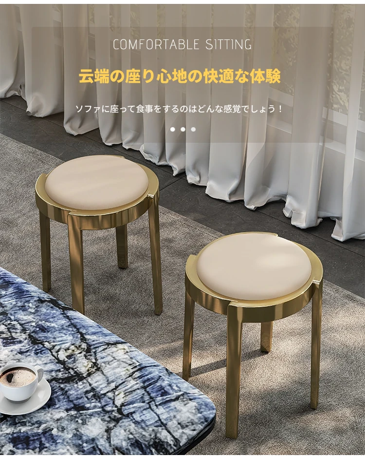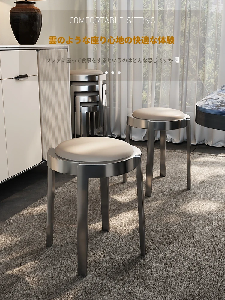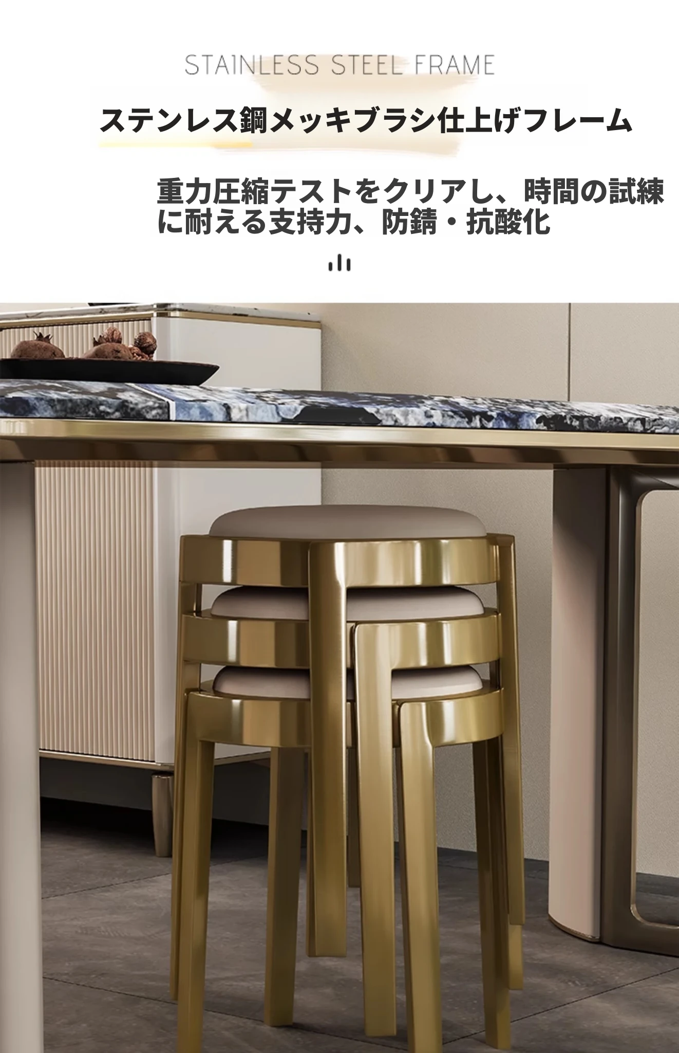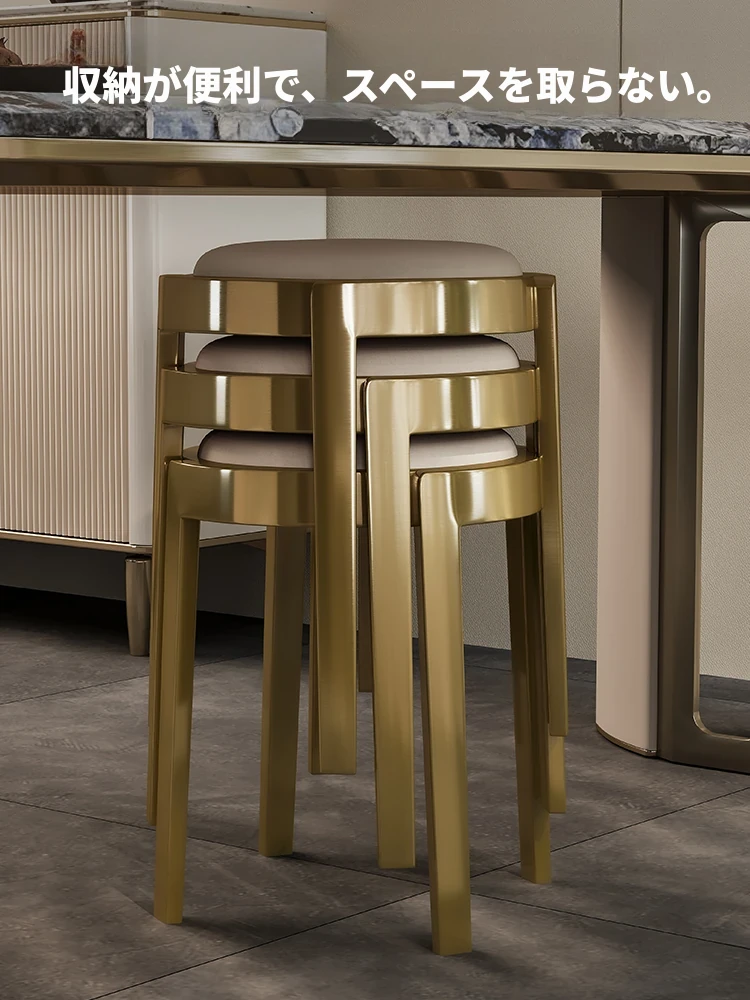 高級感溢れる本革製ダイニングチェア!省スペースで使えるコンパクトなサブスツール。スタッキング可能なステンレススチール製の小さなスツールで、どんなインテリアにもマッチ!