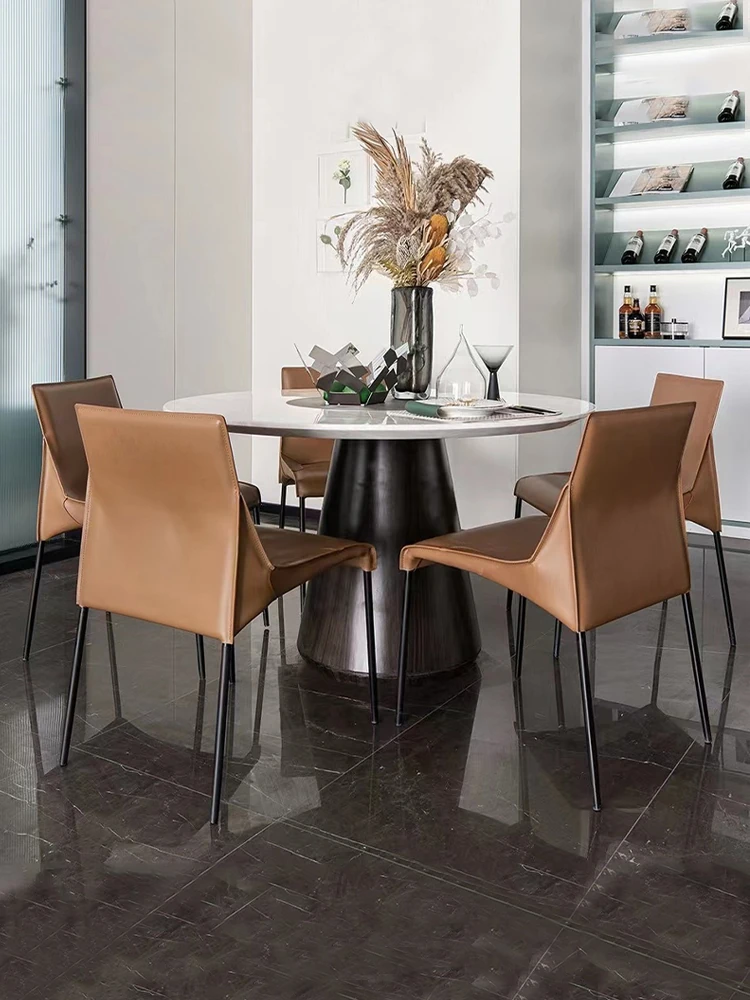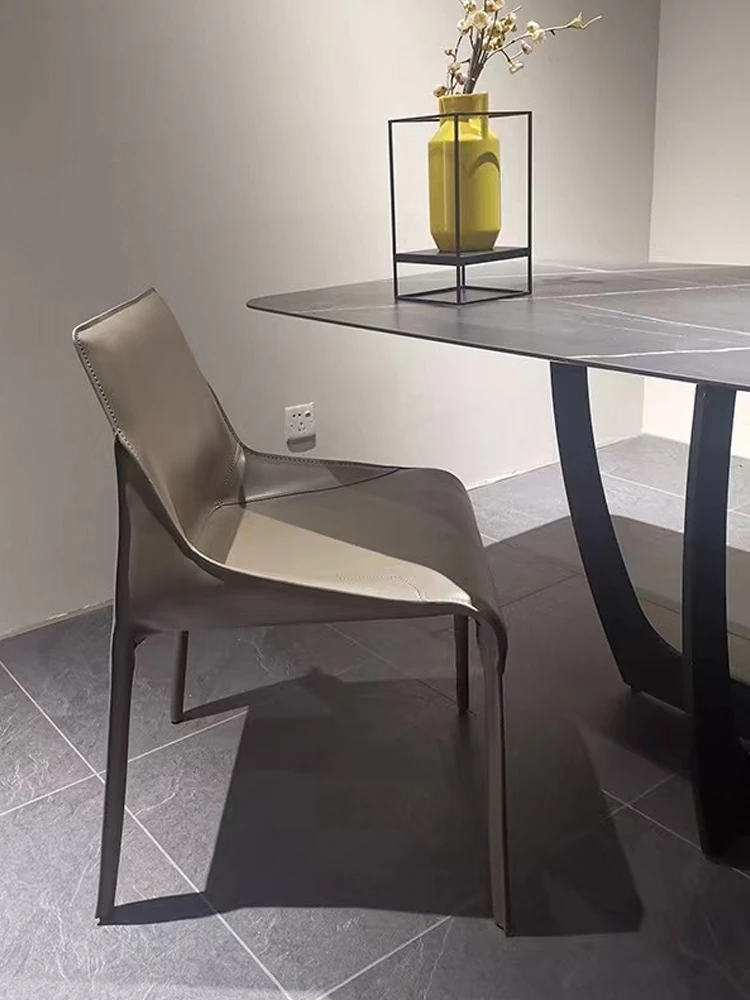 イタリアンレザーのサドルチェア - ラグジュアリーなデザイン、デザイナーのモデルルームに最適!高級感あふれる本革製、ホテルやクラブのミーティングにぴったりのエレガントな椅子。