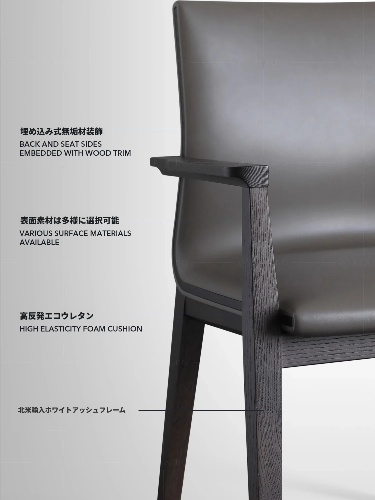 ホワイトアッシュブラック + ハイグレイ超ファイバー皮【アームレストなし】