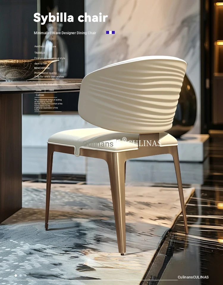 Italian Luxury Wave Dining Chair - Elegant Minimalist Design for Home Use, Premium Stone Upholstery, Perfect for Island Dining Tables - Elevate Your Dining Experience!