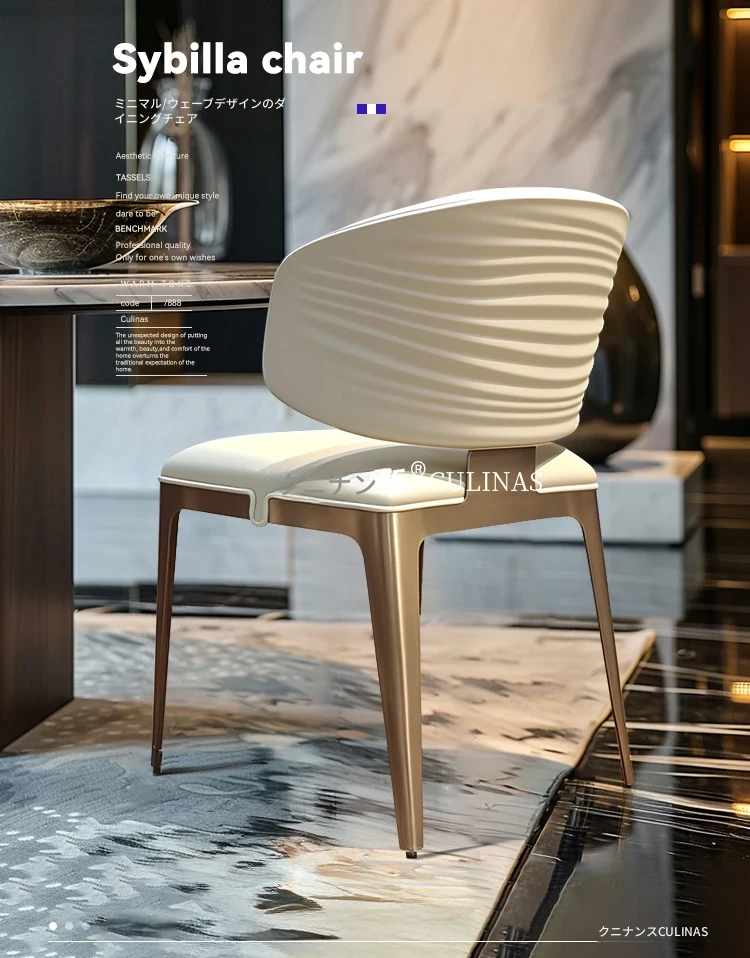 イタリアンラグジュアリー ダイニングチェア 高級波形デザイン 家庭用エレガントストーンチェア シンプルなウェーブチェア 高級アイランドカウンターチェア