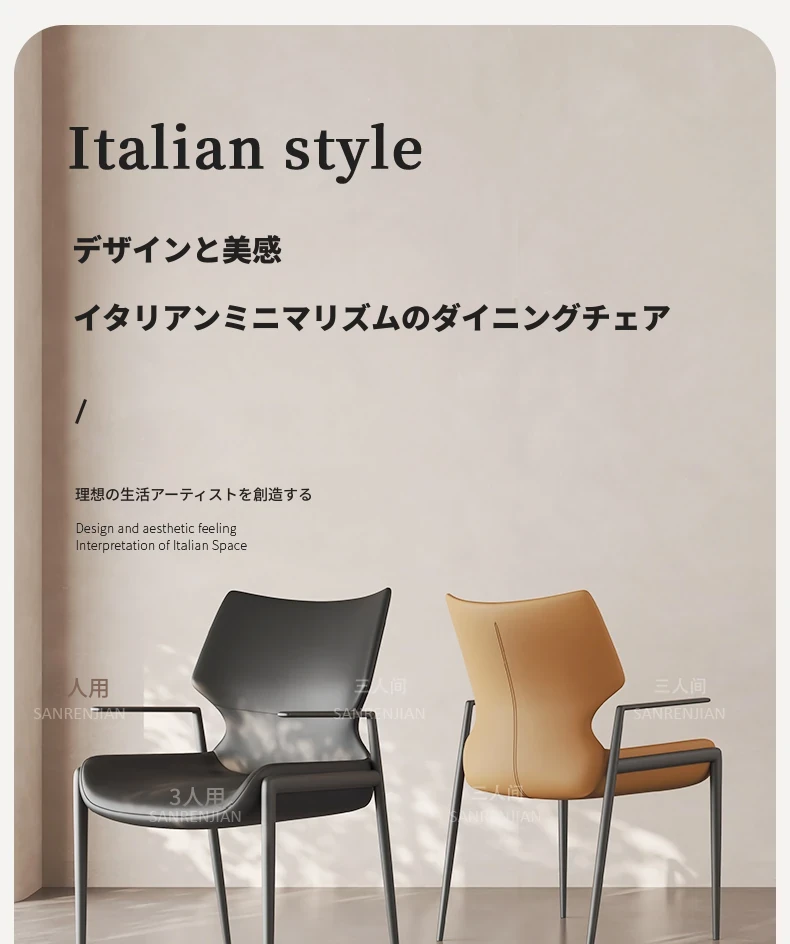 イタリアンミニマルデザインの高級家庭用ダイニングチェア|ホテル用レザー椅子|モデルルームや販売所に最適な洽談椅子|洗練されたスタイルで、心地よい空間を演出します!
