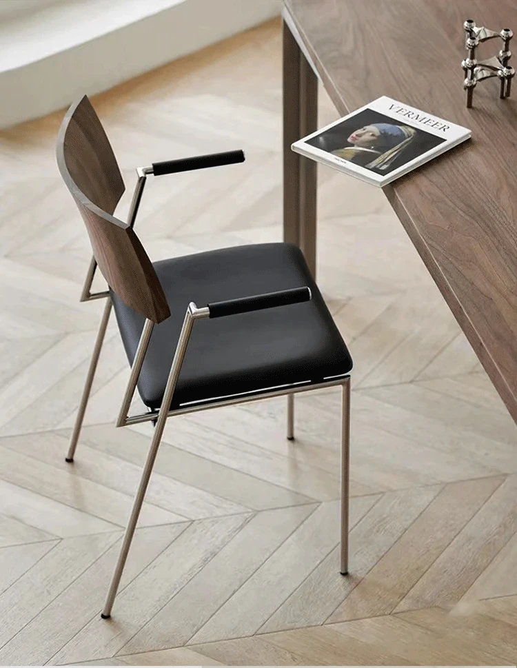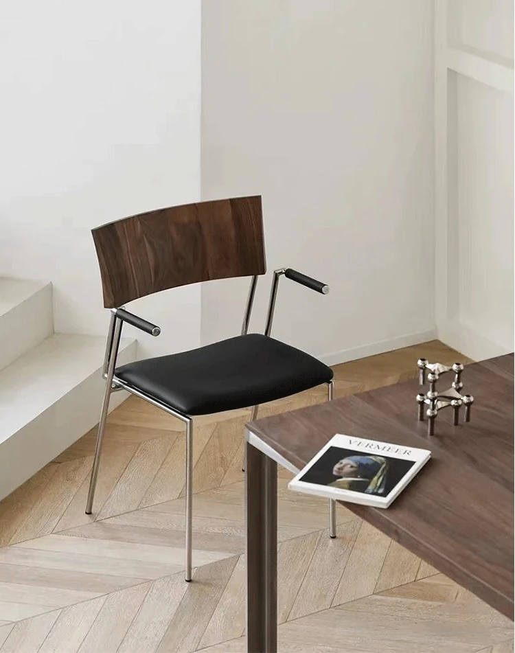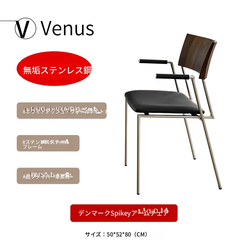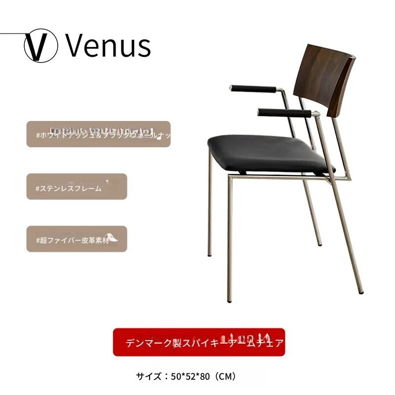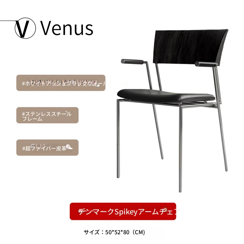デンマークステンレスチェア【黒 アームレストあり】 ステンレス+ホワイトアッシュ