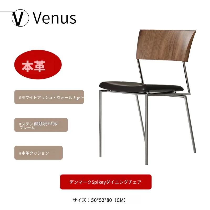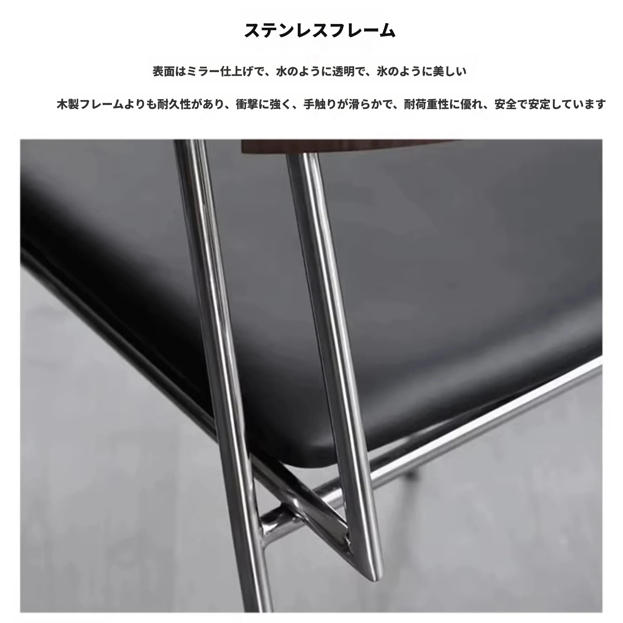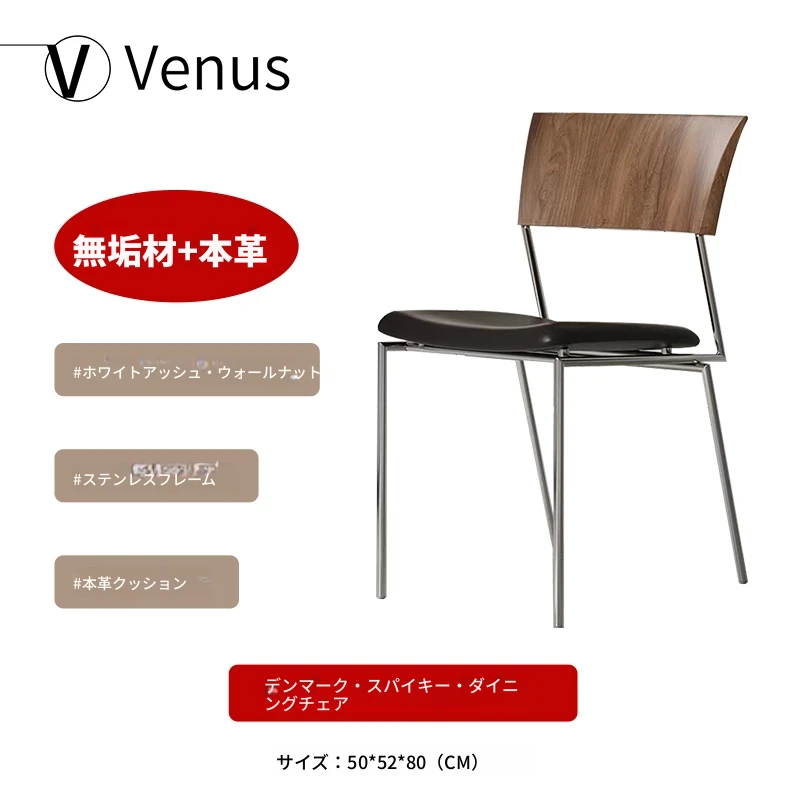 デンマークダイニングチェア【本革 アームレストなし】 ステンレス+ホワイトアッシュ