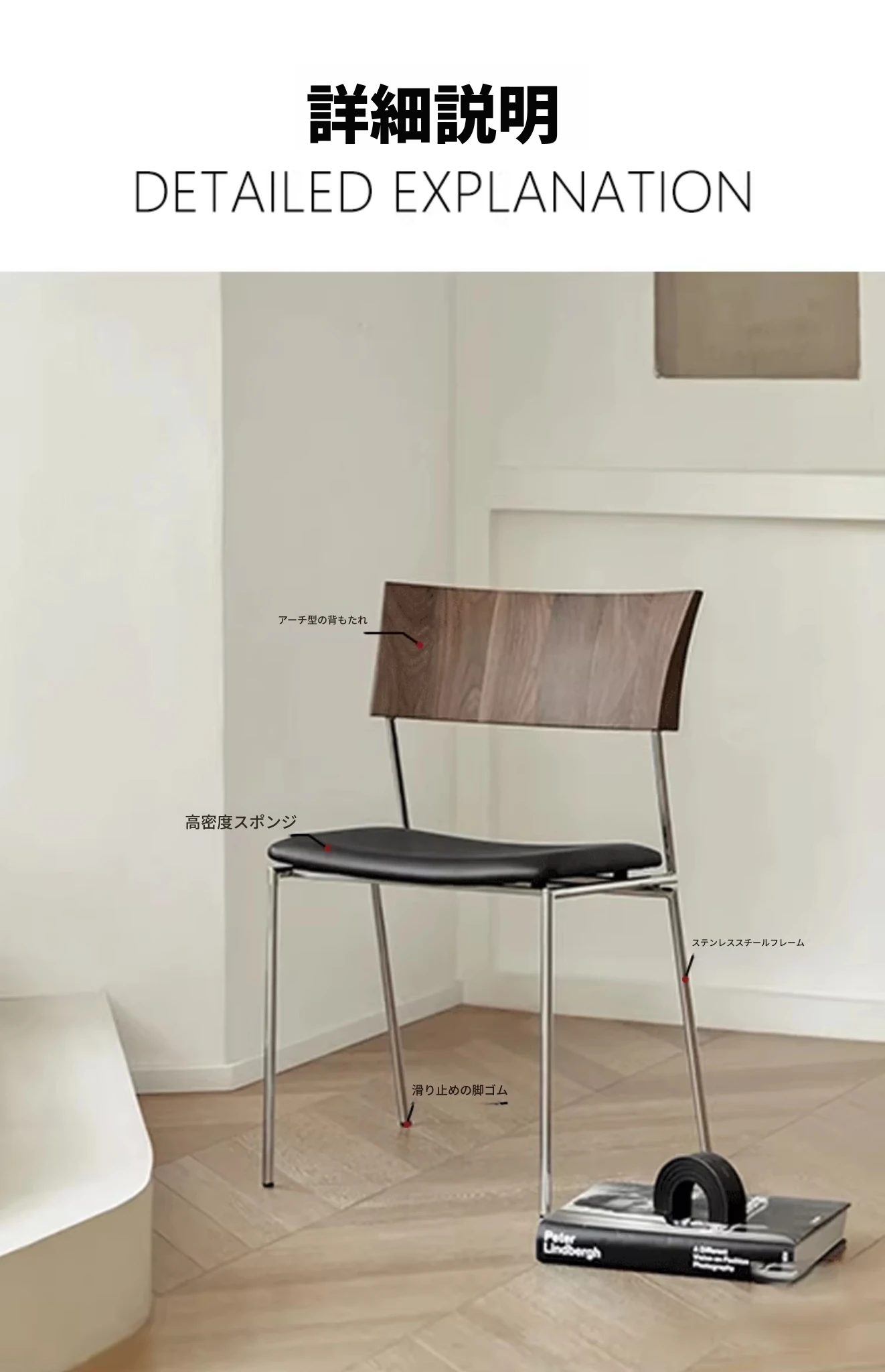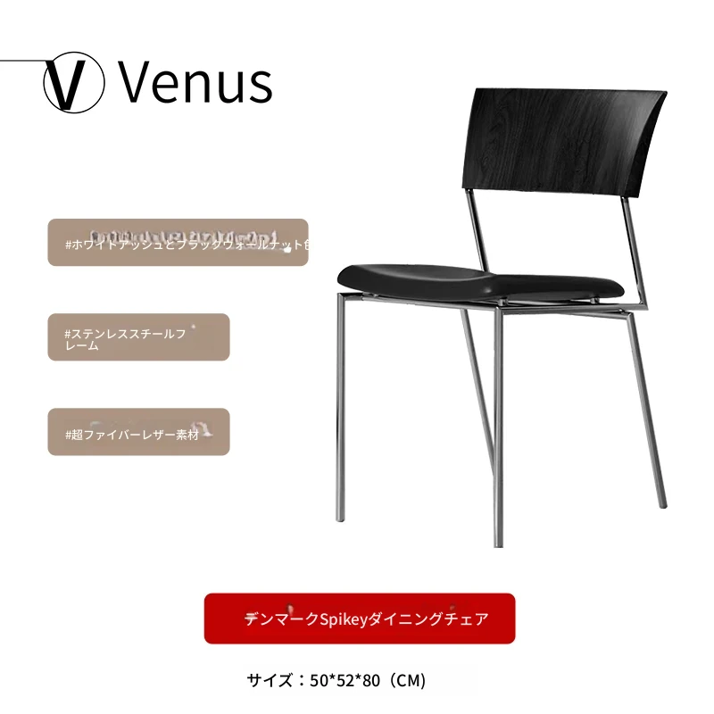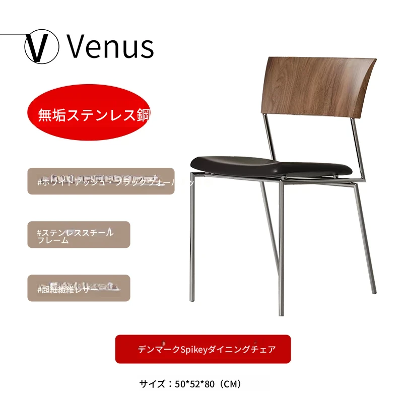 デンマークステンレスチェア【黒 アームレストなし】 ステンレス+ホワイトアッシュ