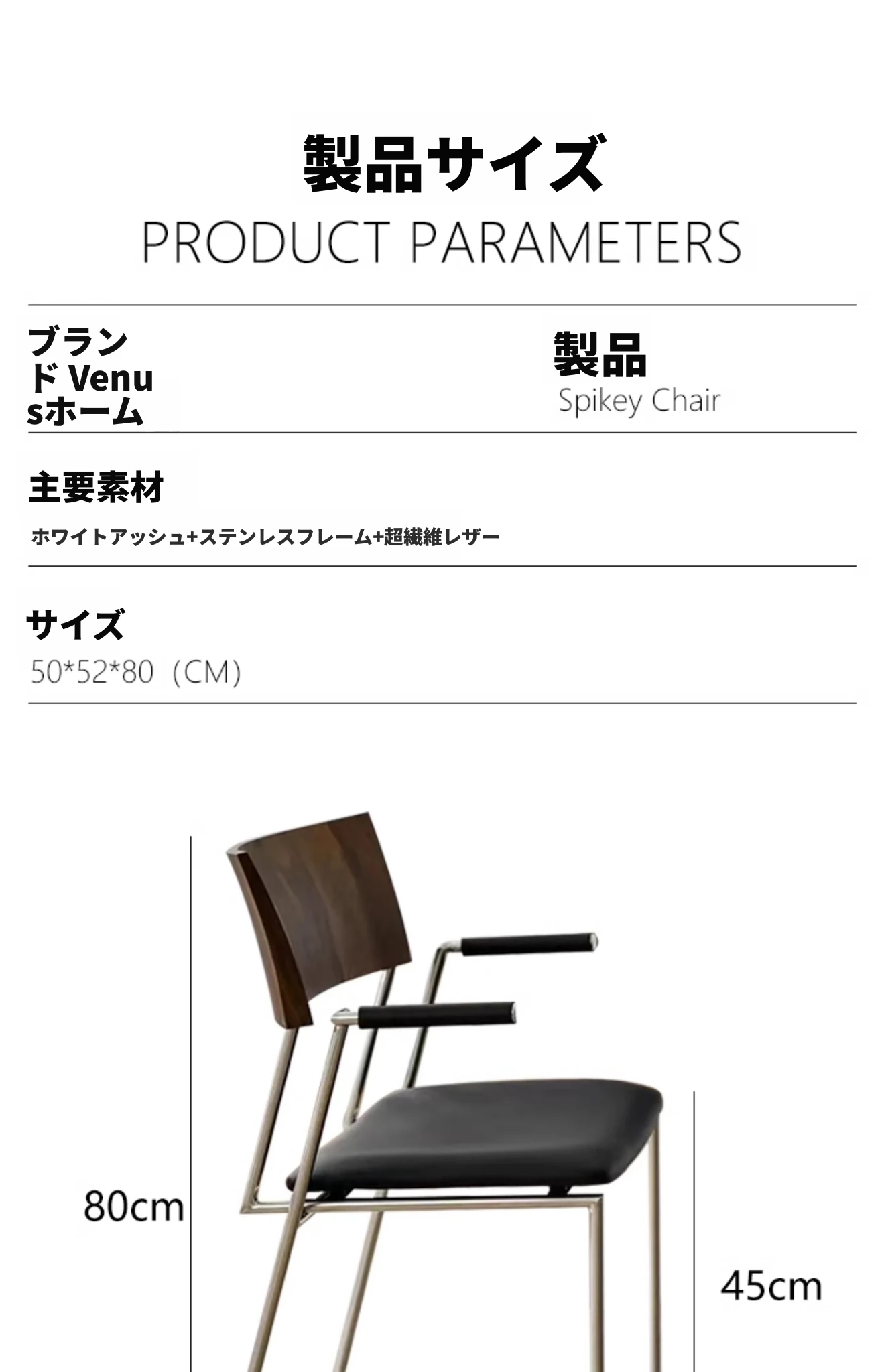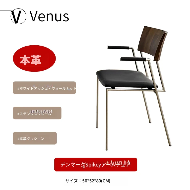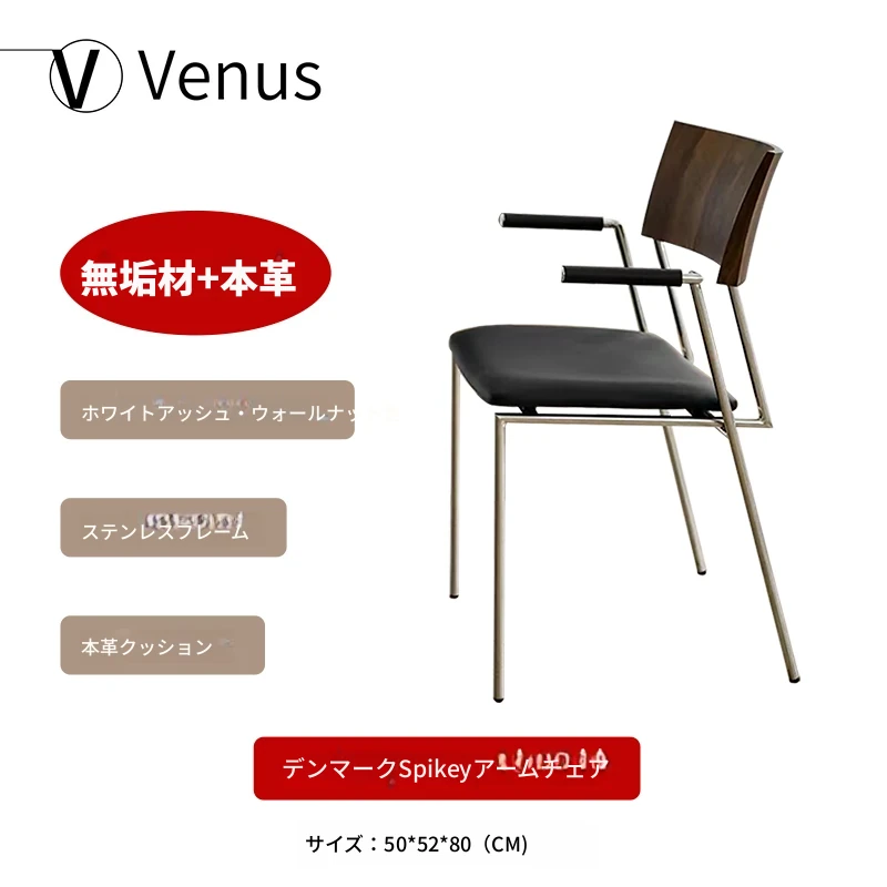 デンマークダイニングチェア【本革 アームレストあり】 ステンレス+ホワイトアッシュ