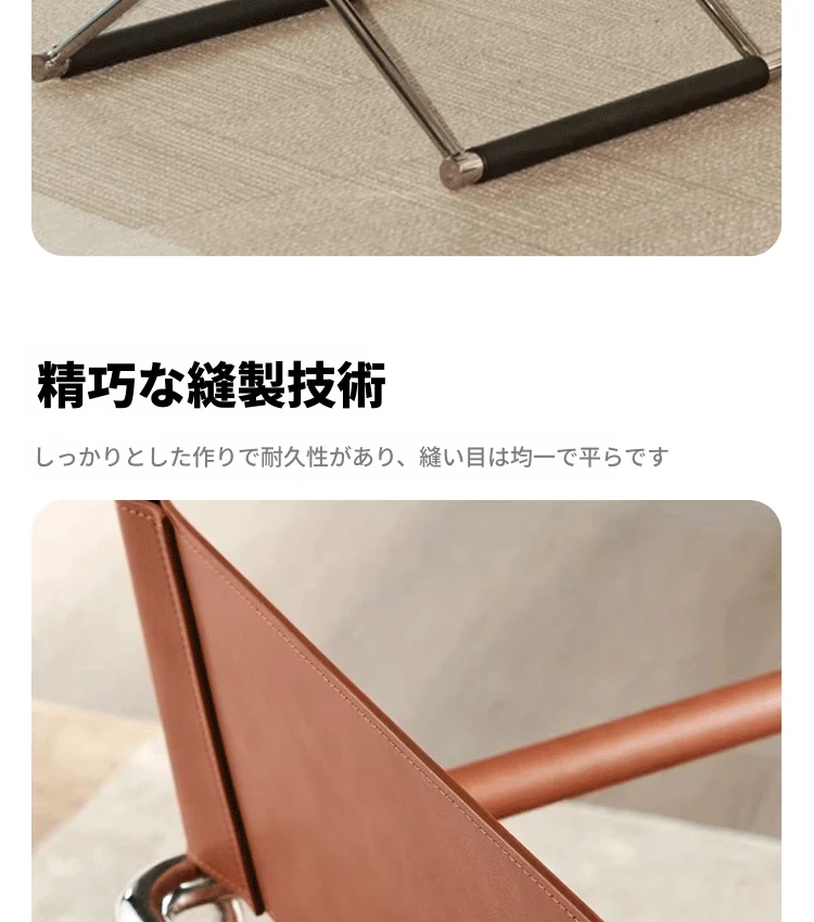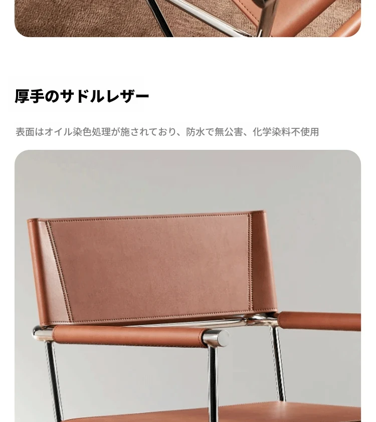 イタリアンミニマリズムのサドルレザー製ダイニングチェア、北欧デザインの高級一人掛け椅子。バウハウススタイルでリラックスできる寝室やダイニングに最適!