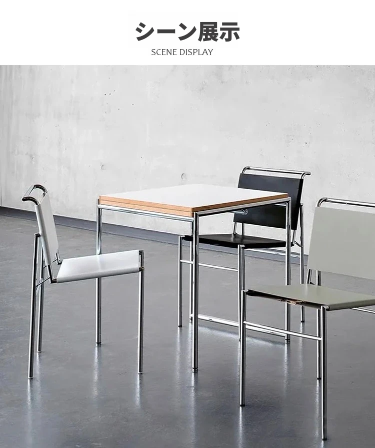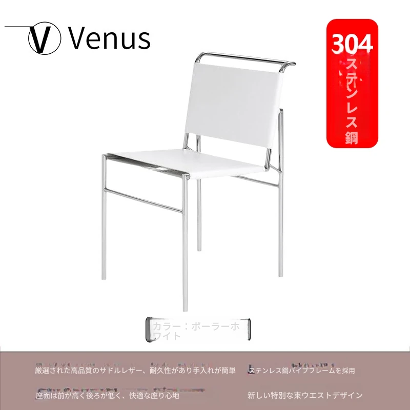 304ステンレス鋼ダイニングチェア【ホワイト】サドルレザー+ステンレス鋼