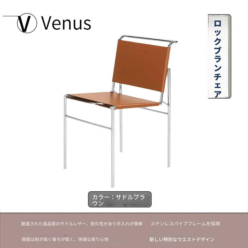 高級ダイニングチェア【サドルブラウン】サドルレザー+ステンレス鋼