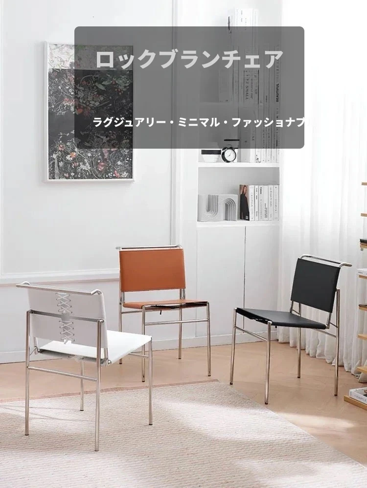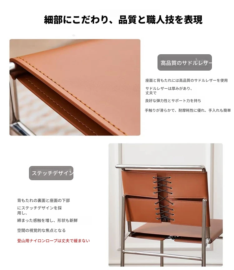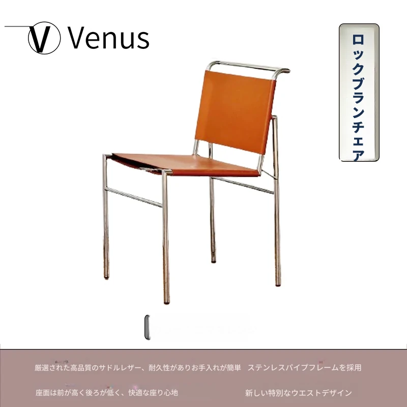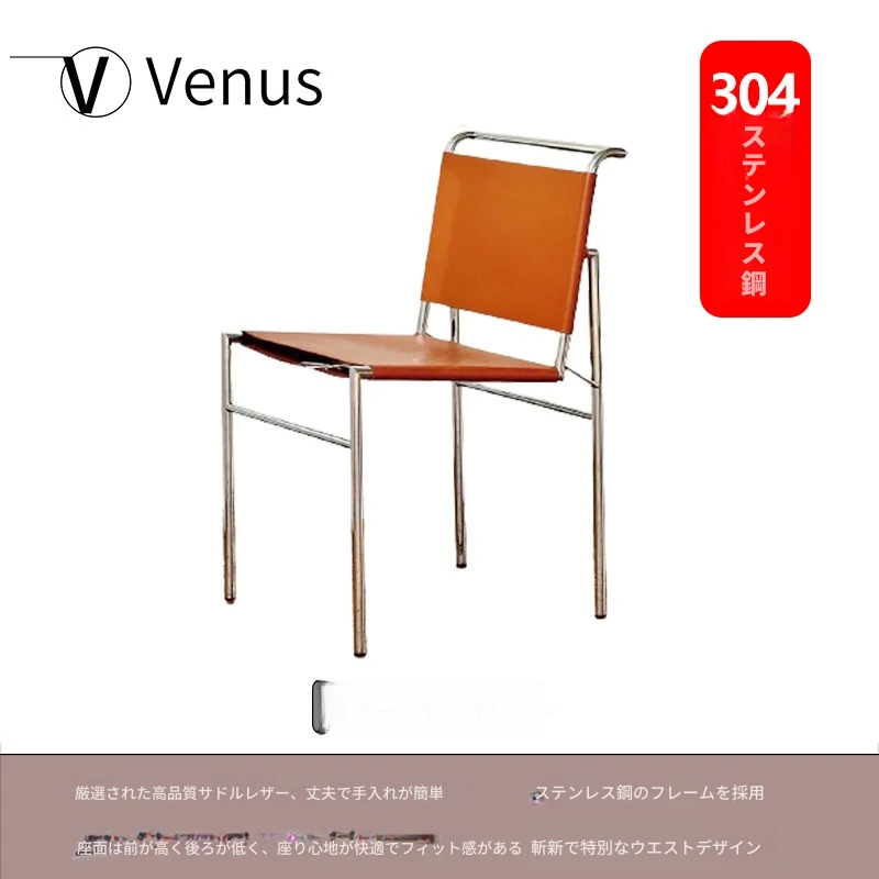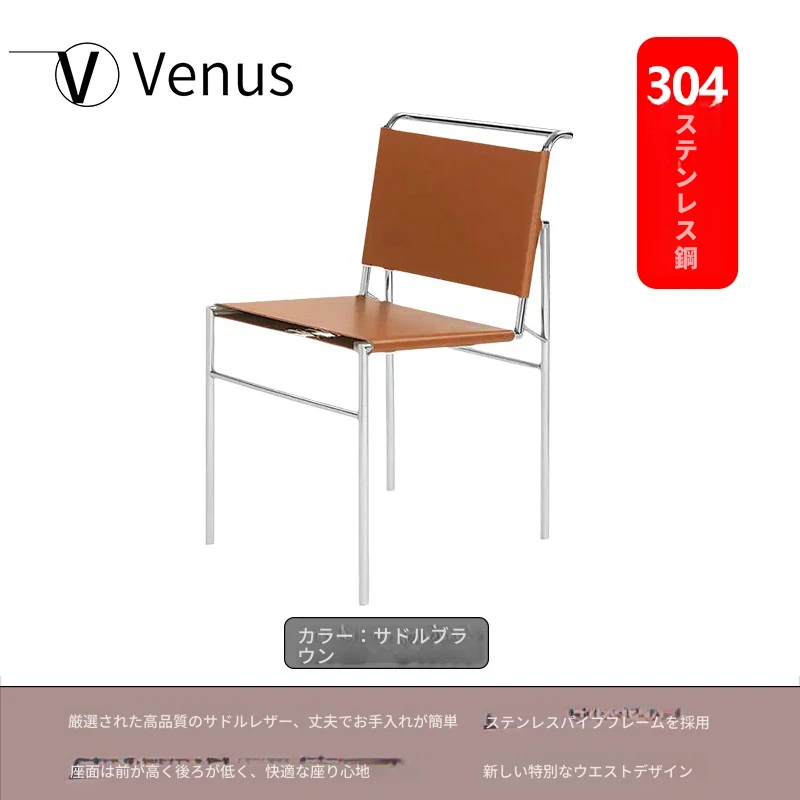 304ステンレス鋼ダイニングチェア【カスタムカラー】サドルレザー+ステンレス鋼