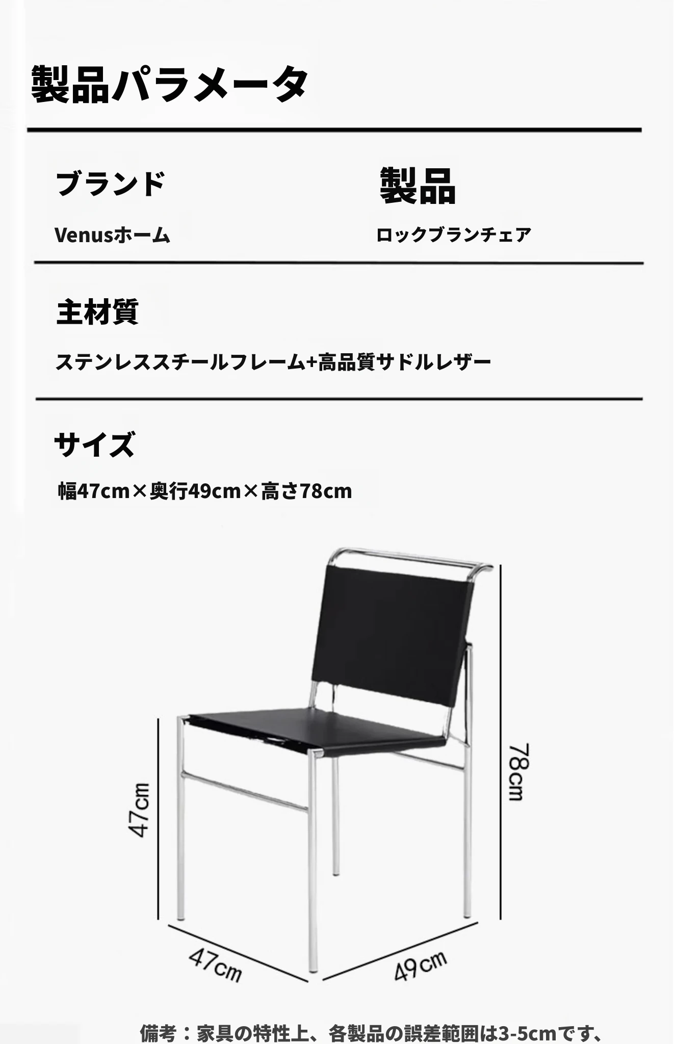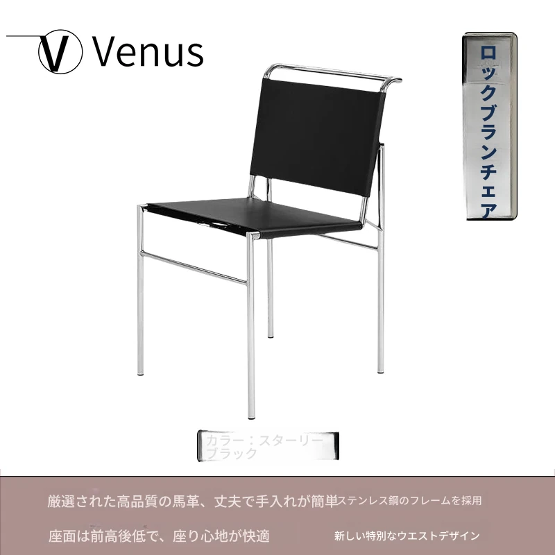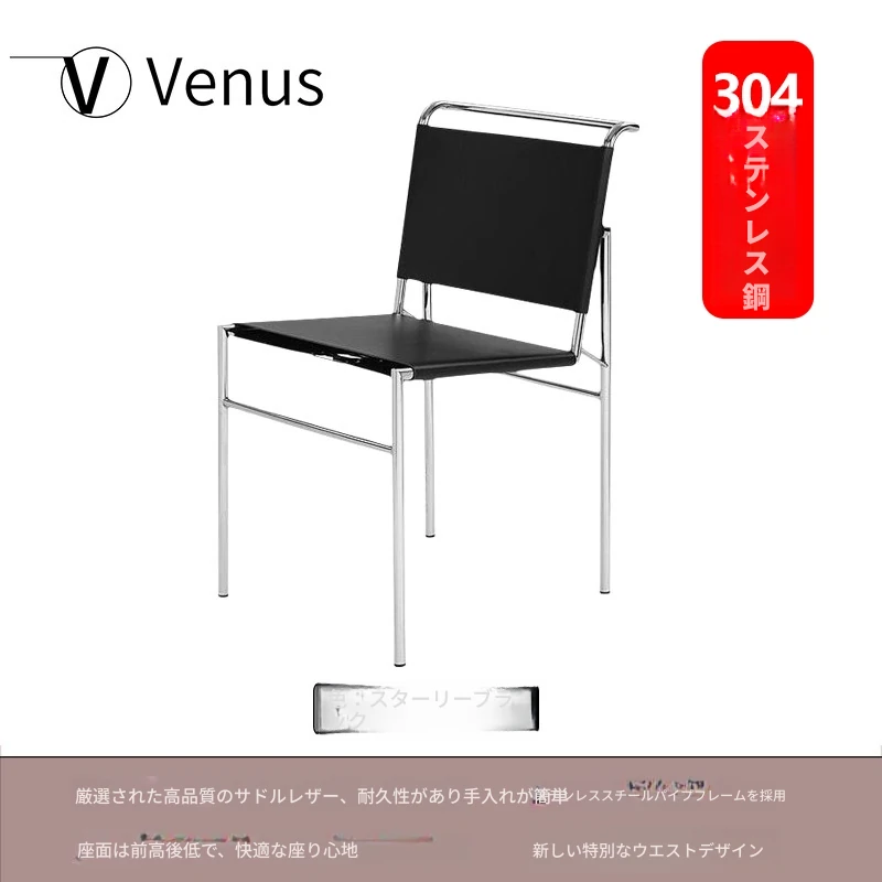 304ステンレス鋼ダイニングチェア【ブラック】サドルレザー+ステンレス鋼
