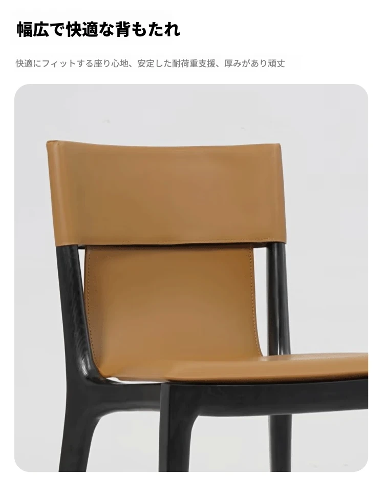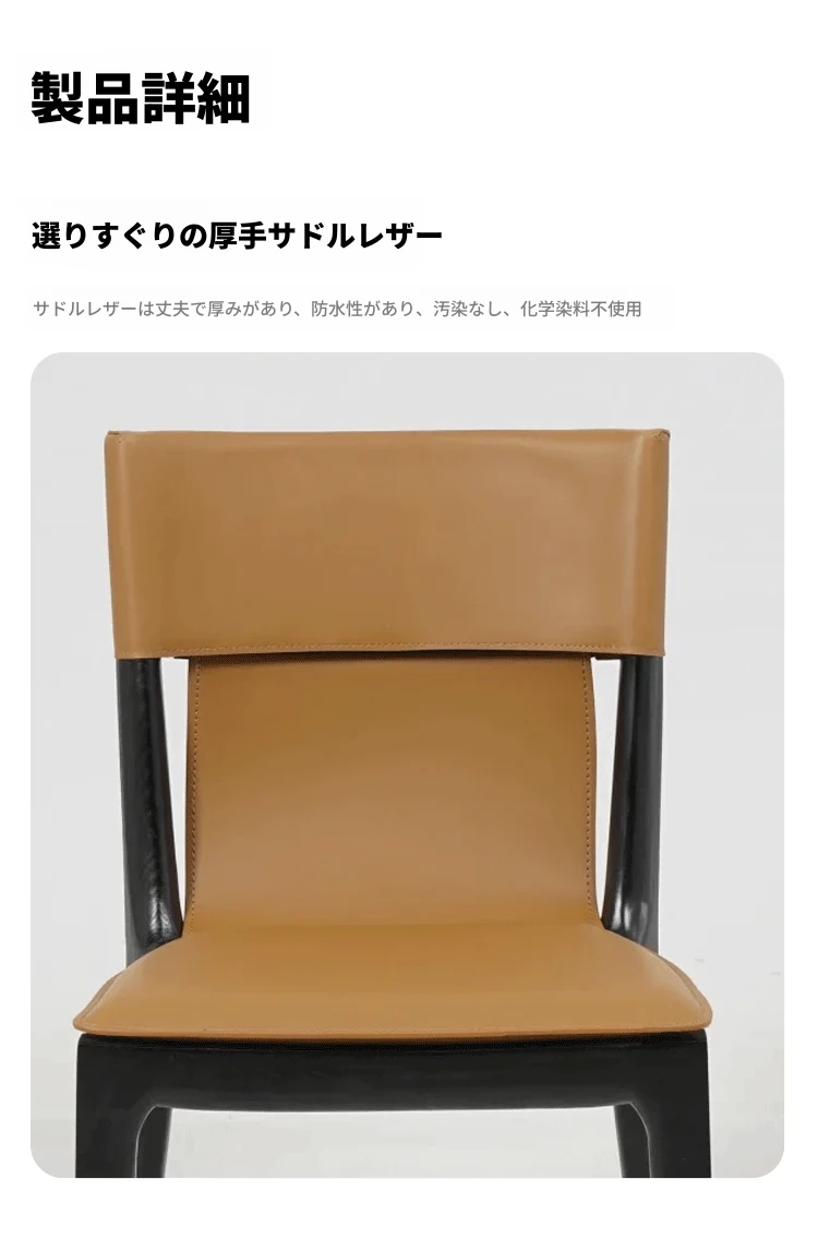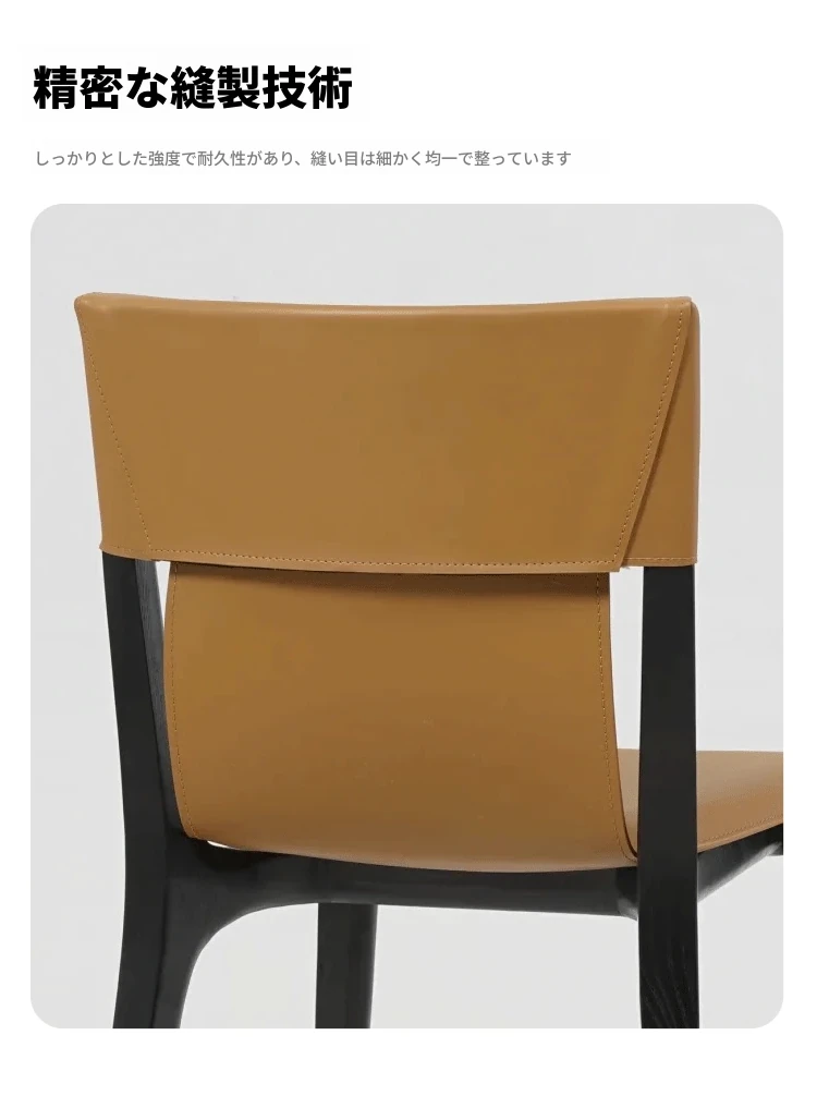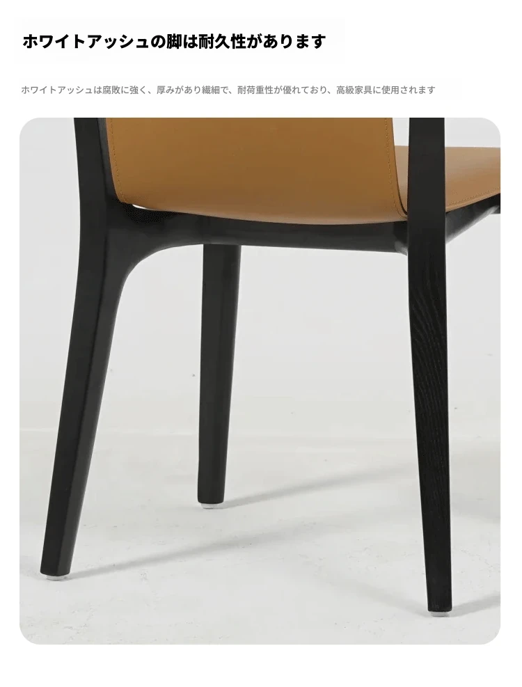 イタリアンミニマリズムの無垢材サドルレザー食卓チェア|軽やかなラグジュアリーとモダンデザインの融合|デザイナー推奨のホワイトアッシュ製|家庭にぴったりのスタイリッシュなデスクチェア!