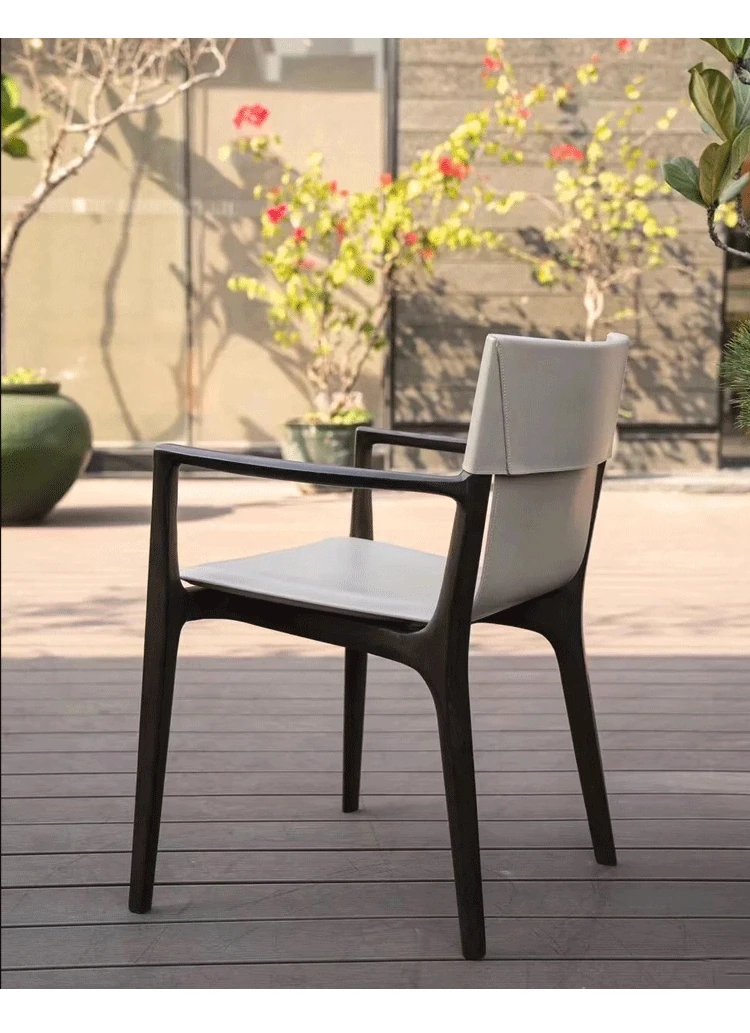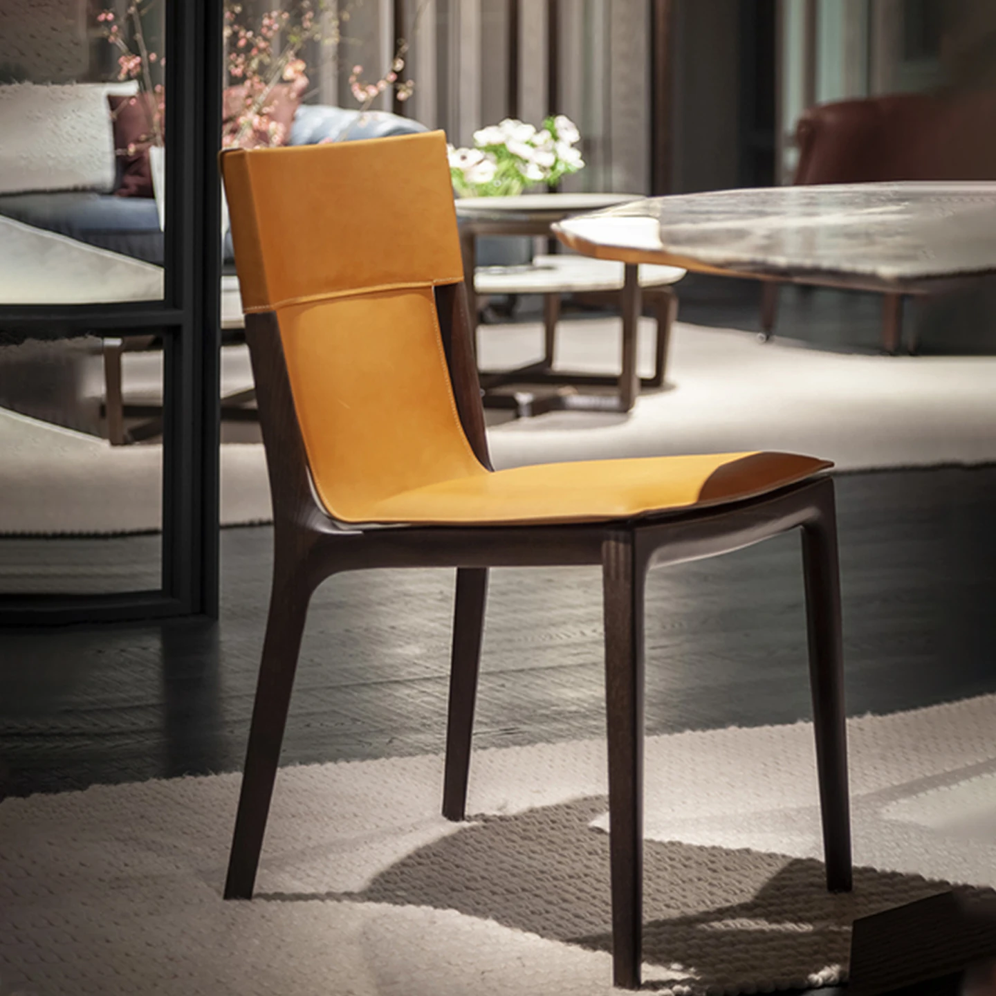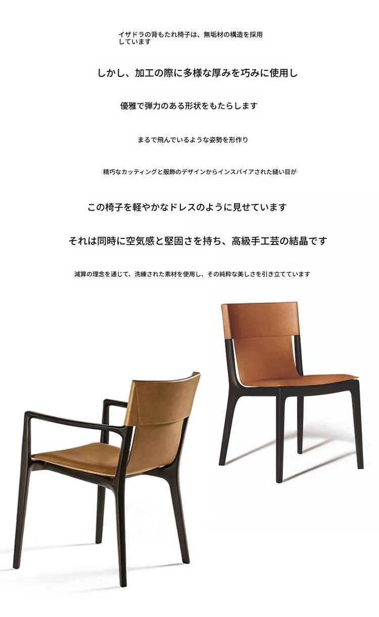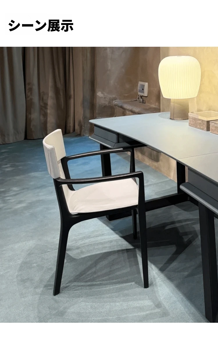 イタリアンミニマリズムの無垢材サドルレザー食卓チェア|軽やかなラグジュアリーとモダンデザインの融合|デザイナー推奨のホワイトアッシュ製|家庭にぴったりのスタイリッシュなデスクチェア!