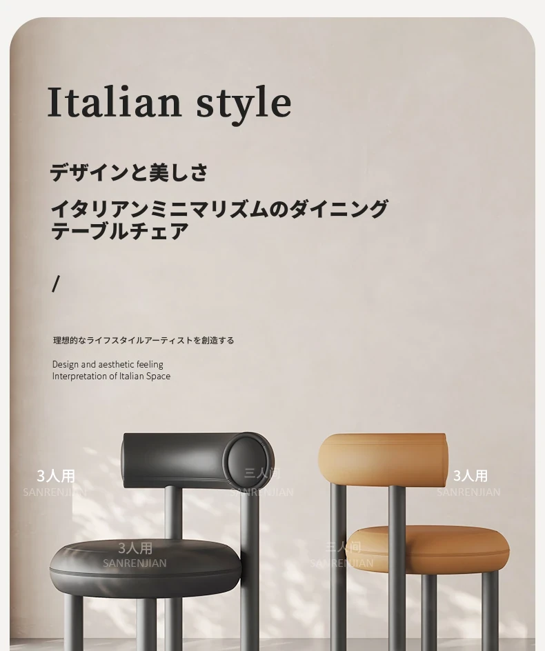 イタリアンミニマル中古風ダイニングチェア|現代デザインの家庭用スツール|軽やかでラグジュアリーなインスタ風リラックス小型チェア|おしゃれなライフスタイルにぴったり!