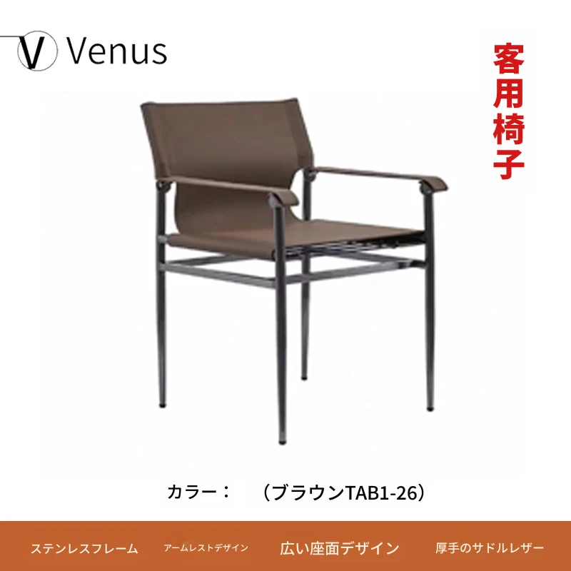 ゲストチェア【ブラウンのサドルレザー+ステンレス】