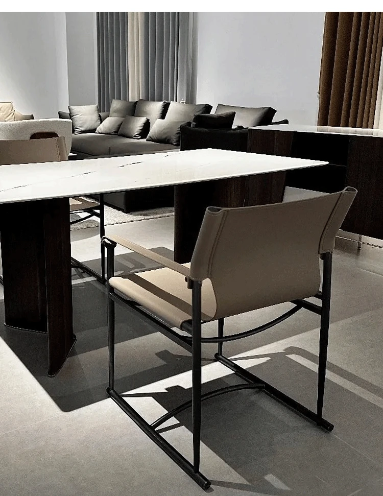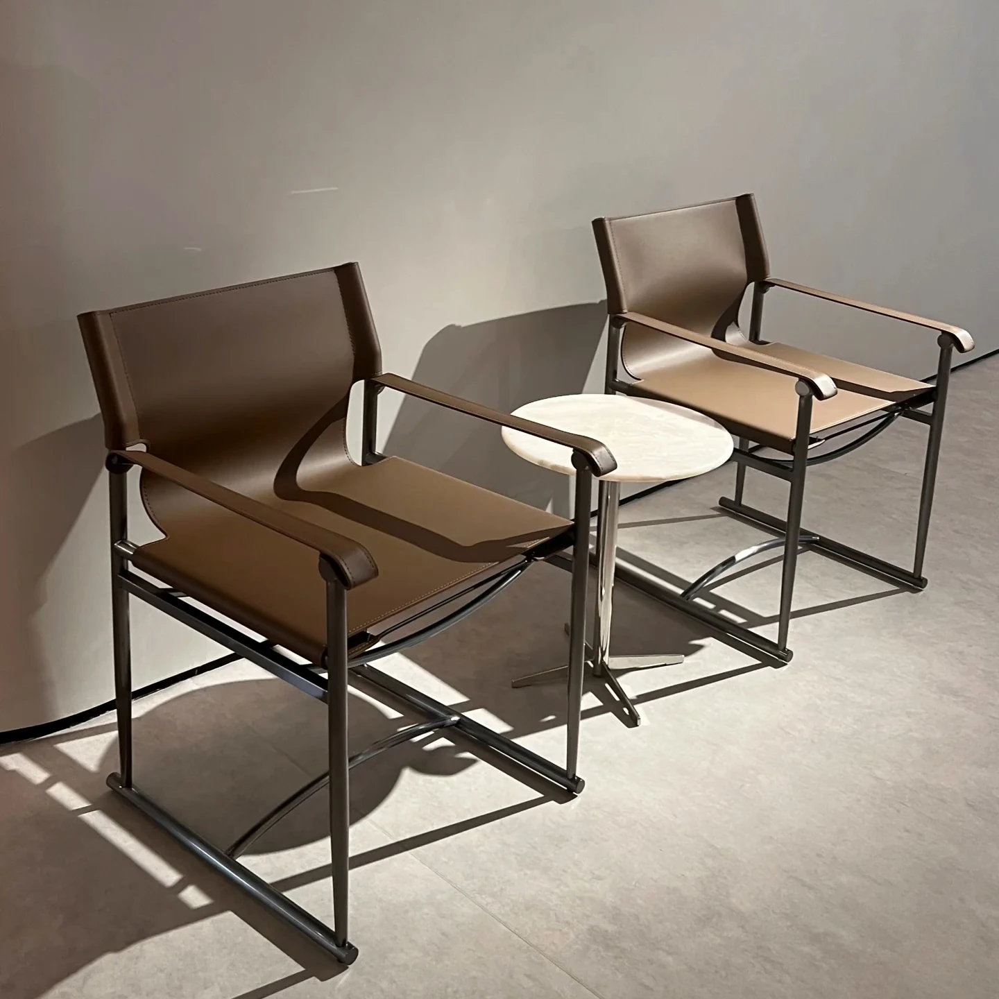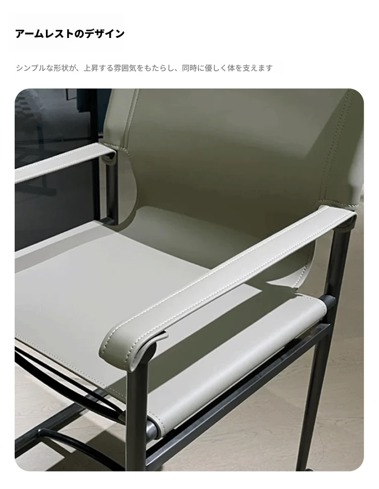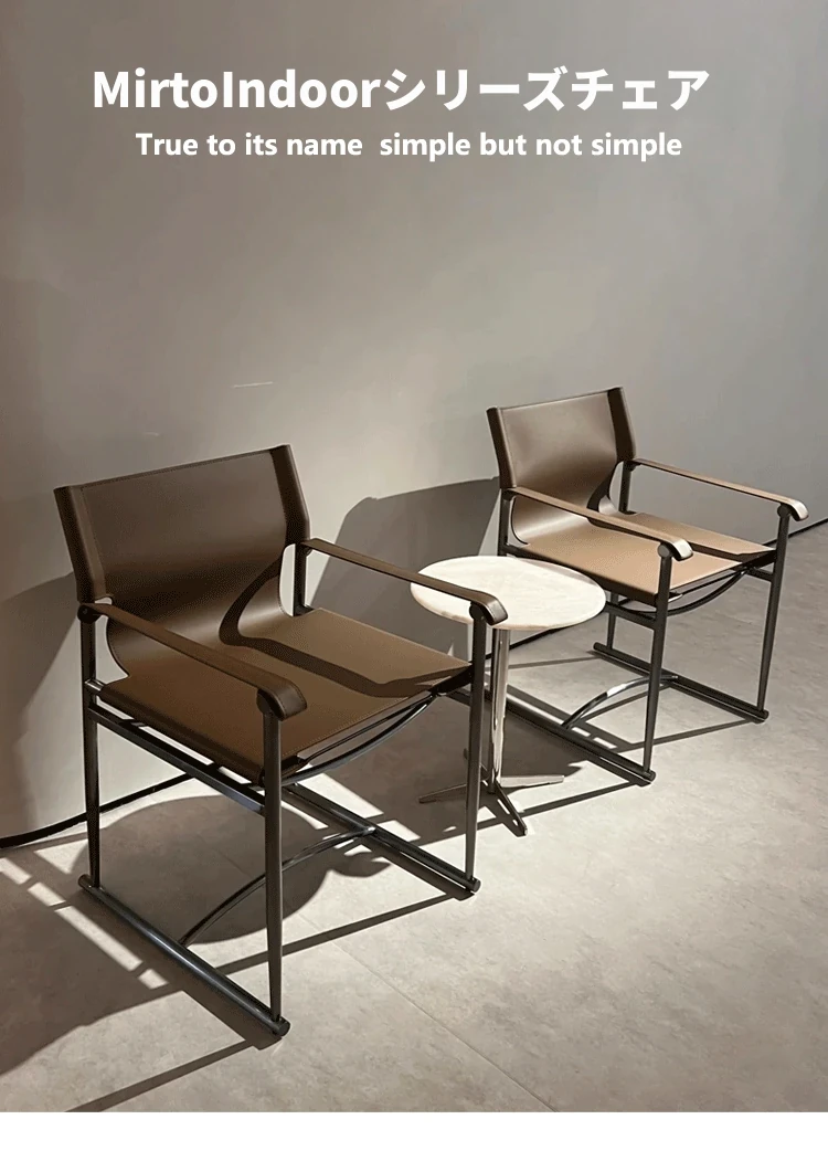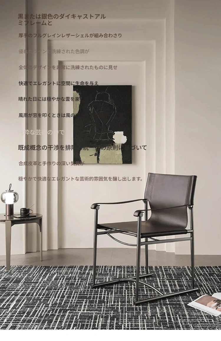 イタリア製高級サドルレザーのシンプルなデザイン、リラックスできる茶椅子。おしゃれな会議やくつろぎのひとときに最適なデザイナー食卓椅子。高級感あふれるオーナーズチェアで、特別な空間を演出します。