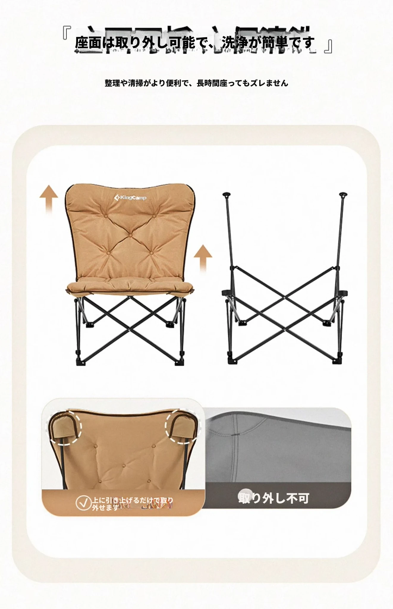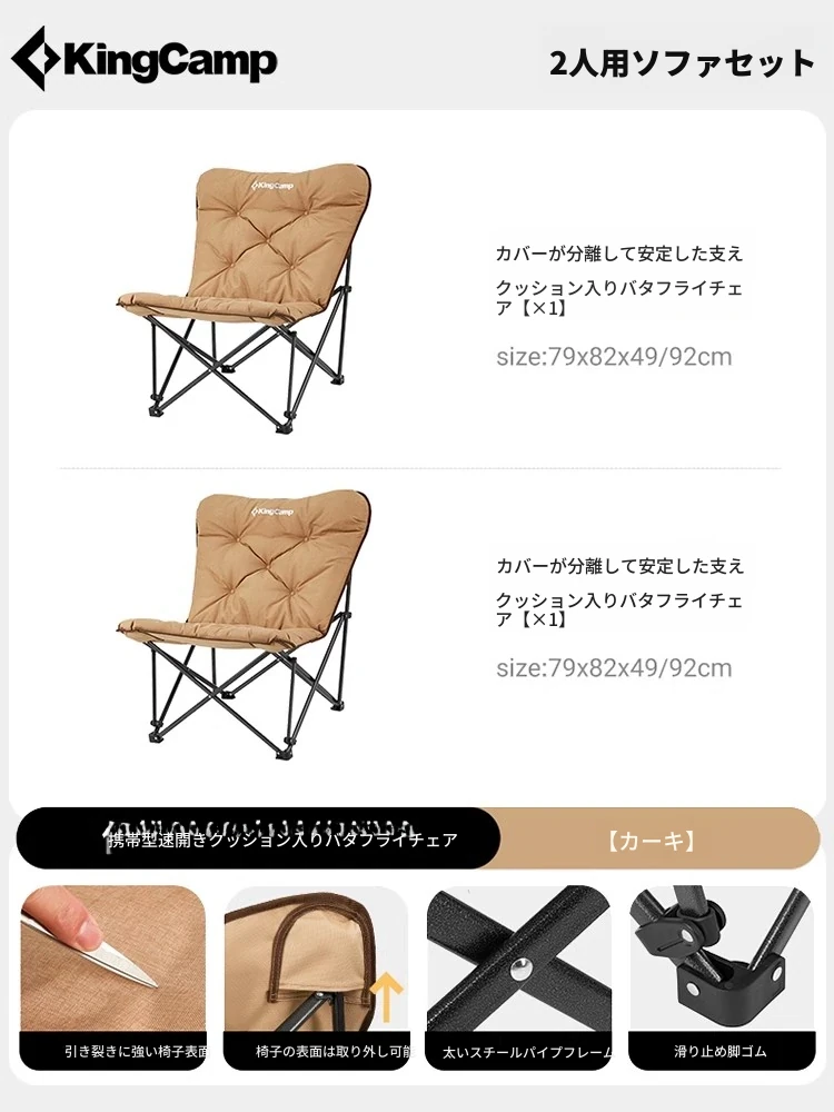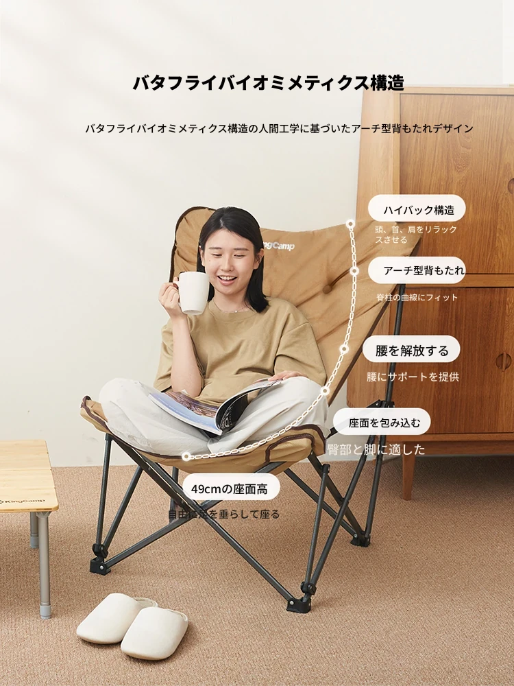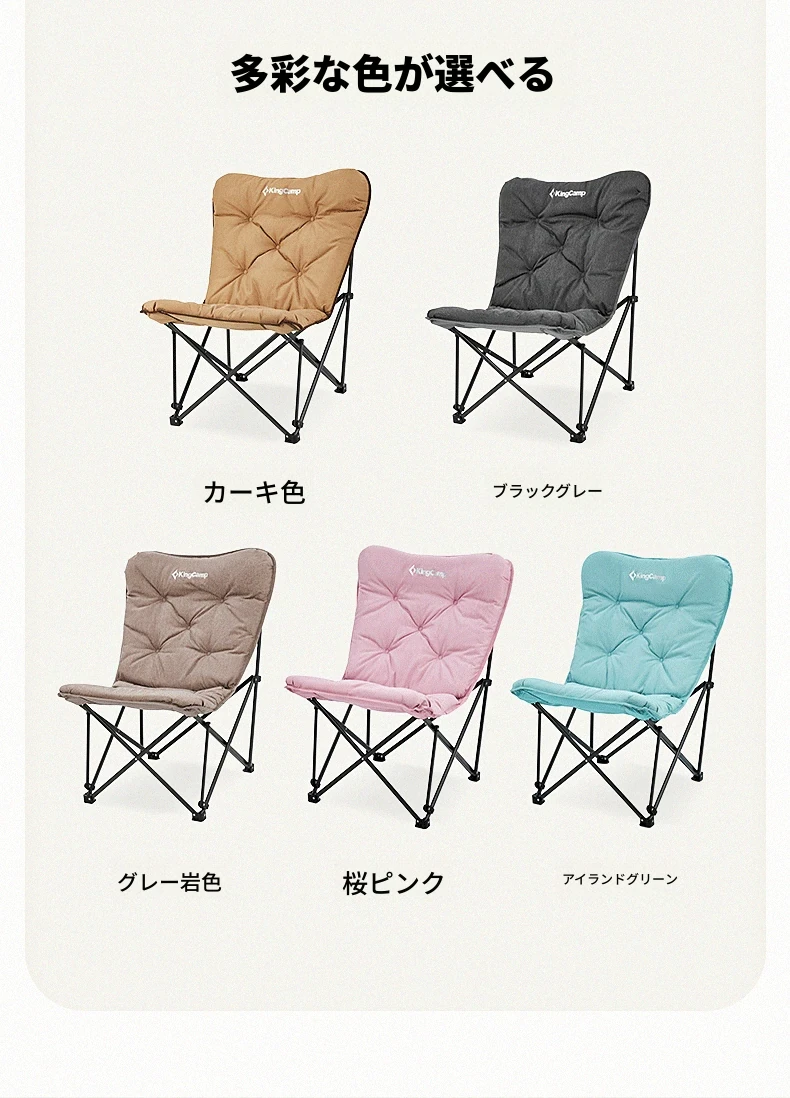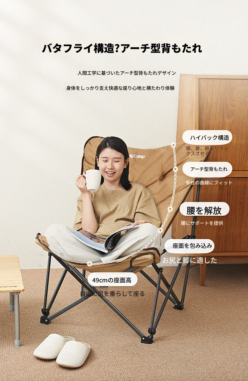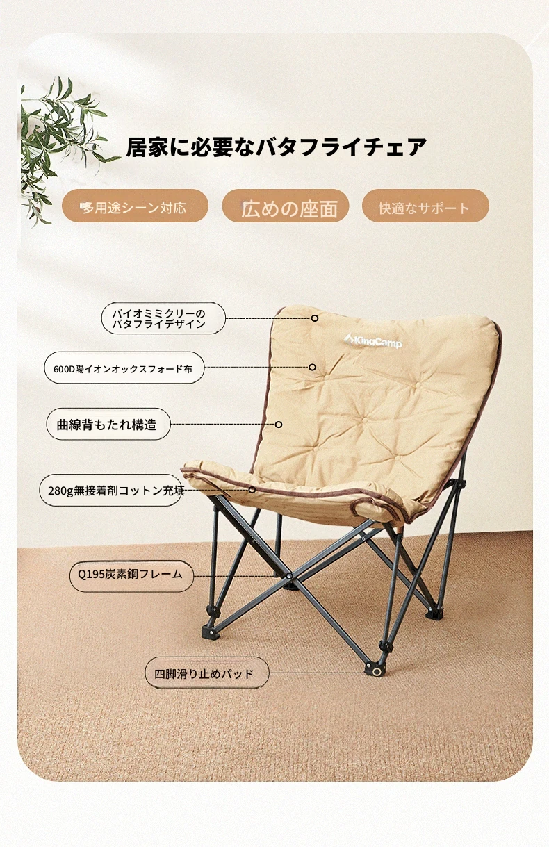 キングキャンプ バタフライチェア クッション付き リラックスソファ 家庭用 折りたたみ椅子 背もたれ付き ポータブル カジュアルスツール 釣りやバルコニーに最適!快適なひとときをお届けします。