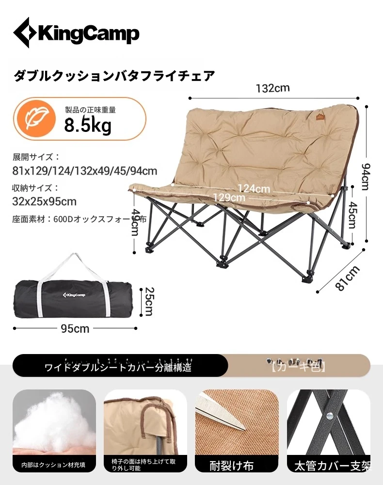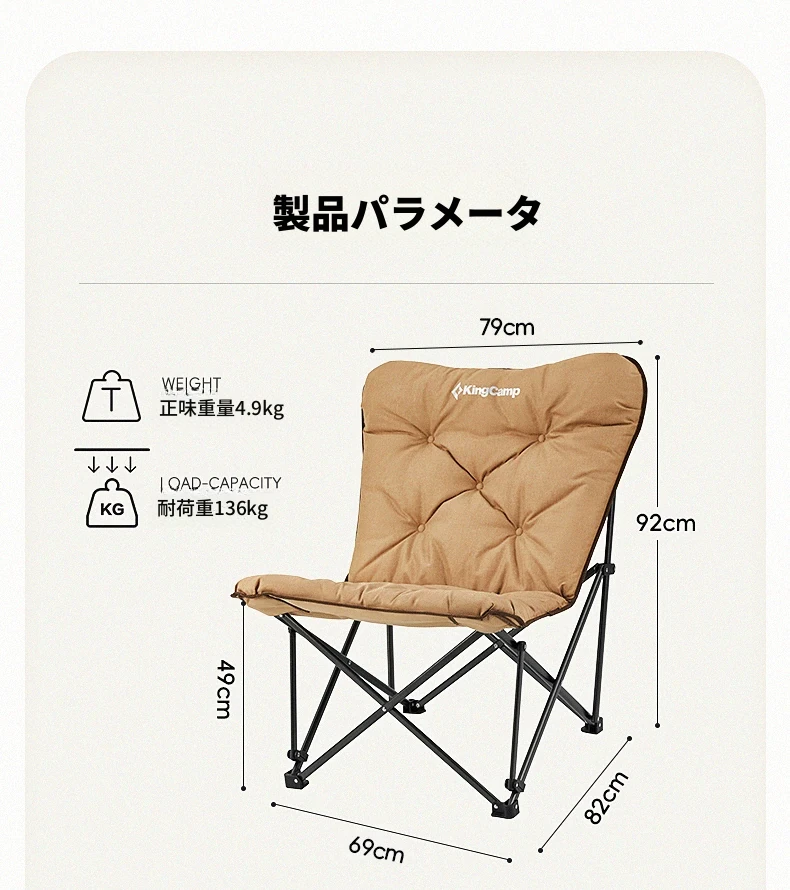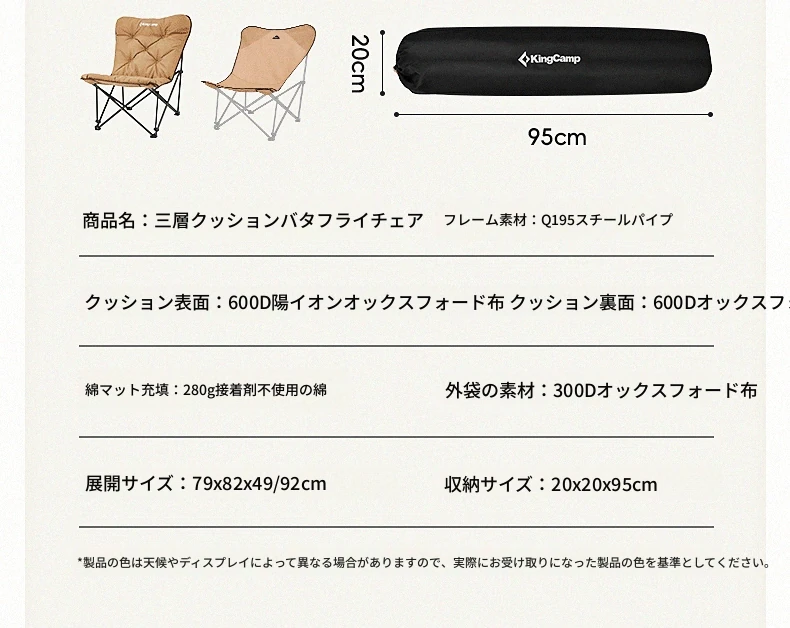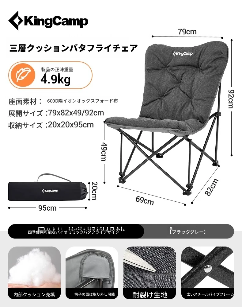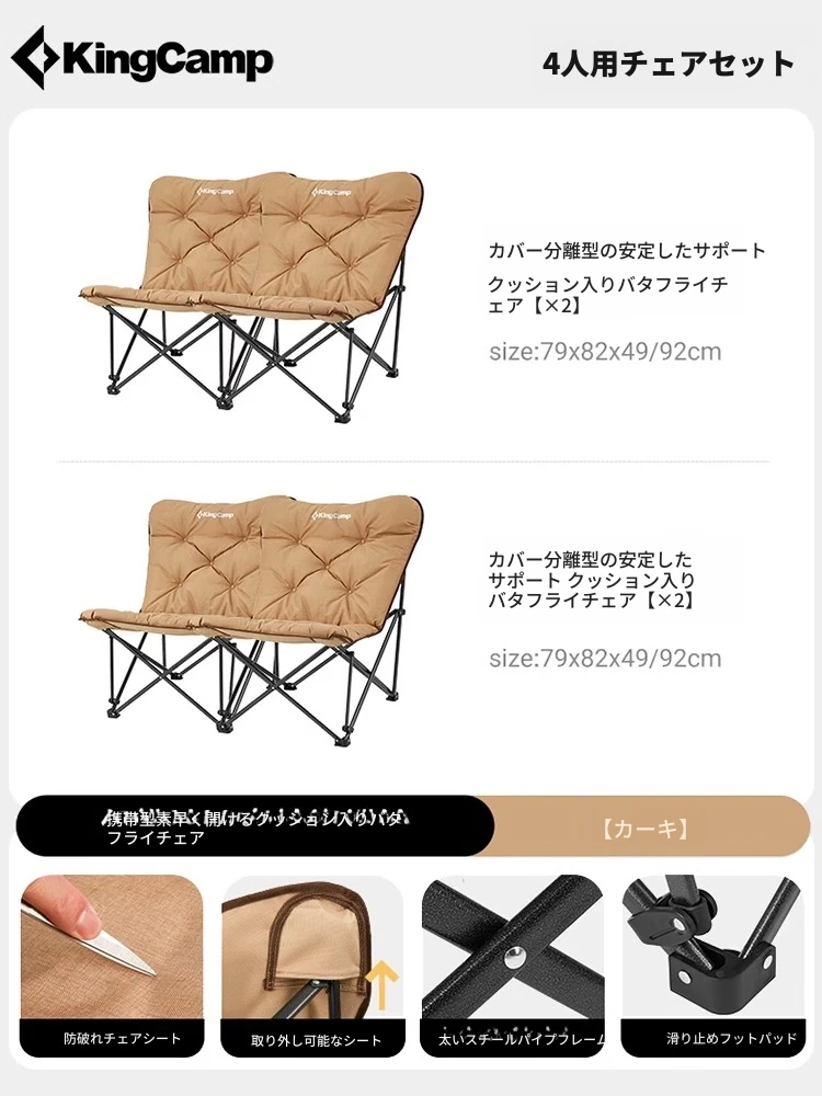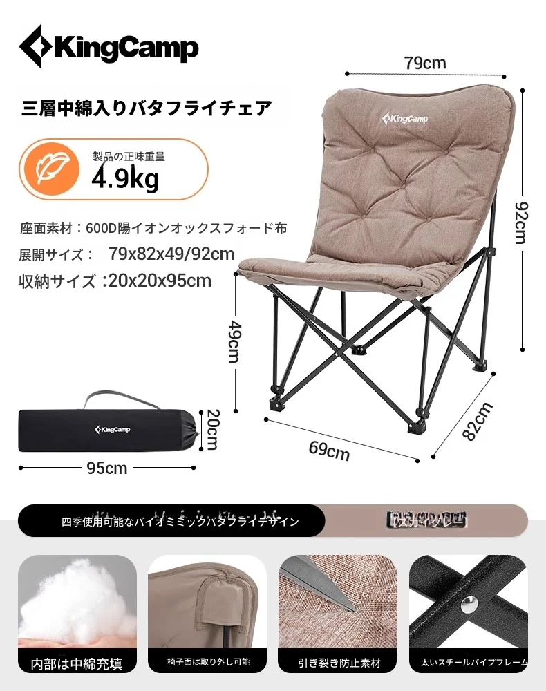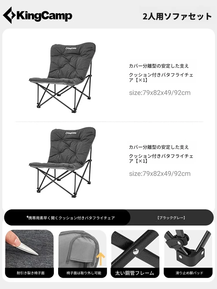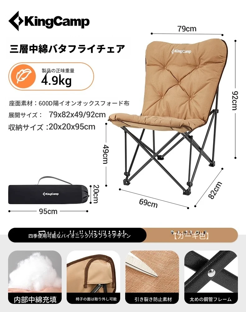 キングキャンプ バタフライチェア クッション付き リラックスソファ 家庭用 折りたたみ椅子 背もたれ付き ポータブル カジュアルスツール 釣りやバルコニーに最適!快適なひとときをお届けします。
