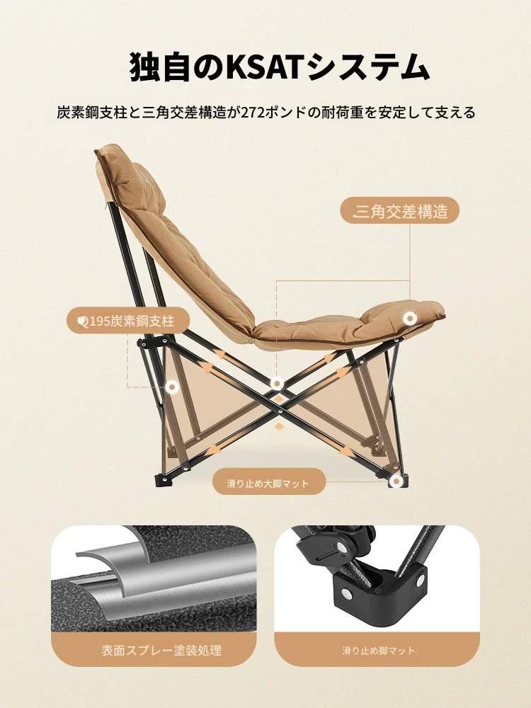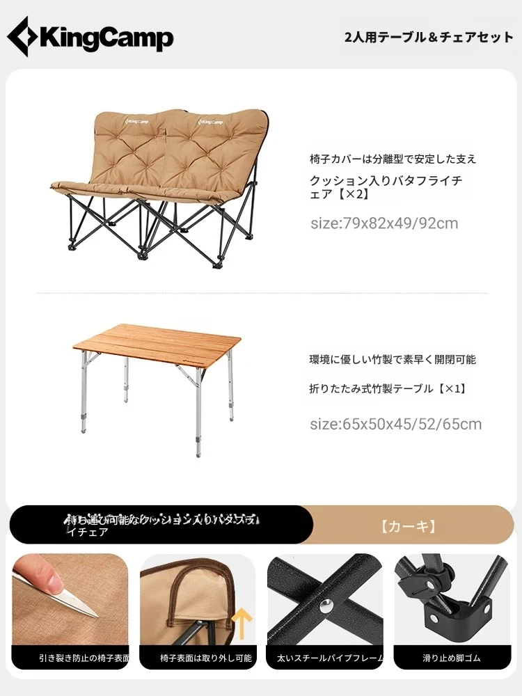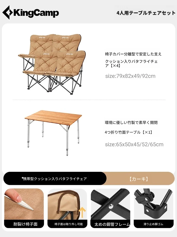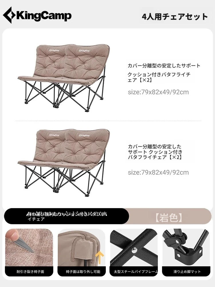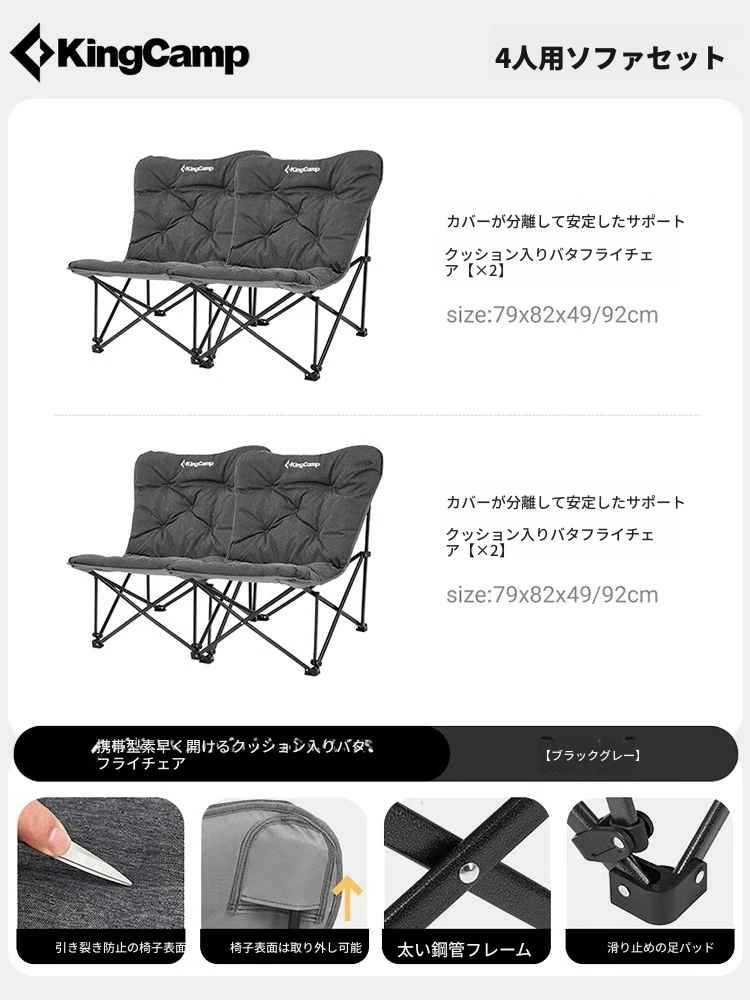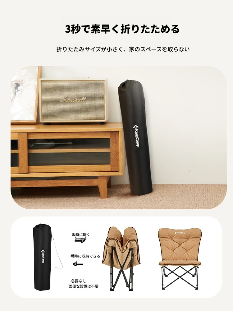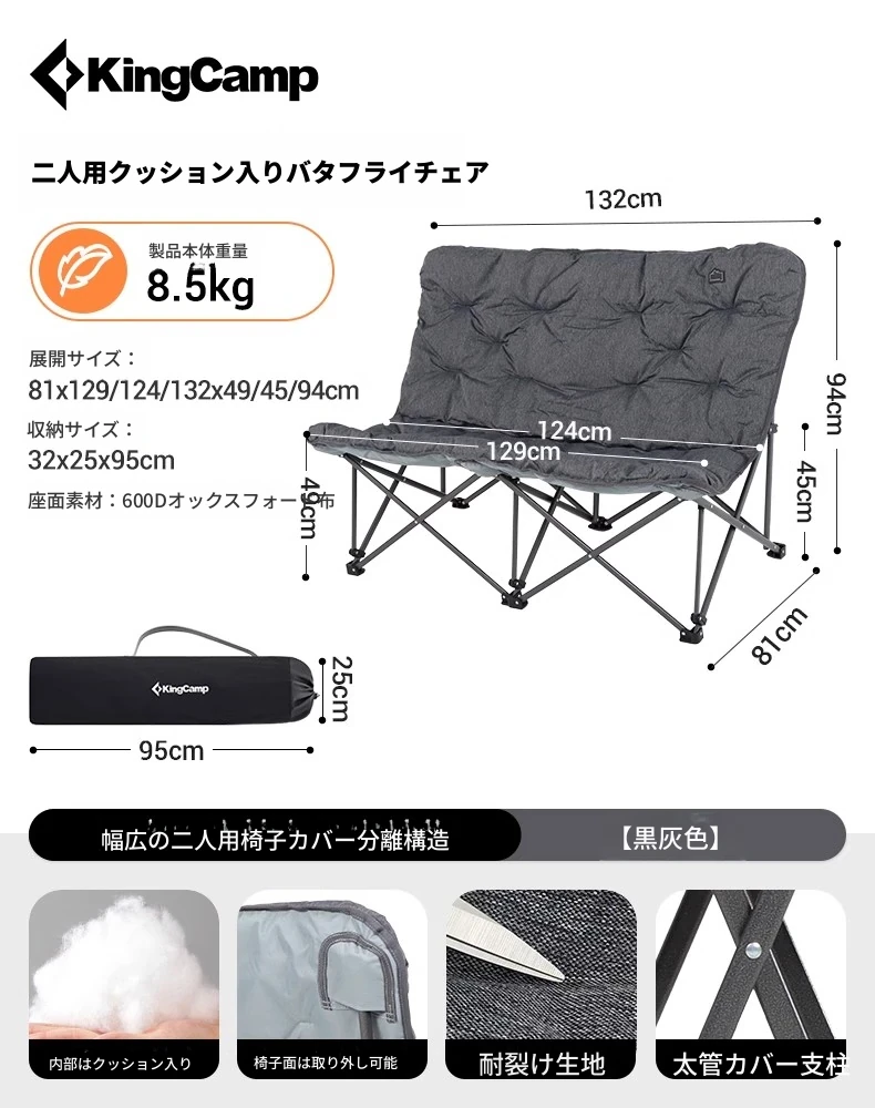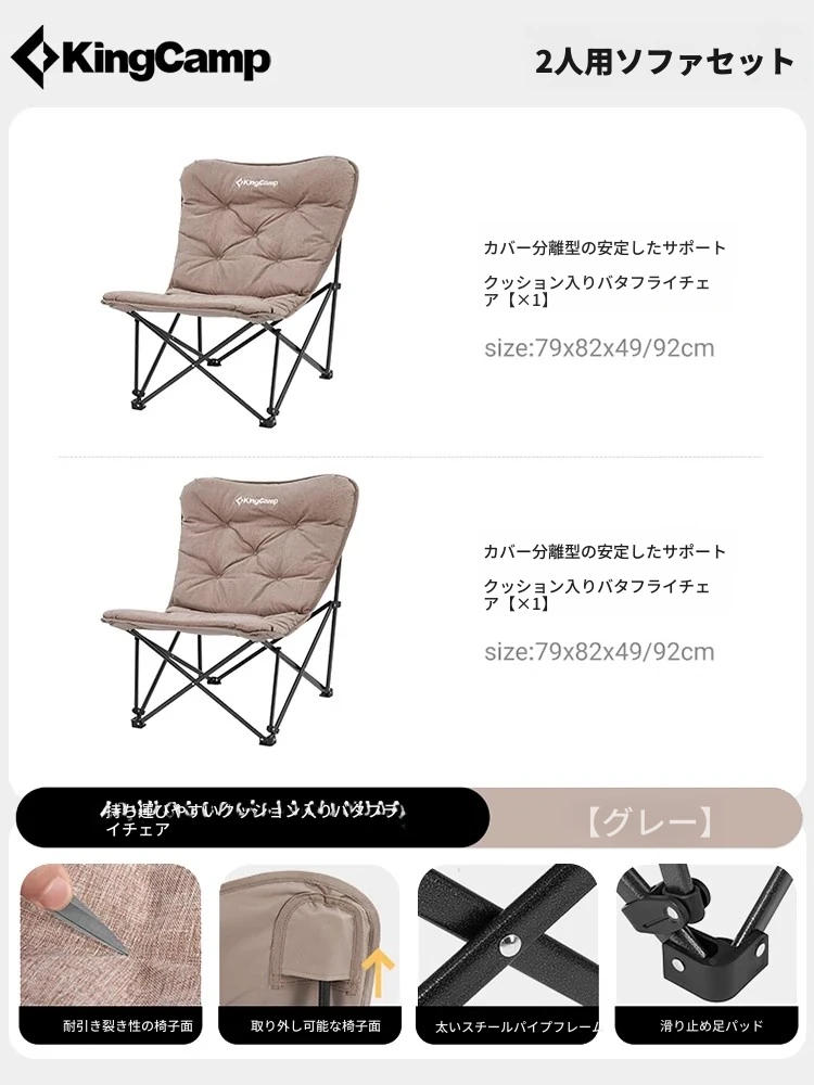 キングキャンプ バタフライチェア クッション付き リラックスソファ 家庭用 折りたたみ椅子 背もたれ付き ポータブル カジュアルスツール 釣りやバルコニーに最適!快適なひとときをお届けします。