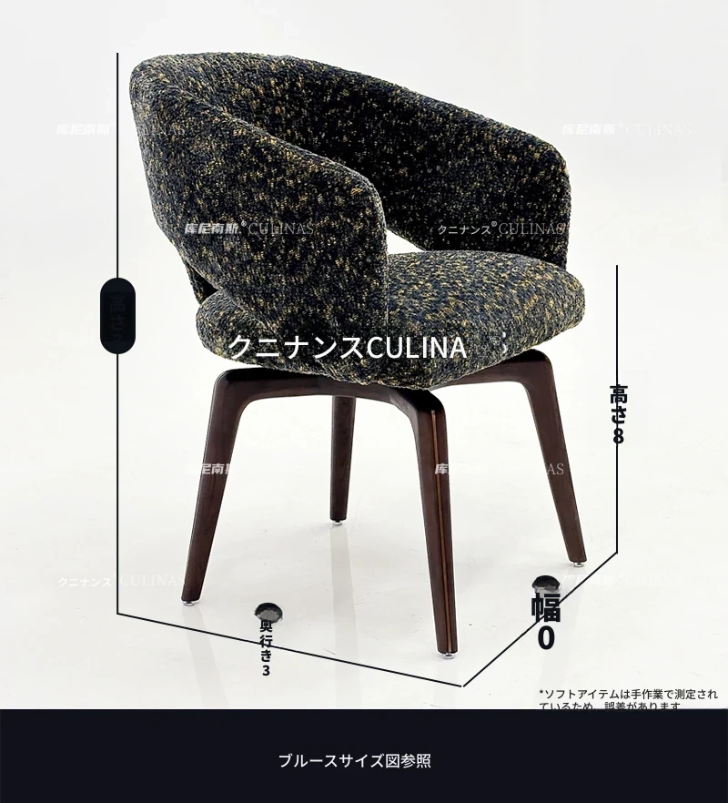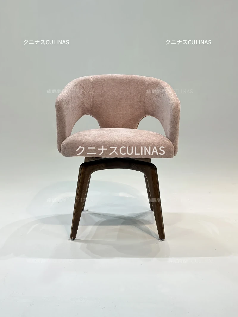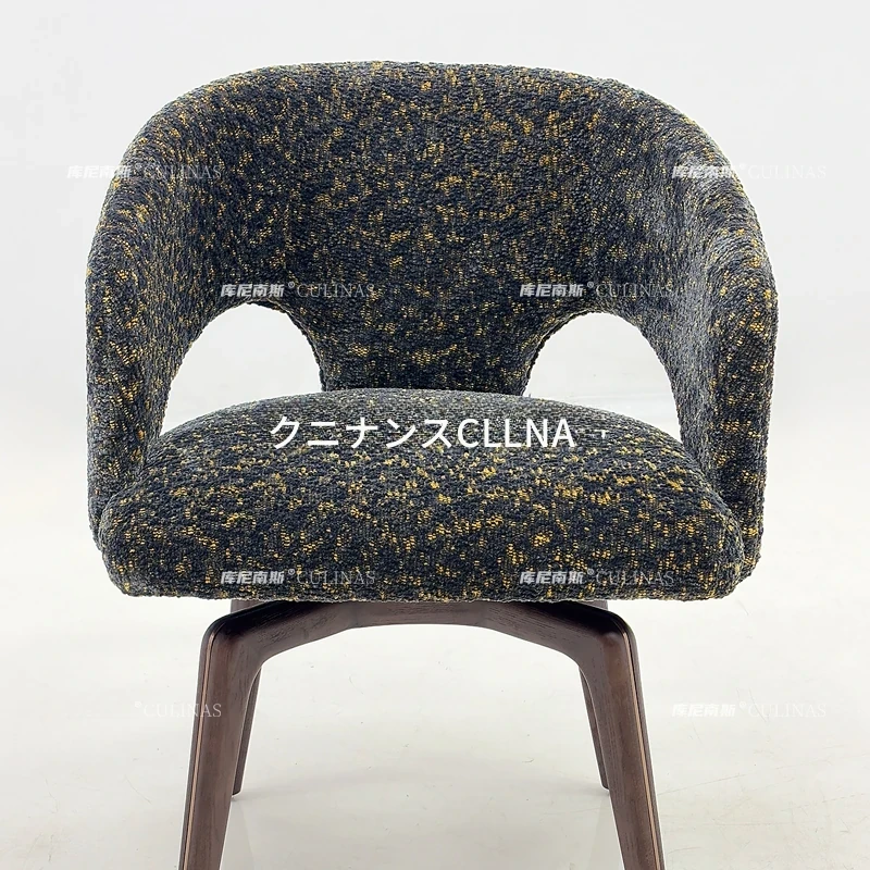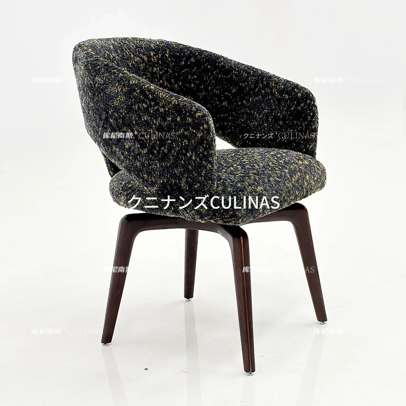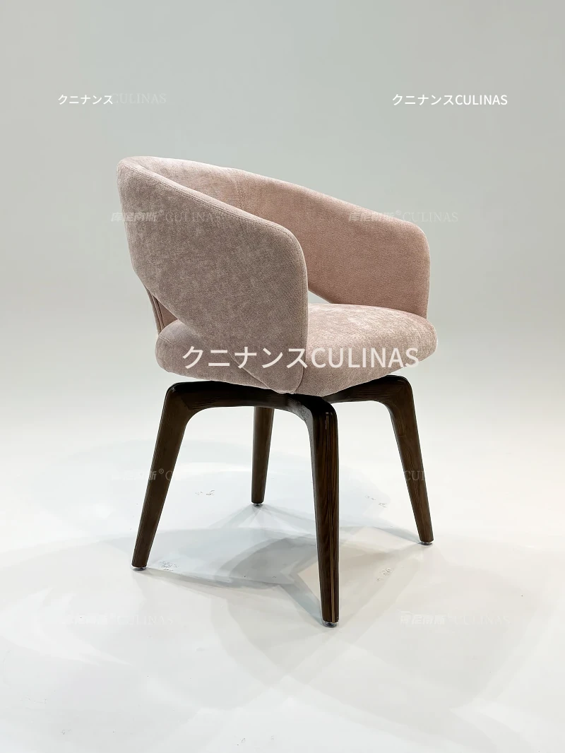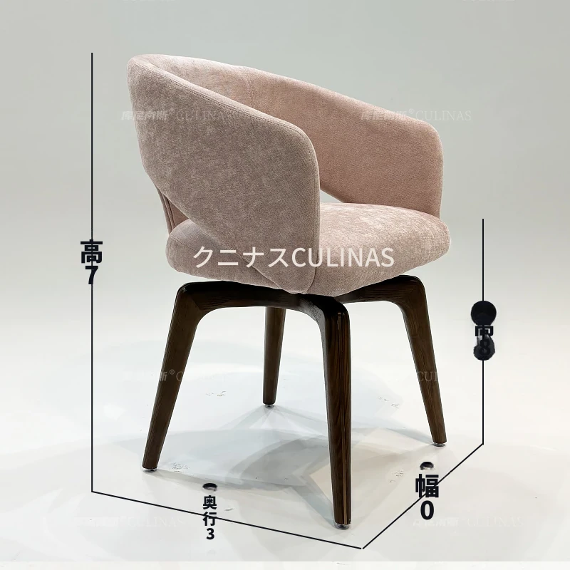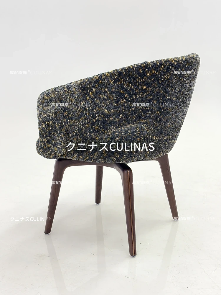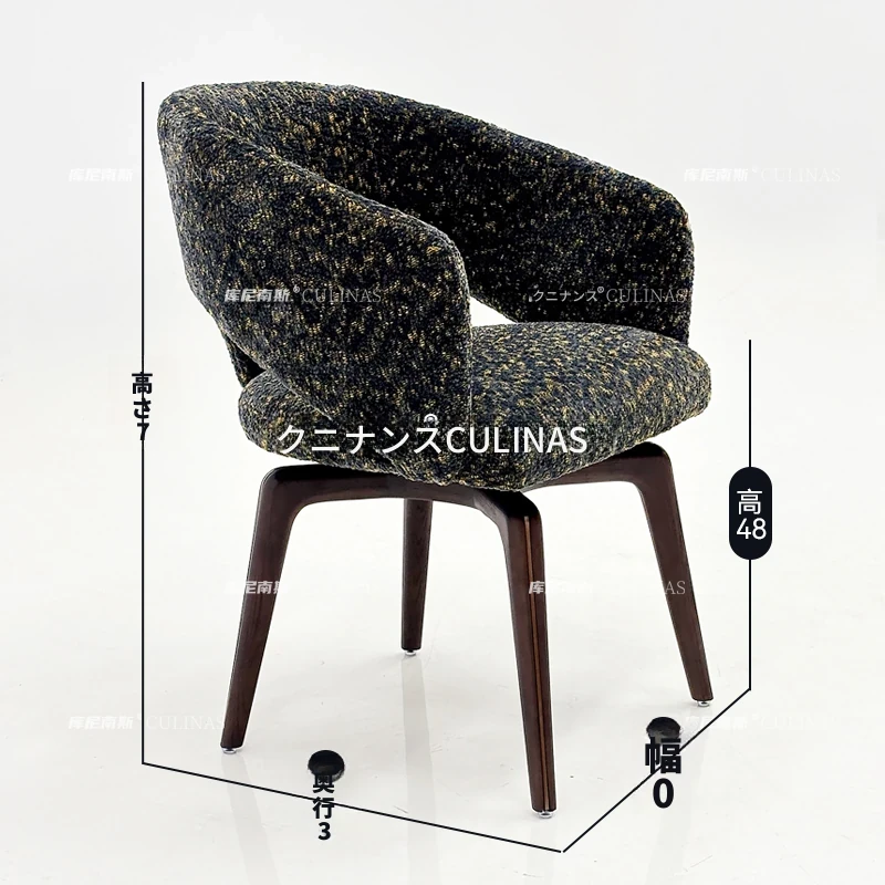 クニナンス コットンリネン回転式ダイニングチェア - アイランドテーブルに最適な無垢材使用の家庭用リラックスイタリアンミニマリストチェア。スタイリッシュで快適な食事体験をお楽しみください!