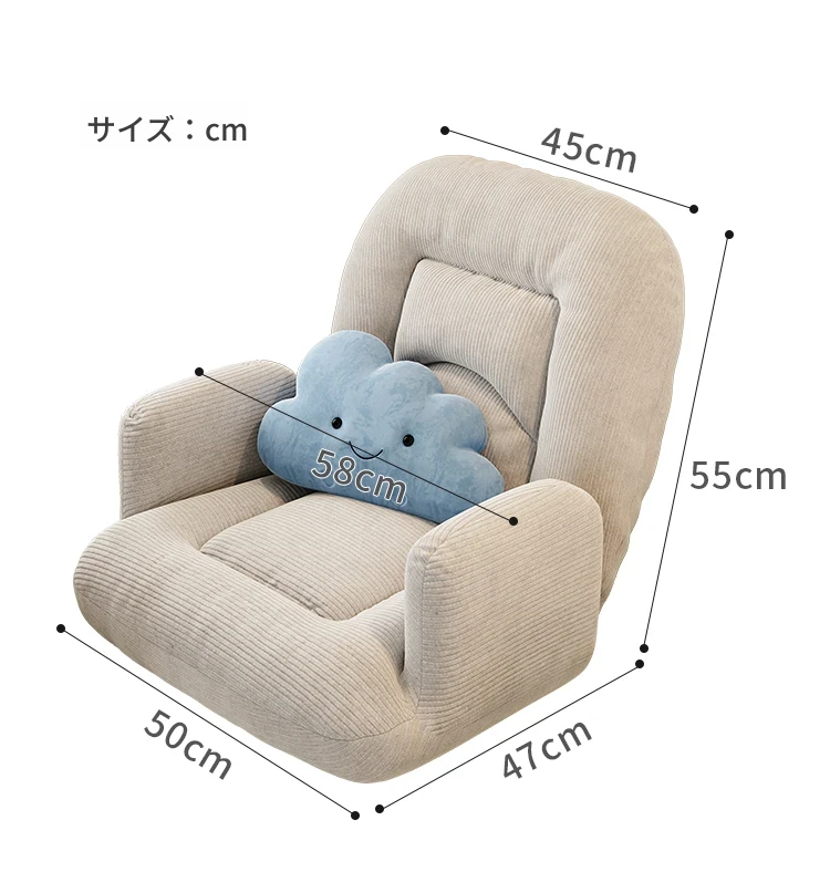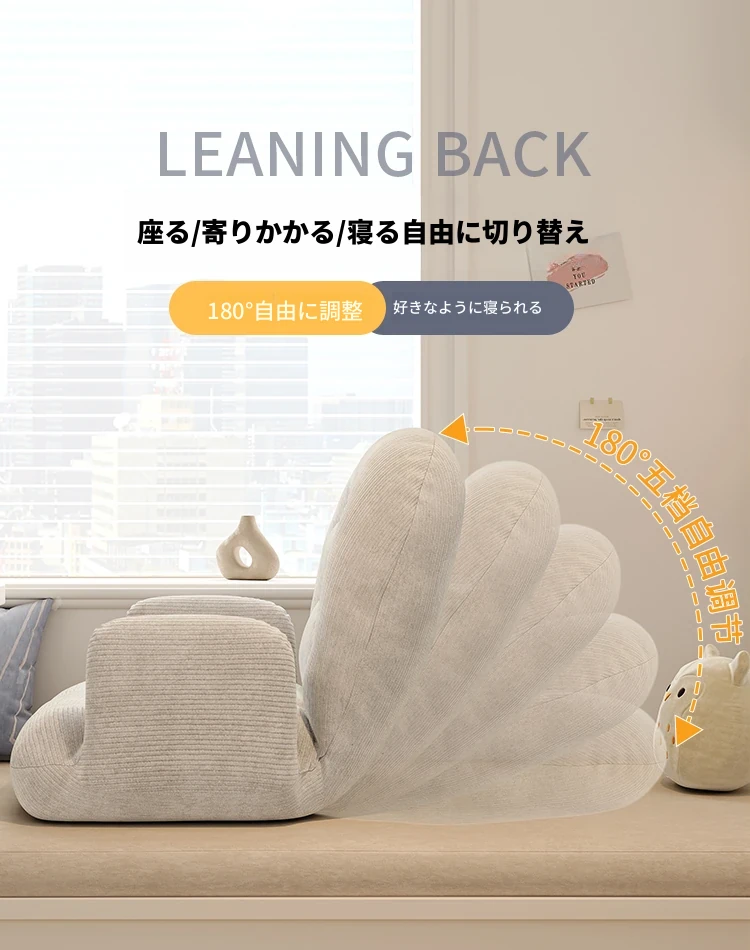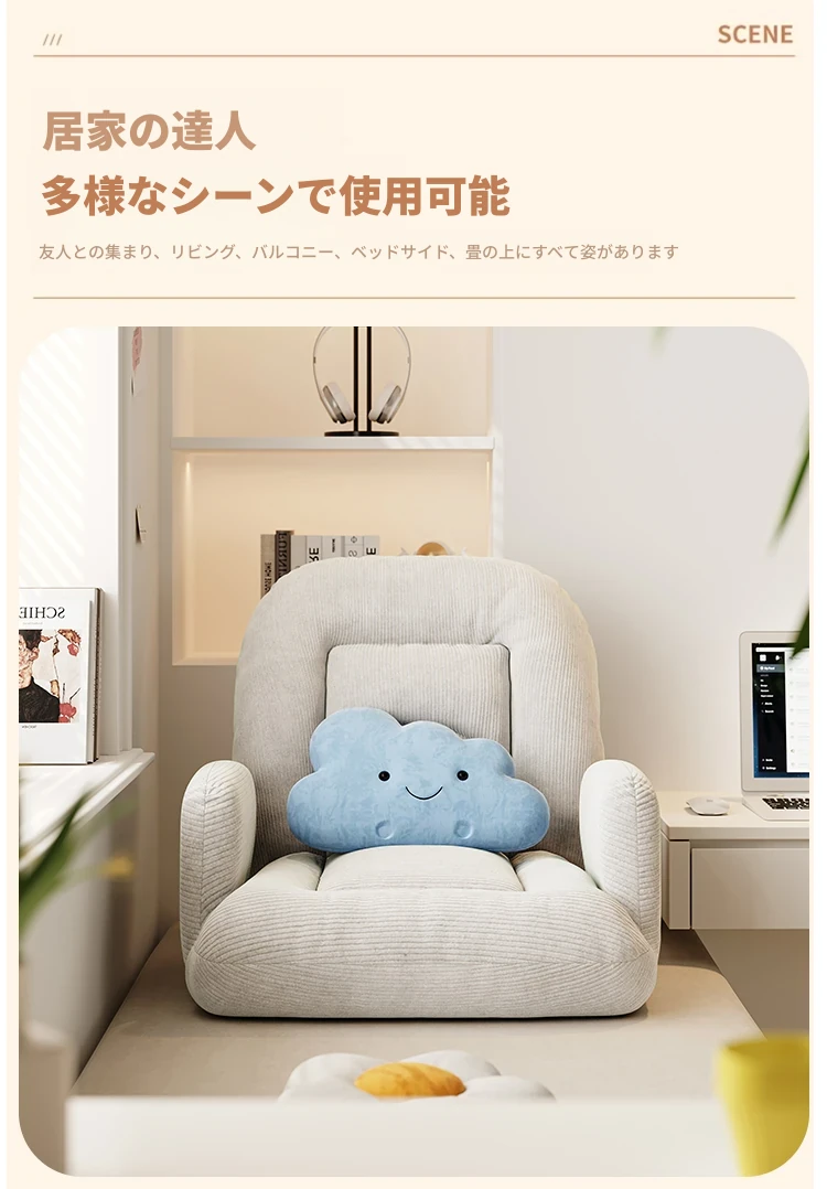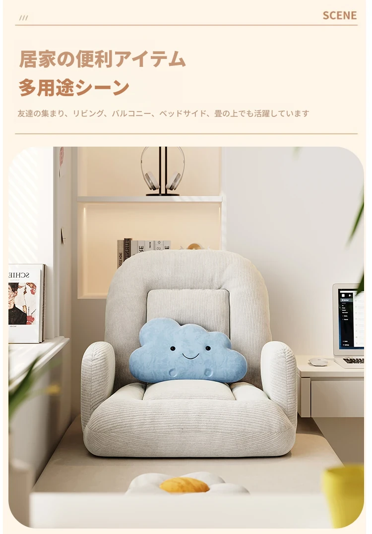 ゲームに最適!快適なラウンジソファベッド、折りたたみ式の座椅子で、長時間の座り作業も楽々。和室にもぴったりな座布団タイプ、窓辺でのリラックスタイムに最適です!