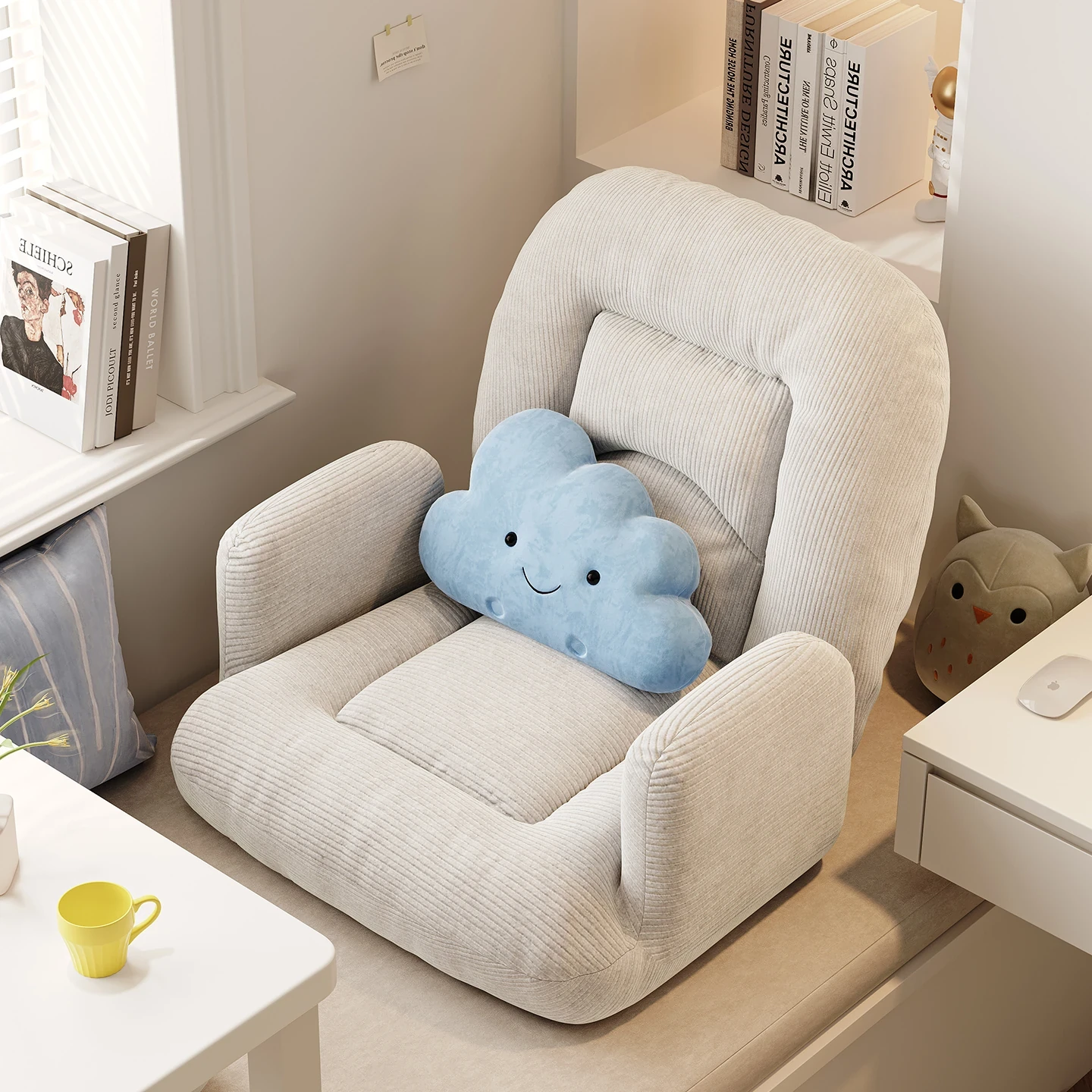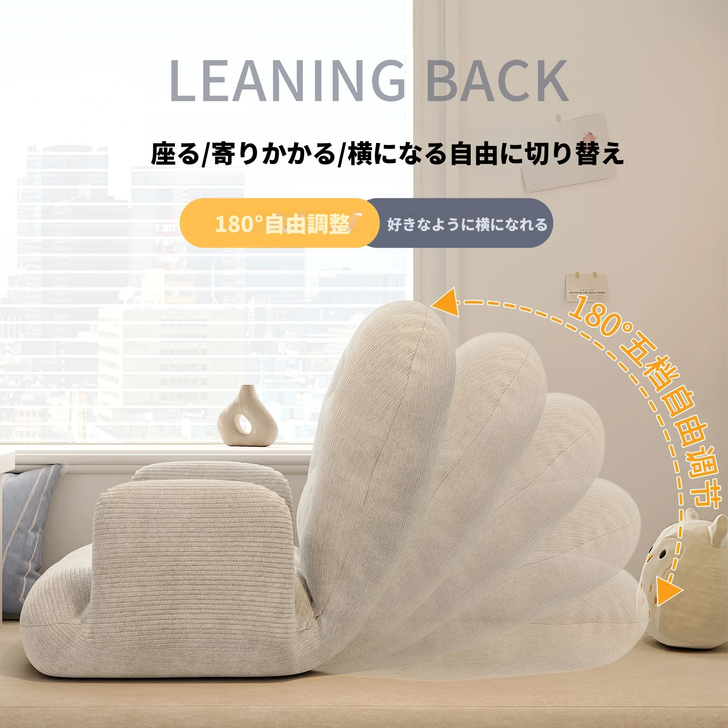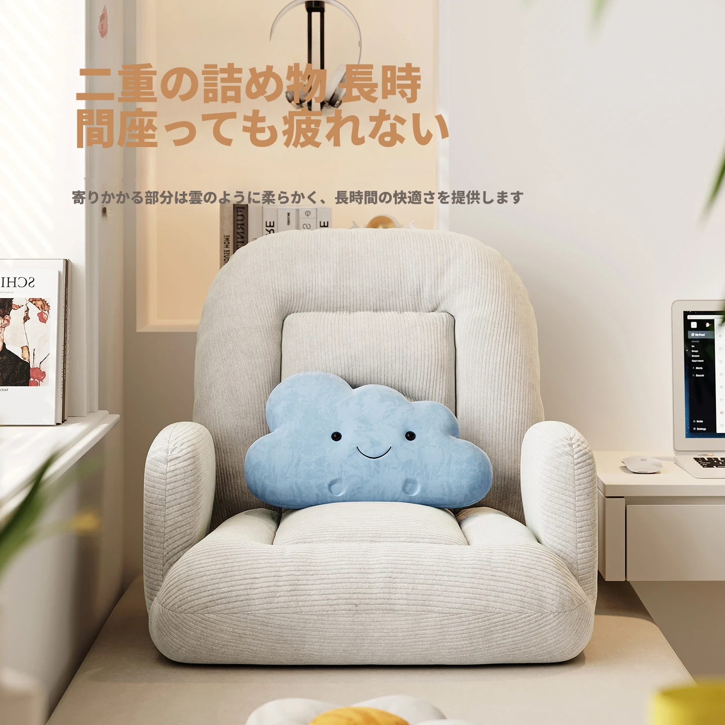 ゲームに最適!快適なラウンジソファベッド、折りたたみ式の座椅子で、長時間の座り作業も楽々。和室にもぴったりな座布団タイプ、窓辺でのリラックスタイムに最適です!