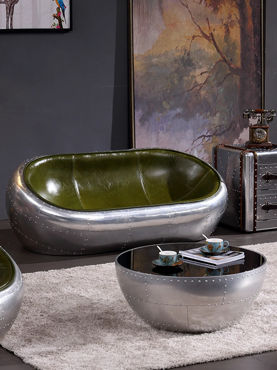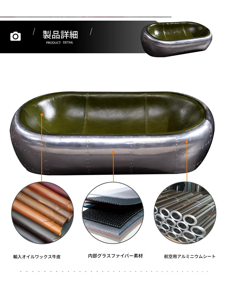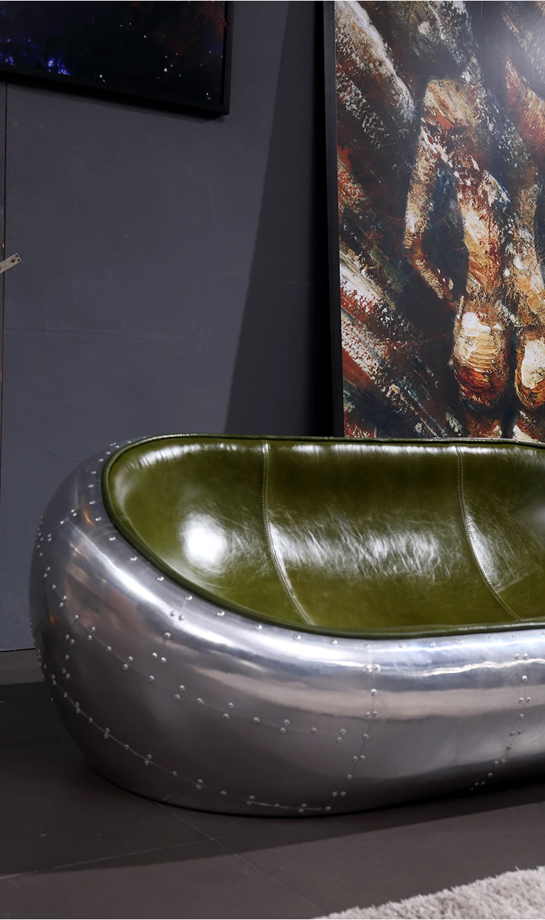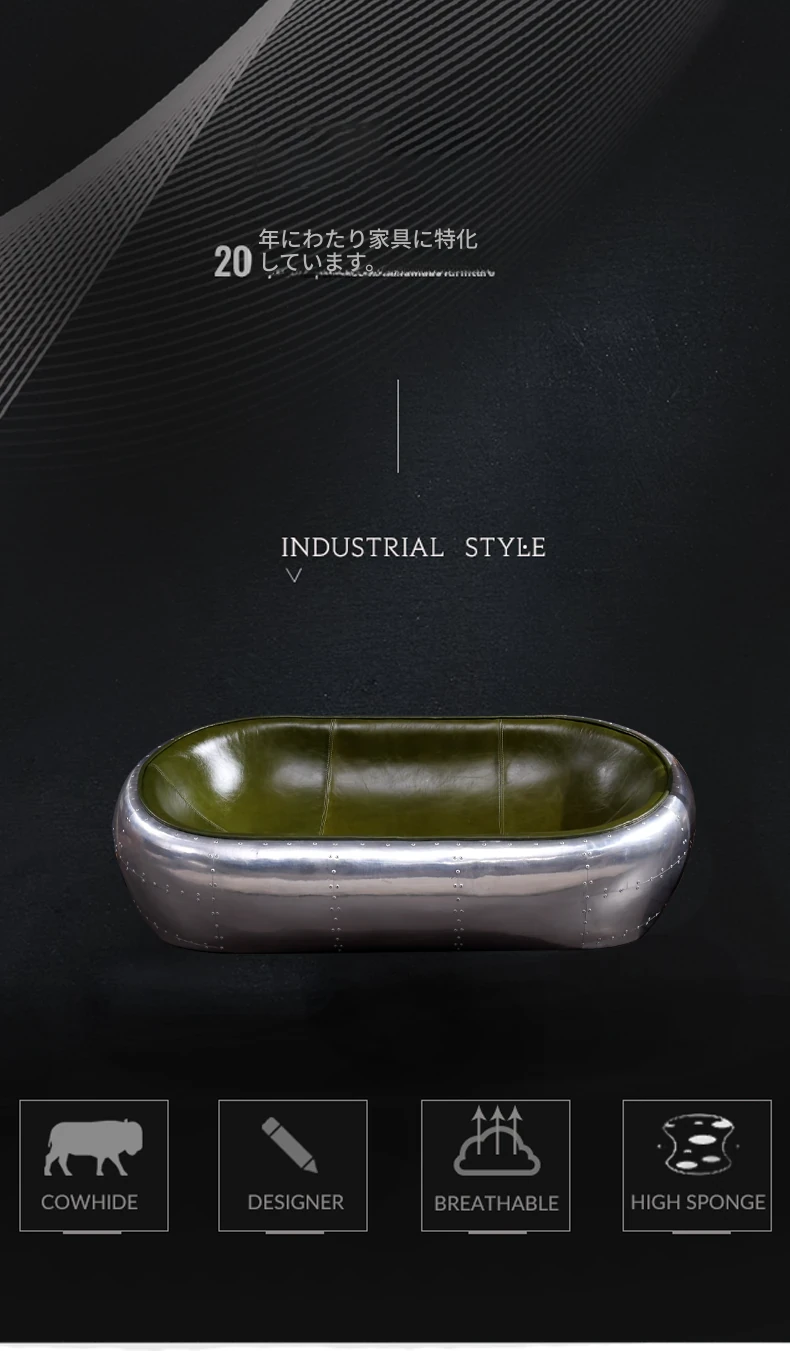 LOFTスタイルのインダストリアルアルミソファー|個性的でクリエイティブなヴィンテージデザイン|シガーバーやアパレルショップ、ジムのリラックススペースに最適!