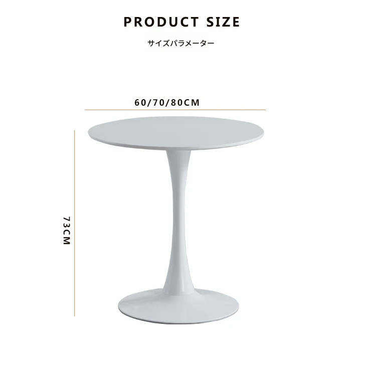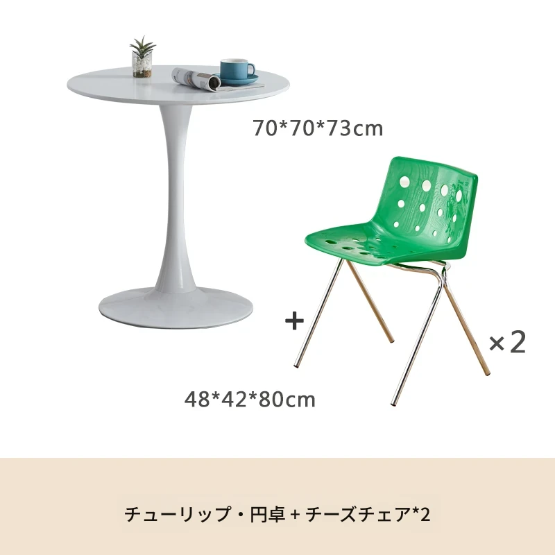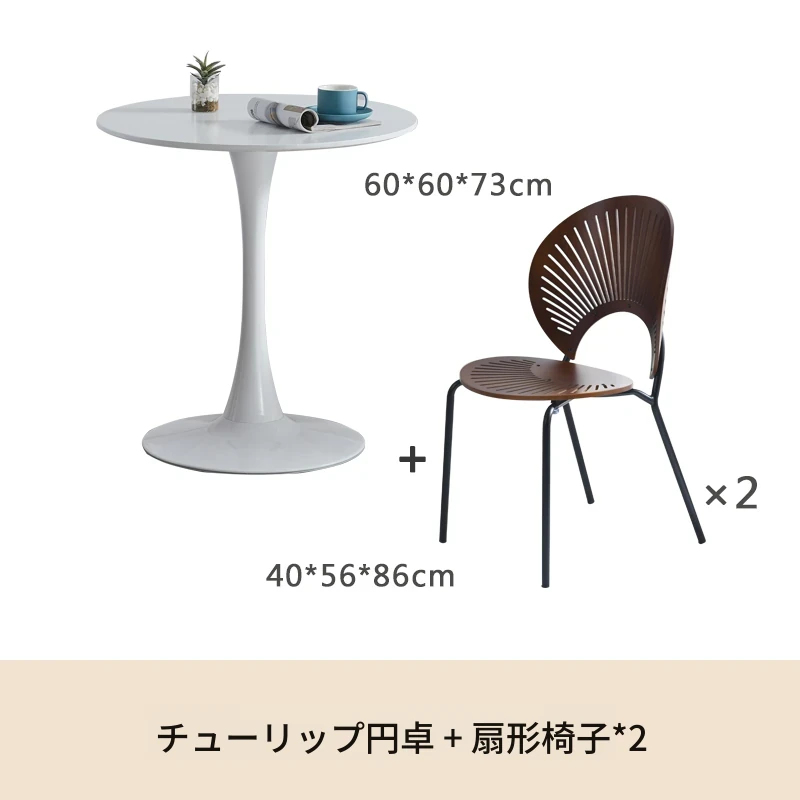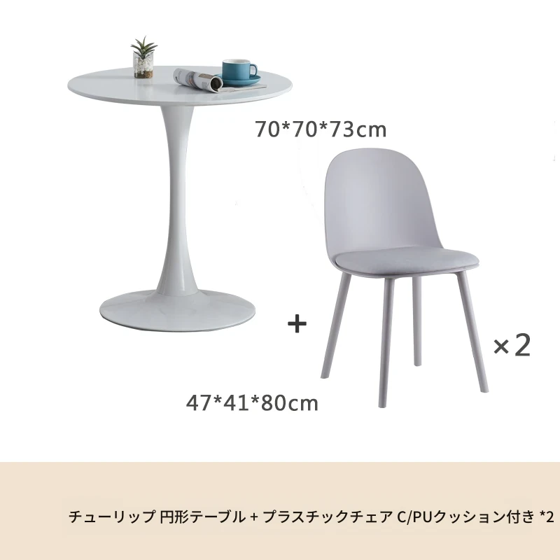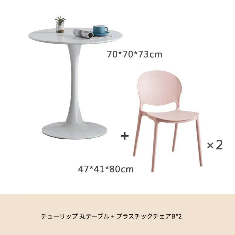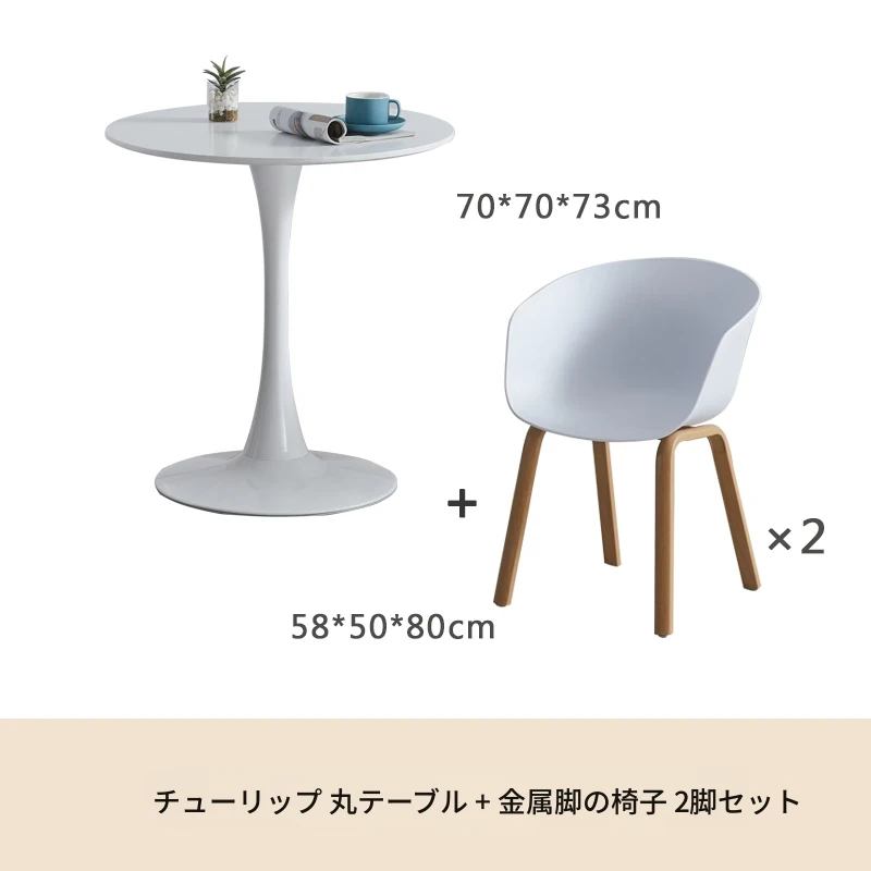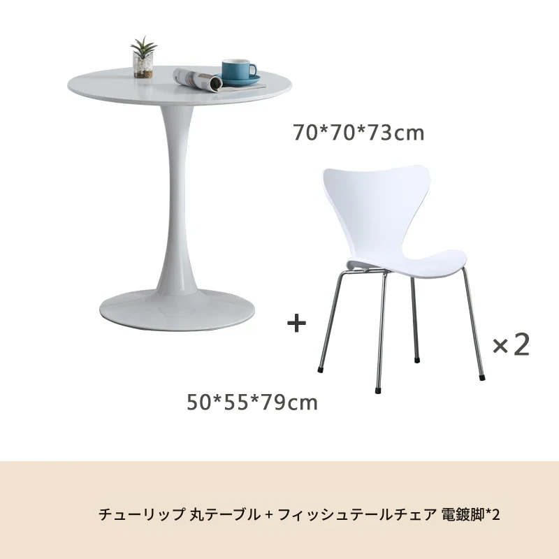 シンプルなホワイトラウンドテーブル|カフェやティールームに最適!リラックスした会話を楽しむ北欧スタイルのバルコニーテーブル|チューリップデザインの小さな丸テーブル&椅子セット