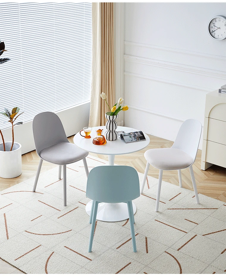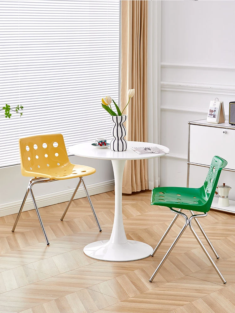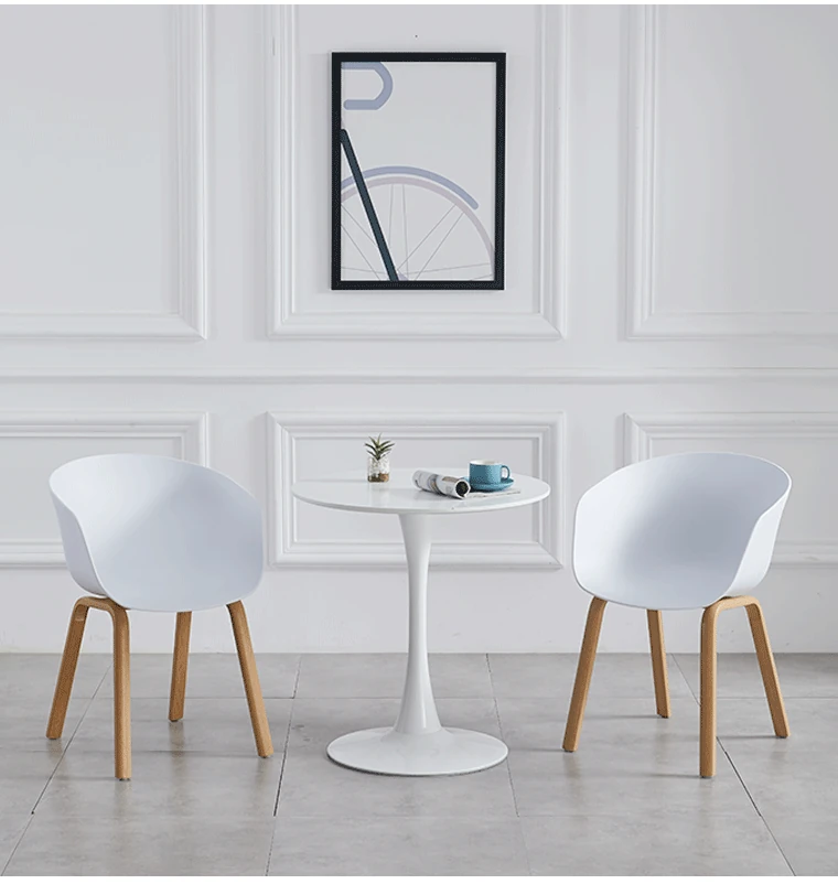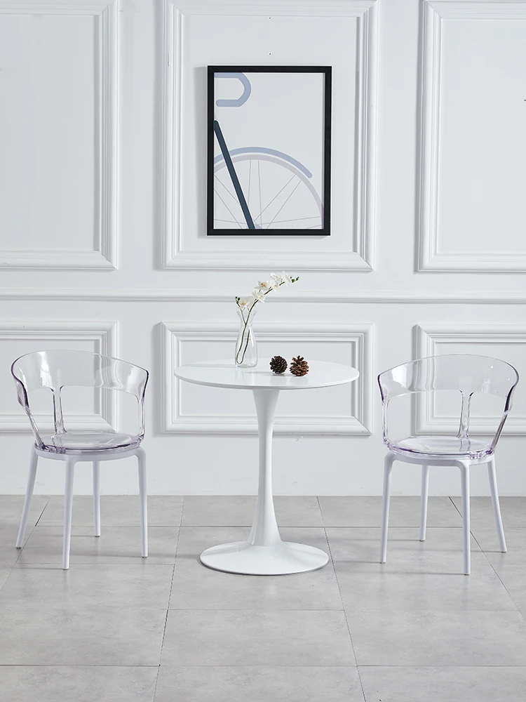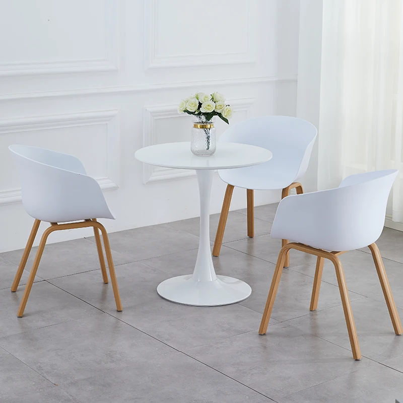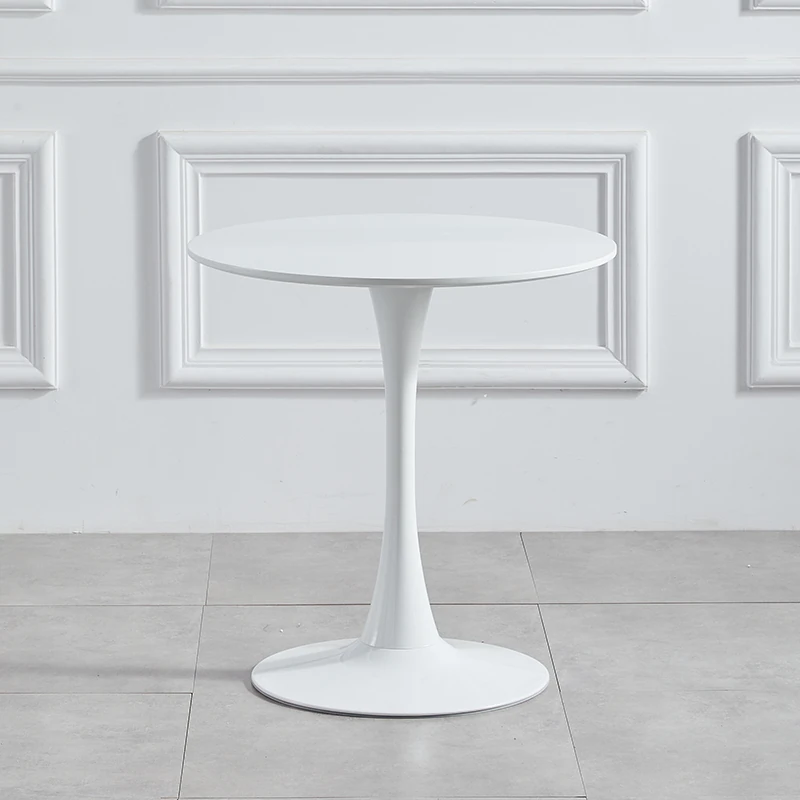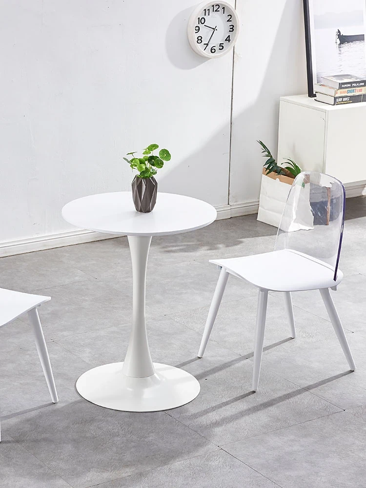 シンプルなホワイトラウンドテーブル|カフェやティールームに最適!リラックスした会話を楽しむ北欧スタイルのバルコニーテーブル|チューリップデザインの小さな丸テーブル&椅子セット