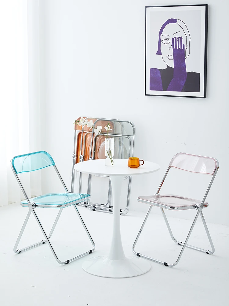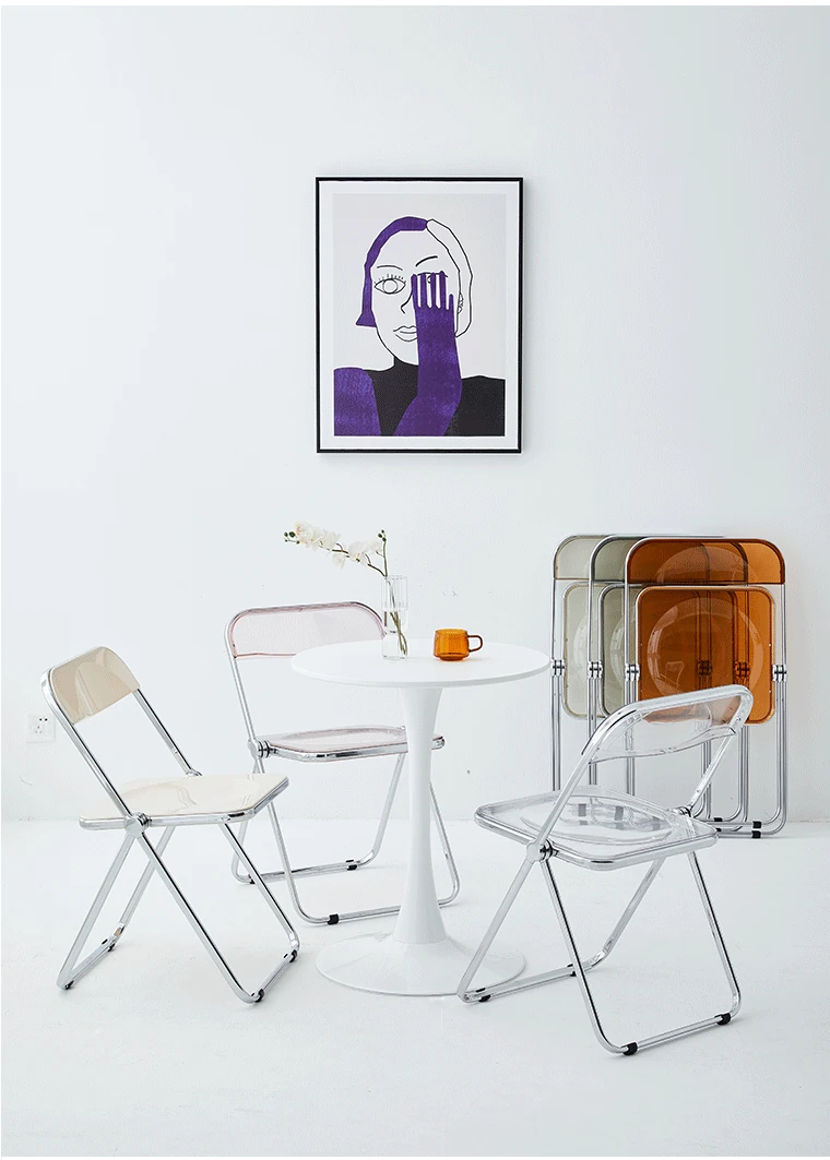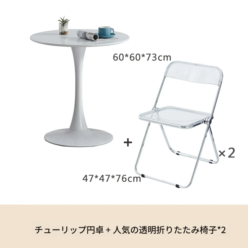 60円卓 ホワイト 塗装+透明折りたたみ椅子2個