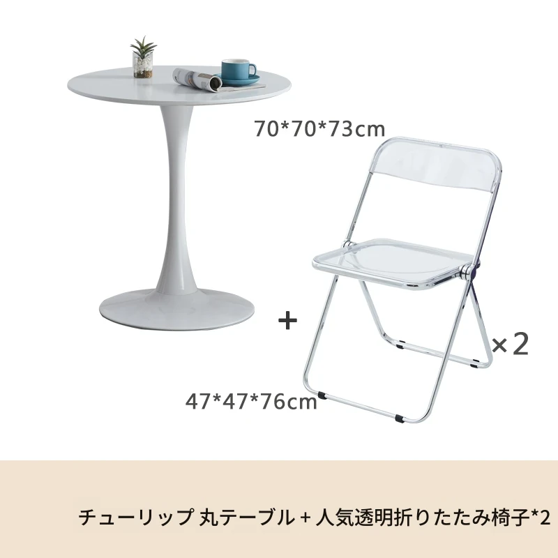 70円卓 ホワイト 塗装+透明折りたたみ椅子2個