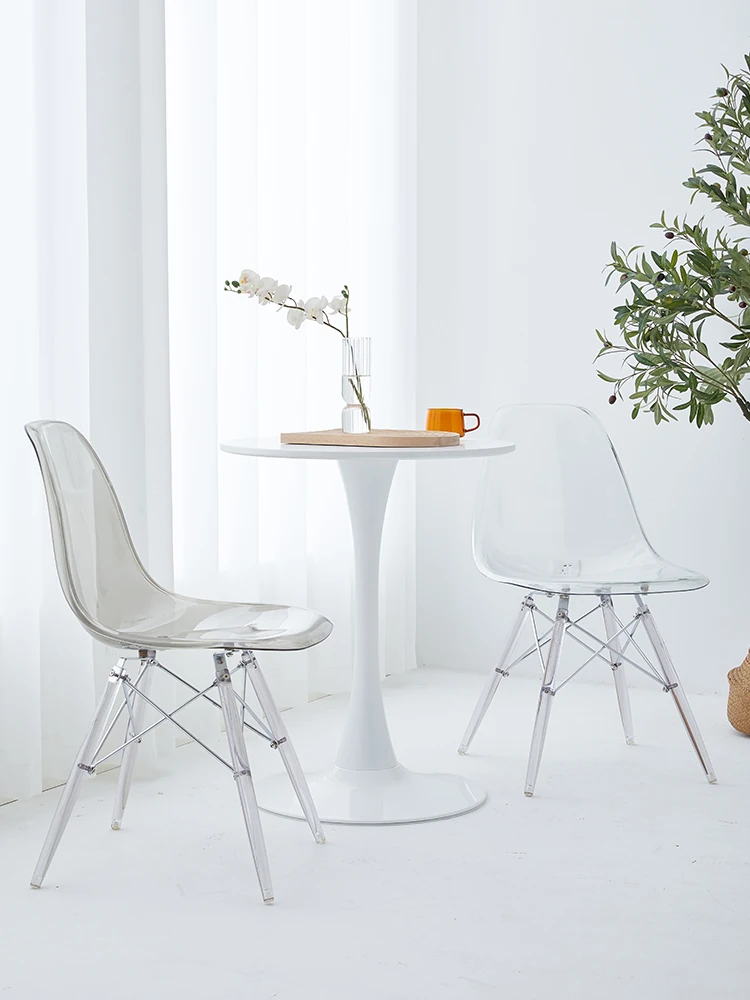 70円卓 ホワイト 塗装+書斎椅子透明背もたれ2個