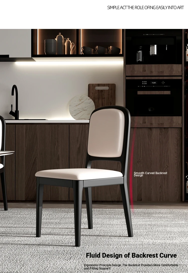 Modern Minimalist Dining Chair - Solid Wood & Upholstered Luxury Stool with Backrest for Home, Office Meetings, and Restaurants
