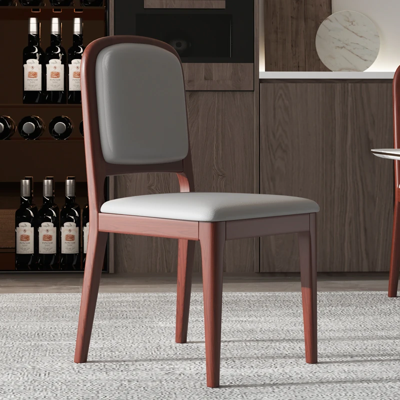 ウォールナット色の椅子 グレーのレザーソフトパック